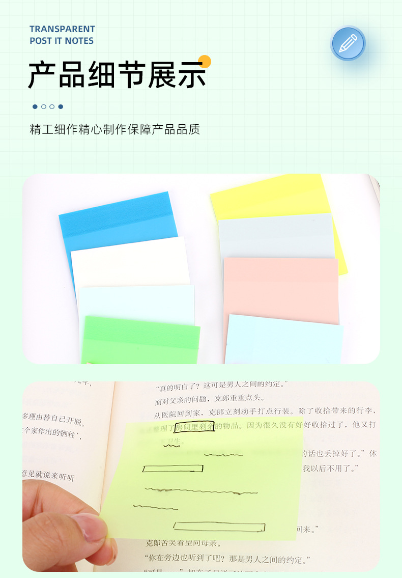 형광 컬러 인덱스 Morandi 컬러 노트 북 학생용 투명 포스트잇 노트를 반복적으로 붙여 넣을 수 있습니다 메모스토어 가기