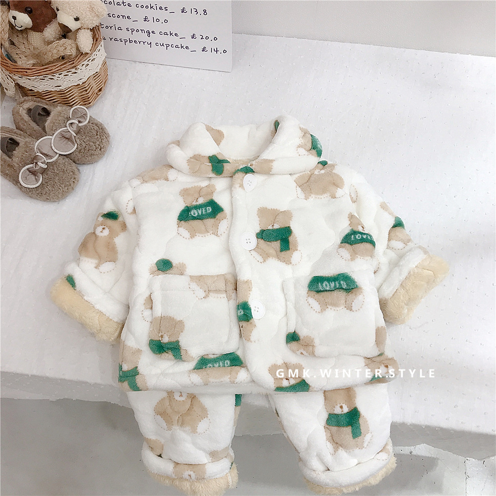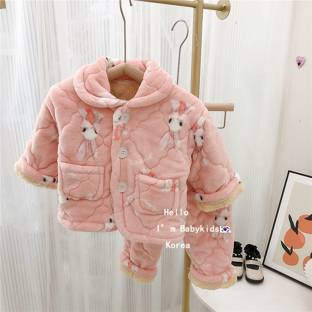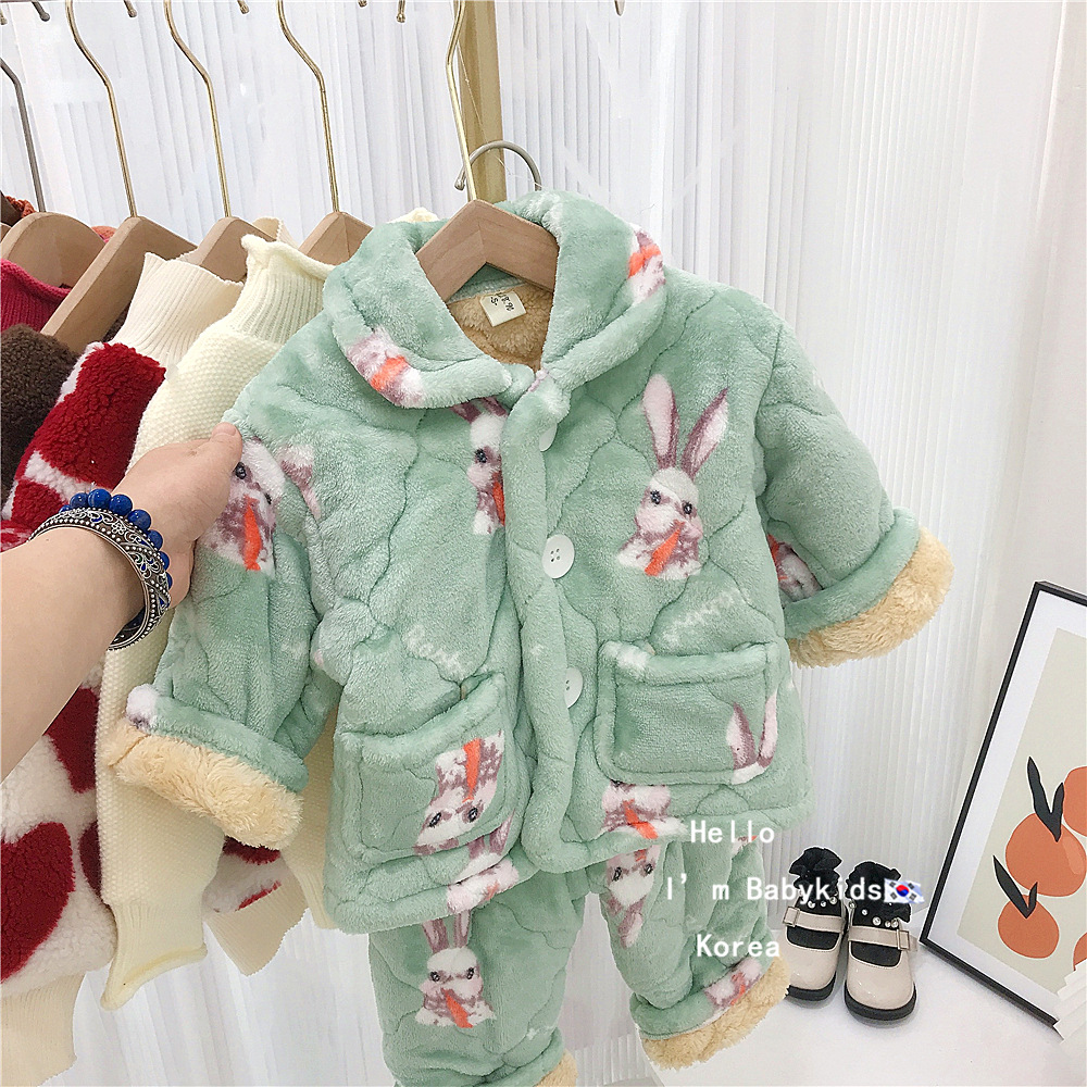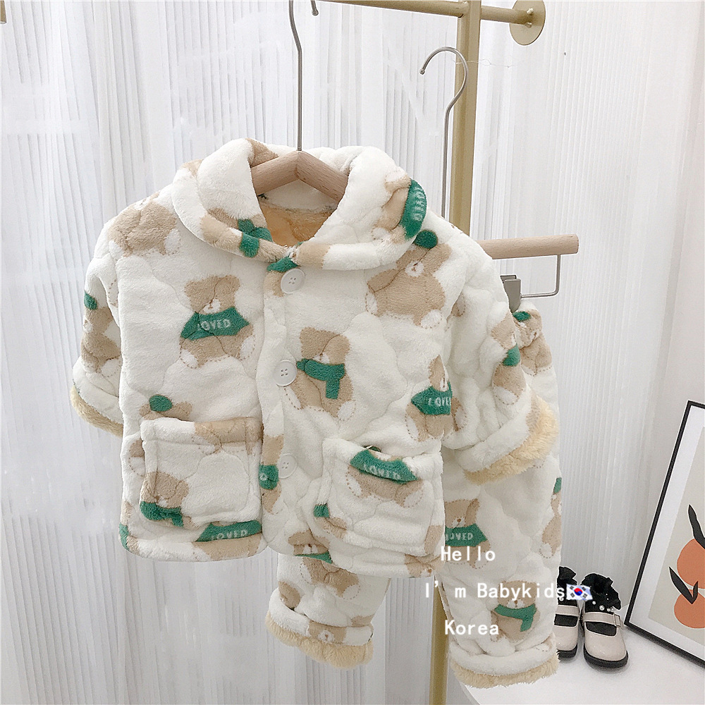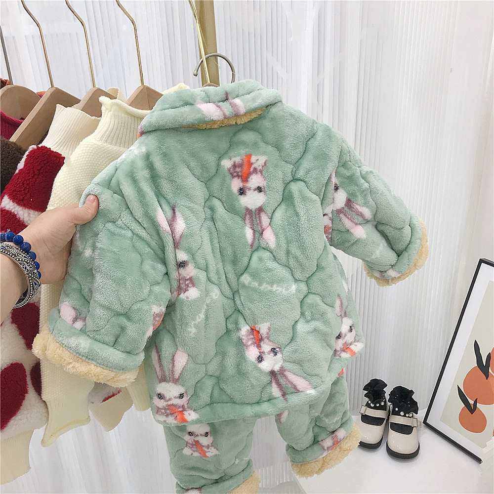어린이 가정 의류 겨울 면 따뜻한 플란넬 세트 아기의 3 단 두꺼운 긴팔 바지 잠옷 투피스 세트스토어 가기