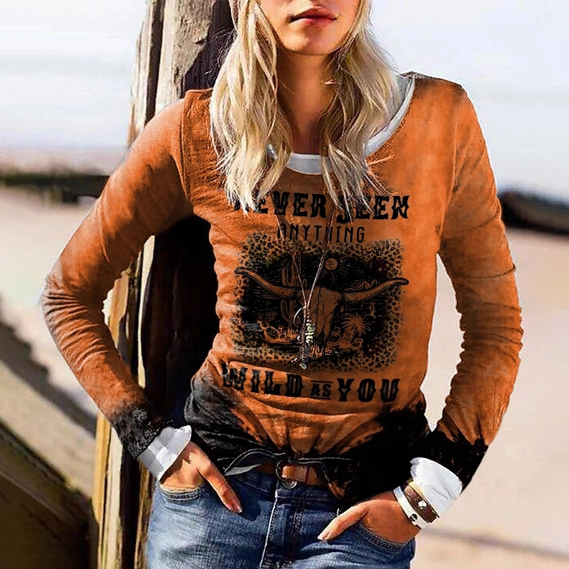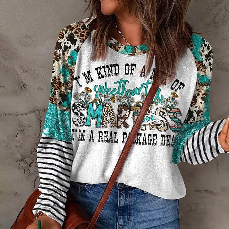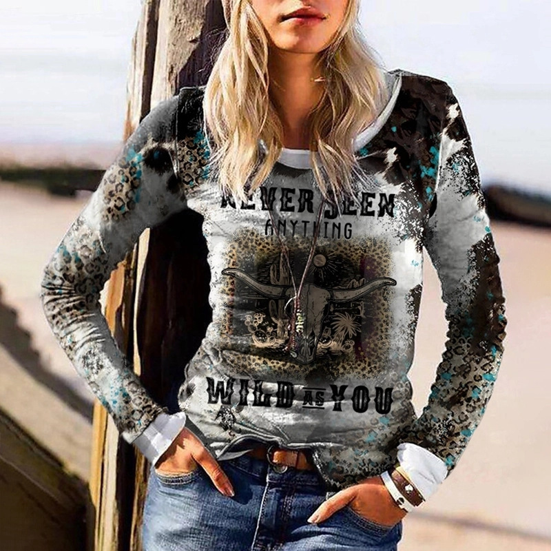 모조 코튼 가을과 겨울 새로운 긴팔 티셔츠 여성용 탑 한국 스타일 인 트렌디 한 라운드 넥 프린팅 3D 프린팅 느슨한 편안함