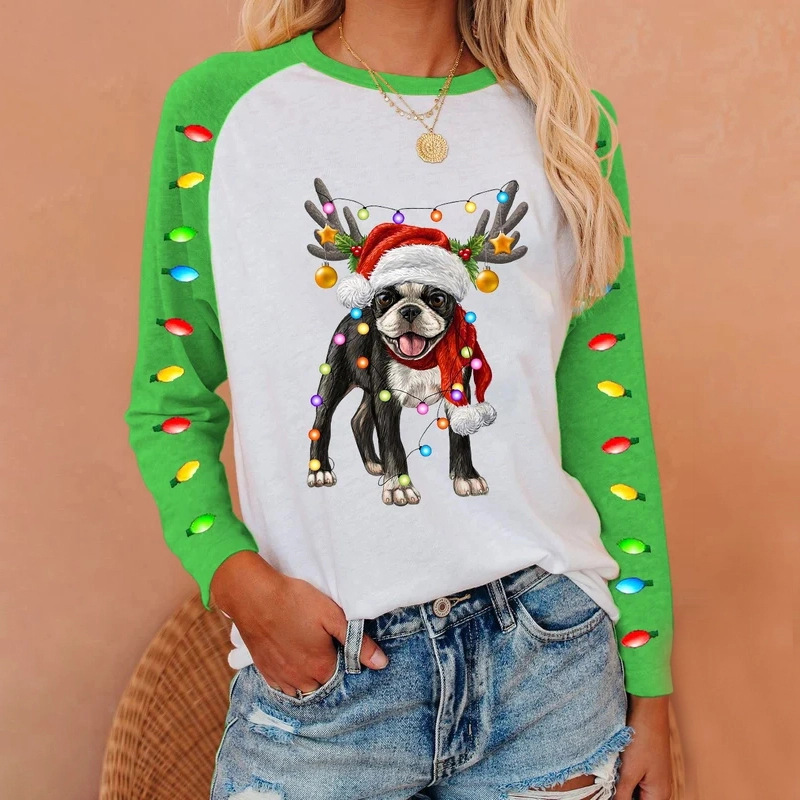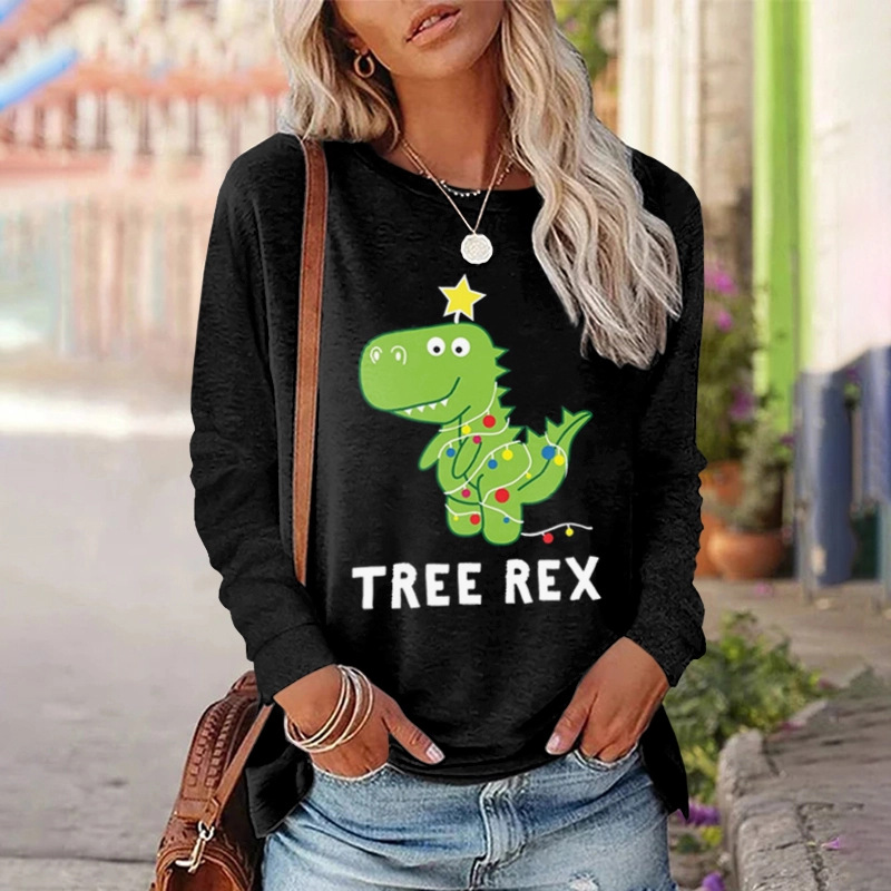 모조 코튼 가을과 겨울 새로운 긴팔 티셔츠 여성용 탑 한국 스타일 인 트렌디 한 라운드 넥 프린팅 3D 프린팅 느슨한 편안함스토어 가기
