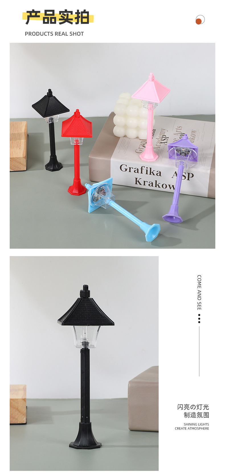 미니 소형 가로등 LED 야간 조명 가로등 장면 램프 장식품 소형 테이블 램프 분위기 장식 마이크로 풍경 도매