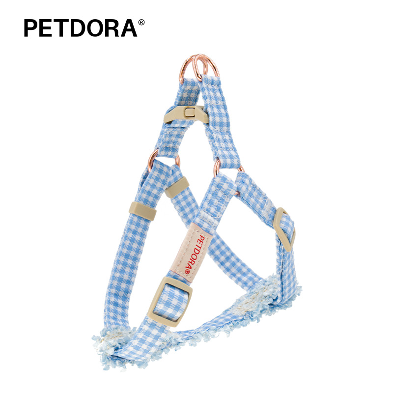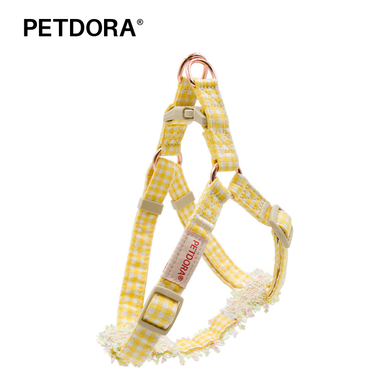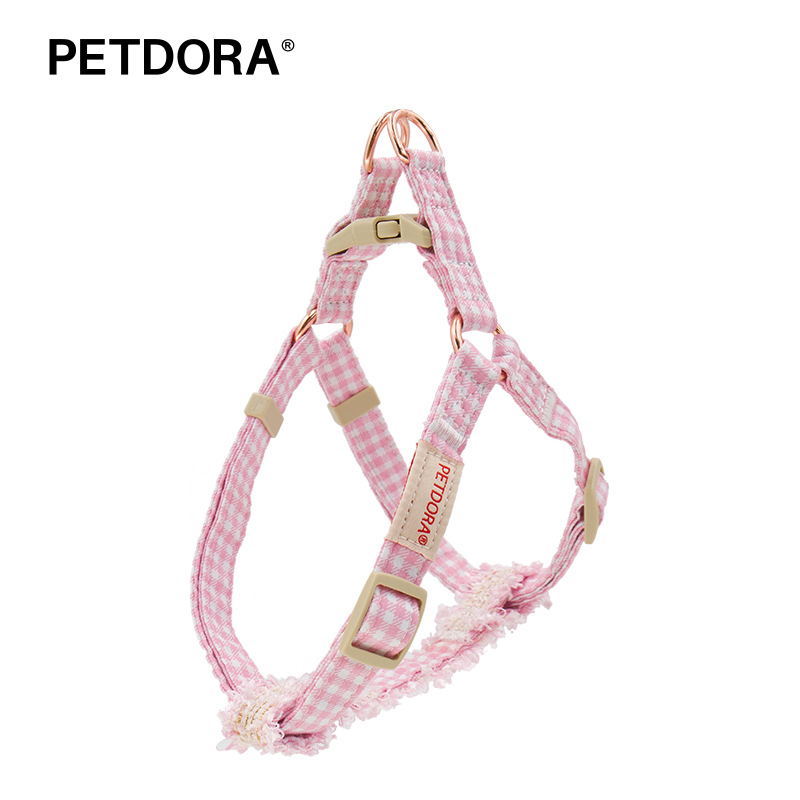 PETDORA小香风花边格子牵引胸背系列
