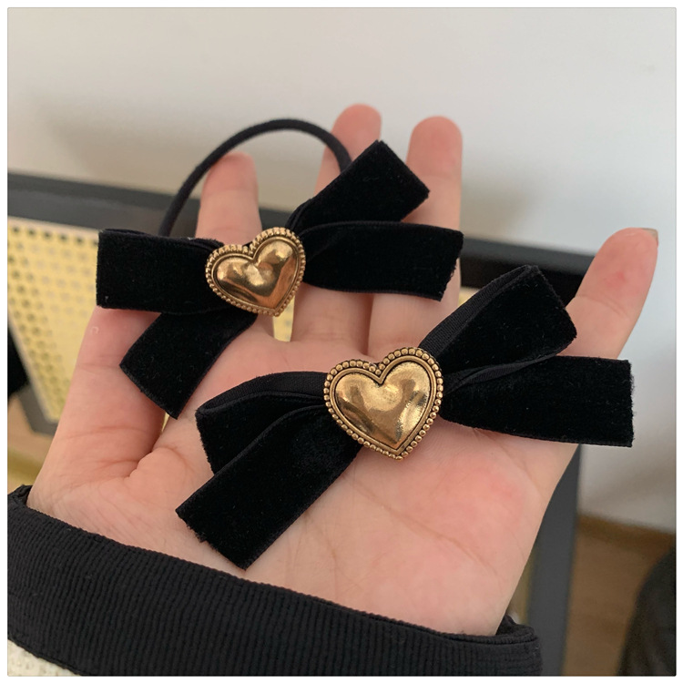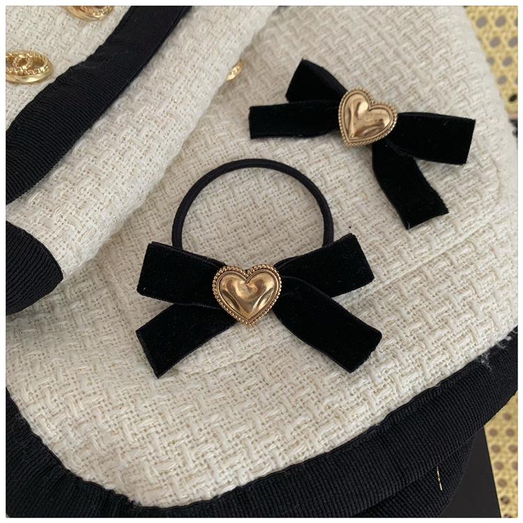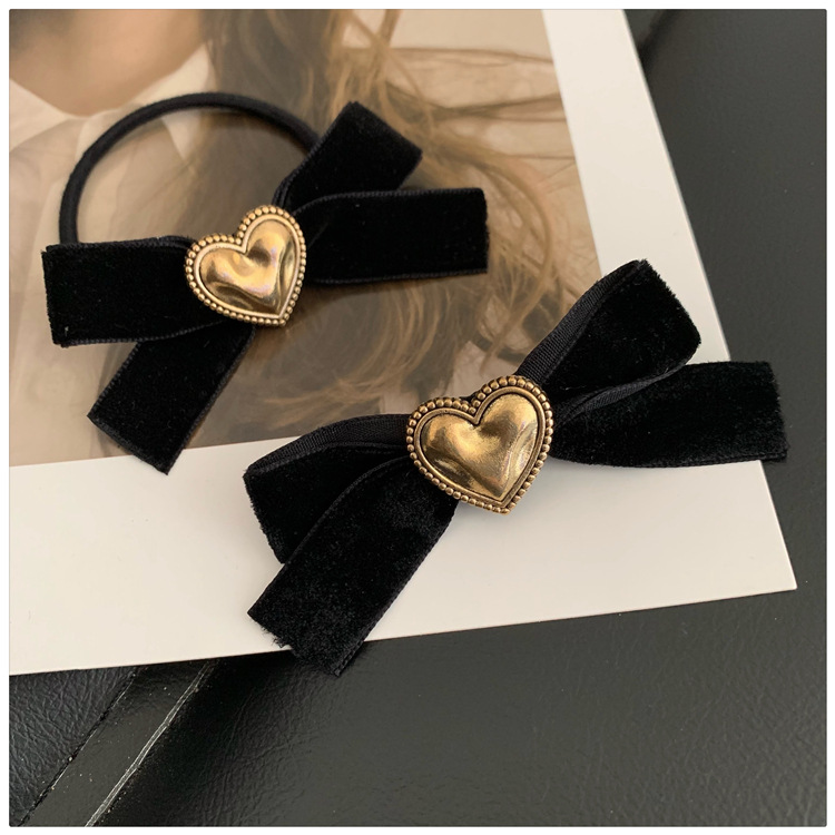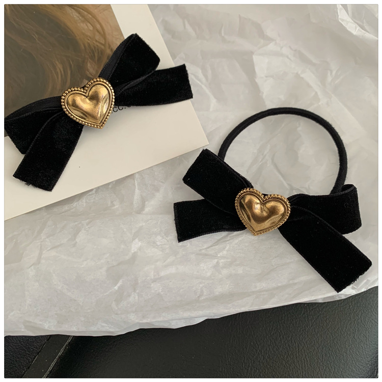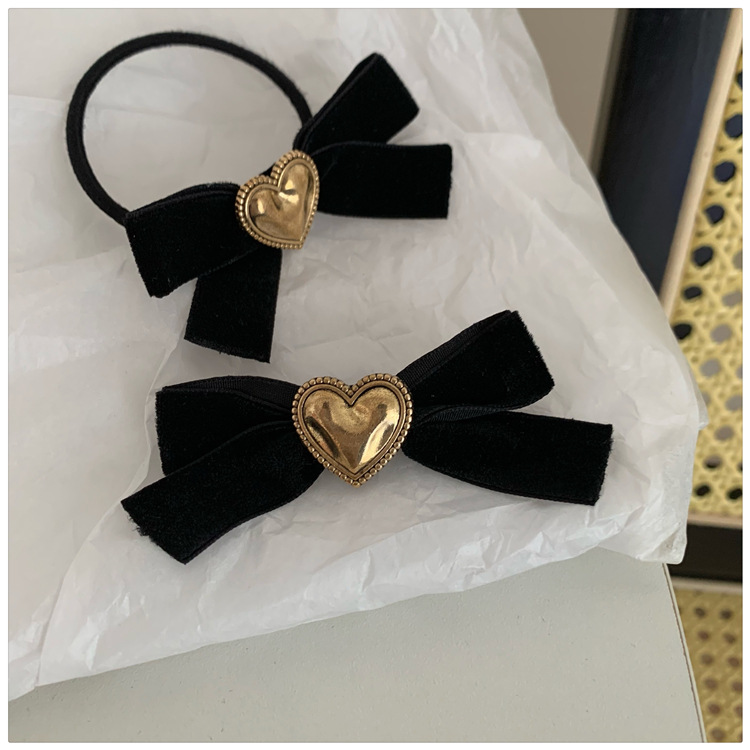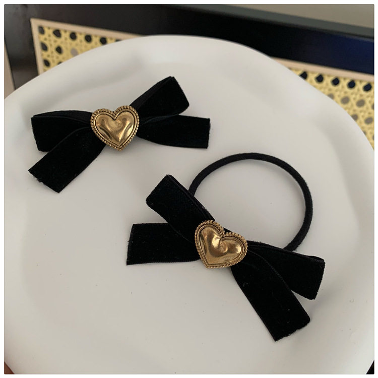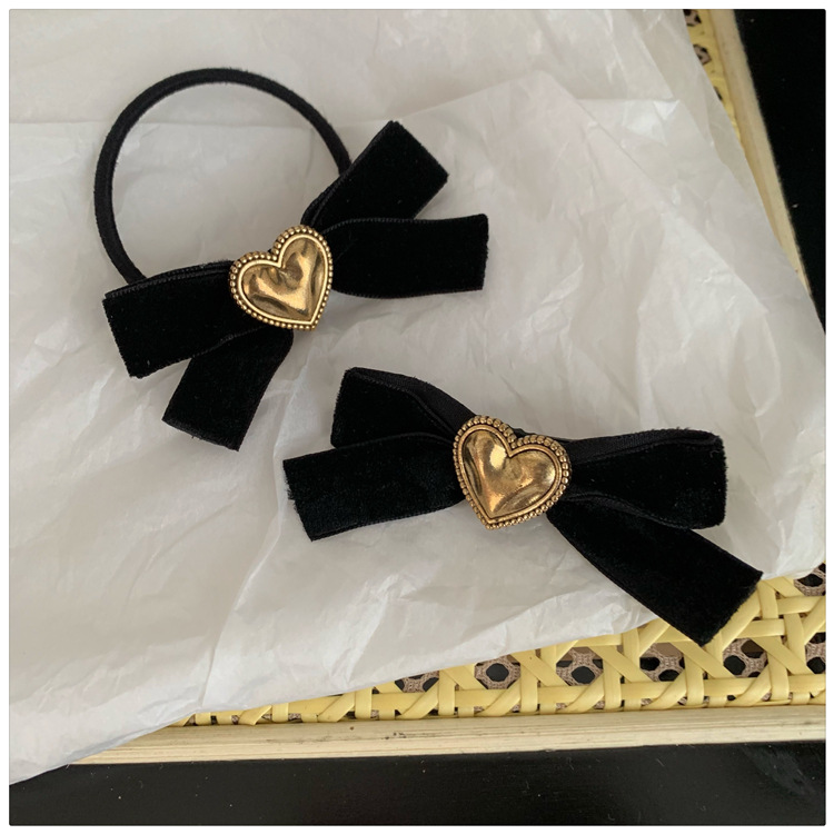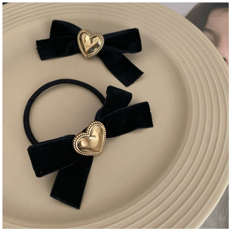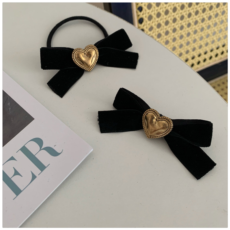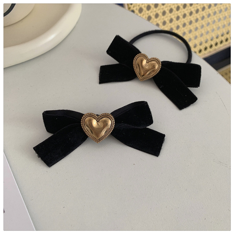 빈티지 벨벳 사랑 리본매듭 헤어 로프 걸리 우아한 헤어밴드 머리핀 달콤한 앞머리 클립 사이드 클립 일본과 한국 헤어 액세서리