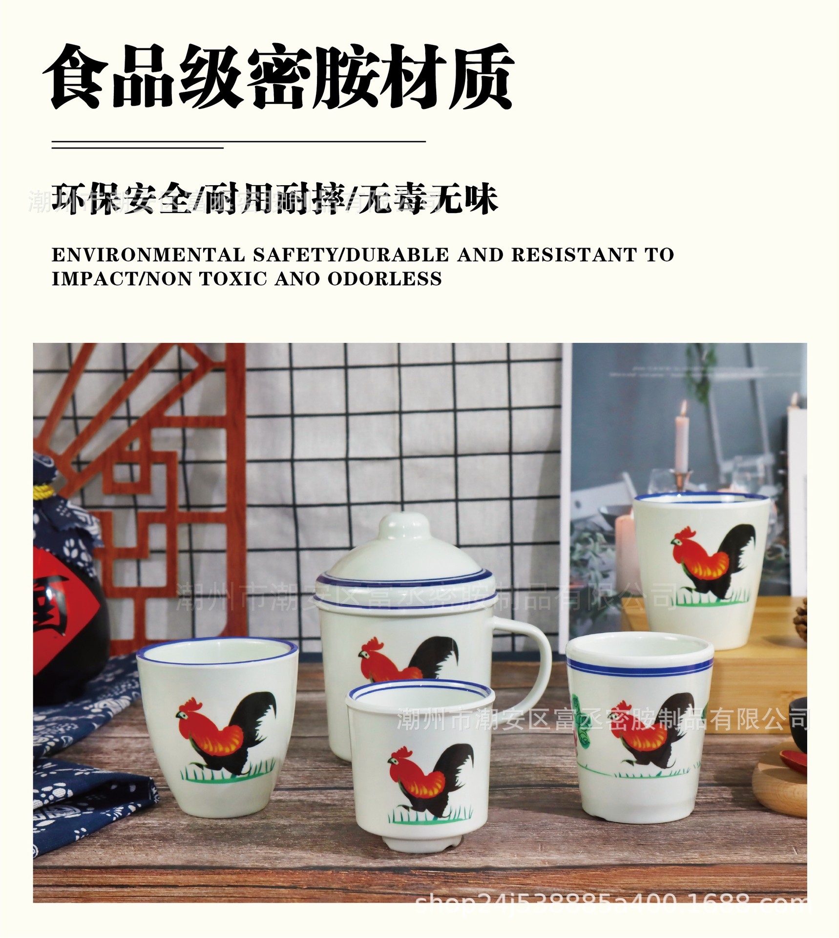 그리운 빈티지 수탉 컵과 접시 멜라민 식기 커버 그릇 컵 컵 소스 접시 홍콩식 차 레스토랑