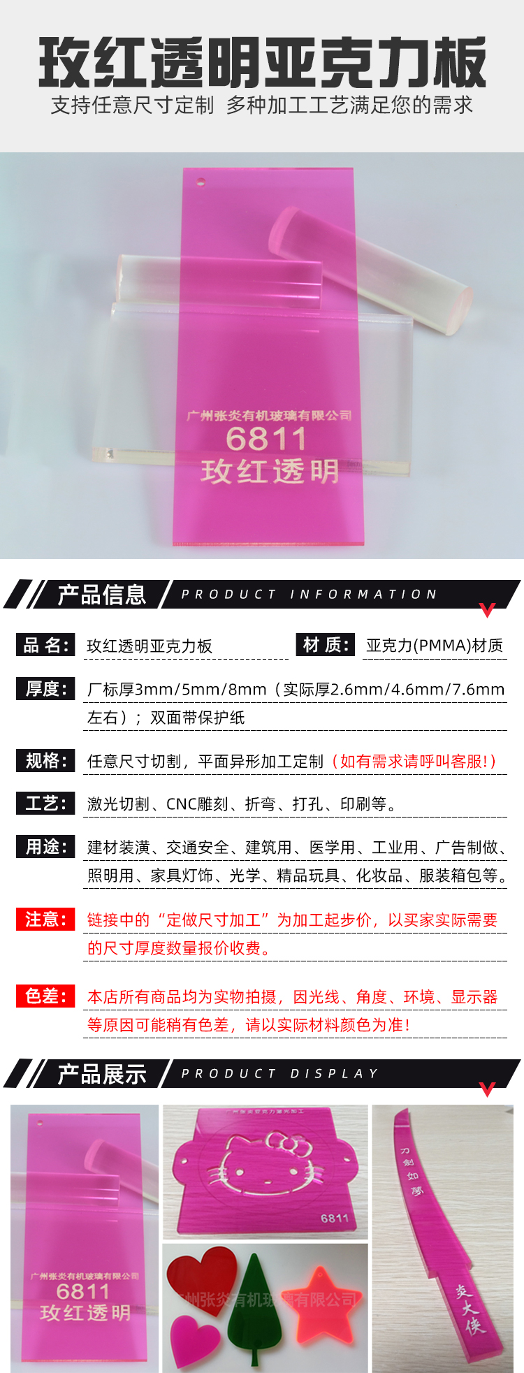 핑크 아크릴 보드 장미 라이트 레드 반투명 플렉시 유리 장식 재료 야기 보드 가공
