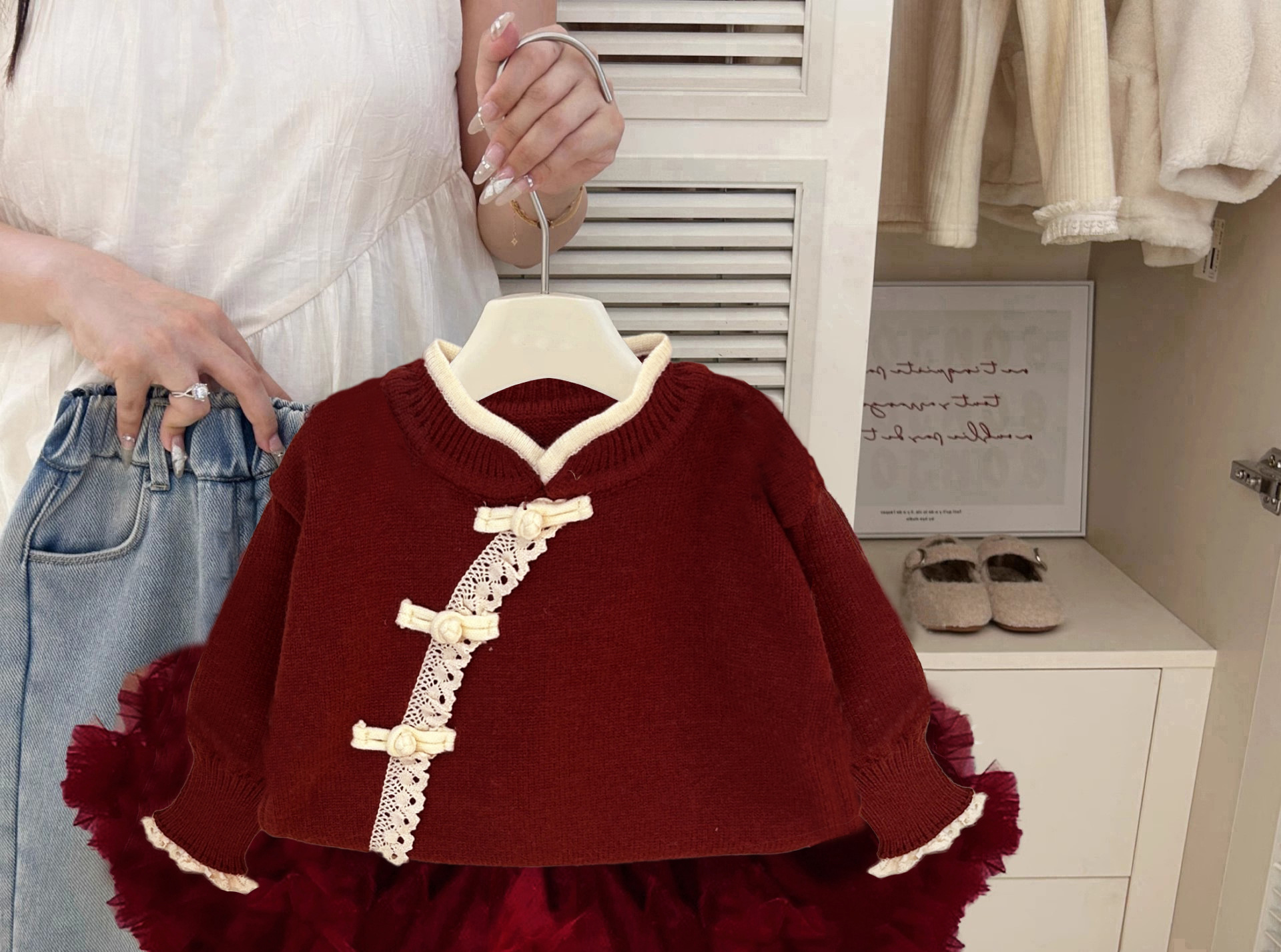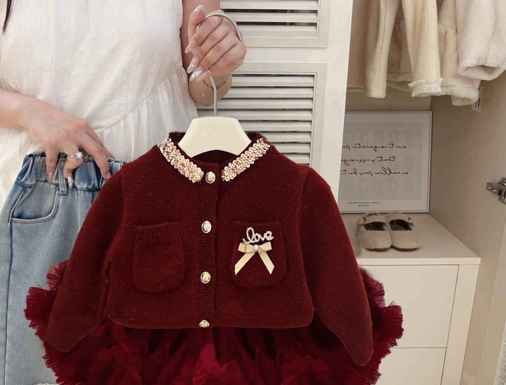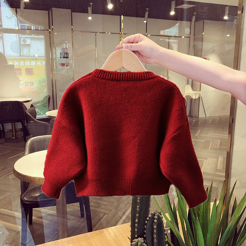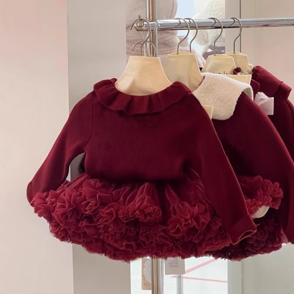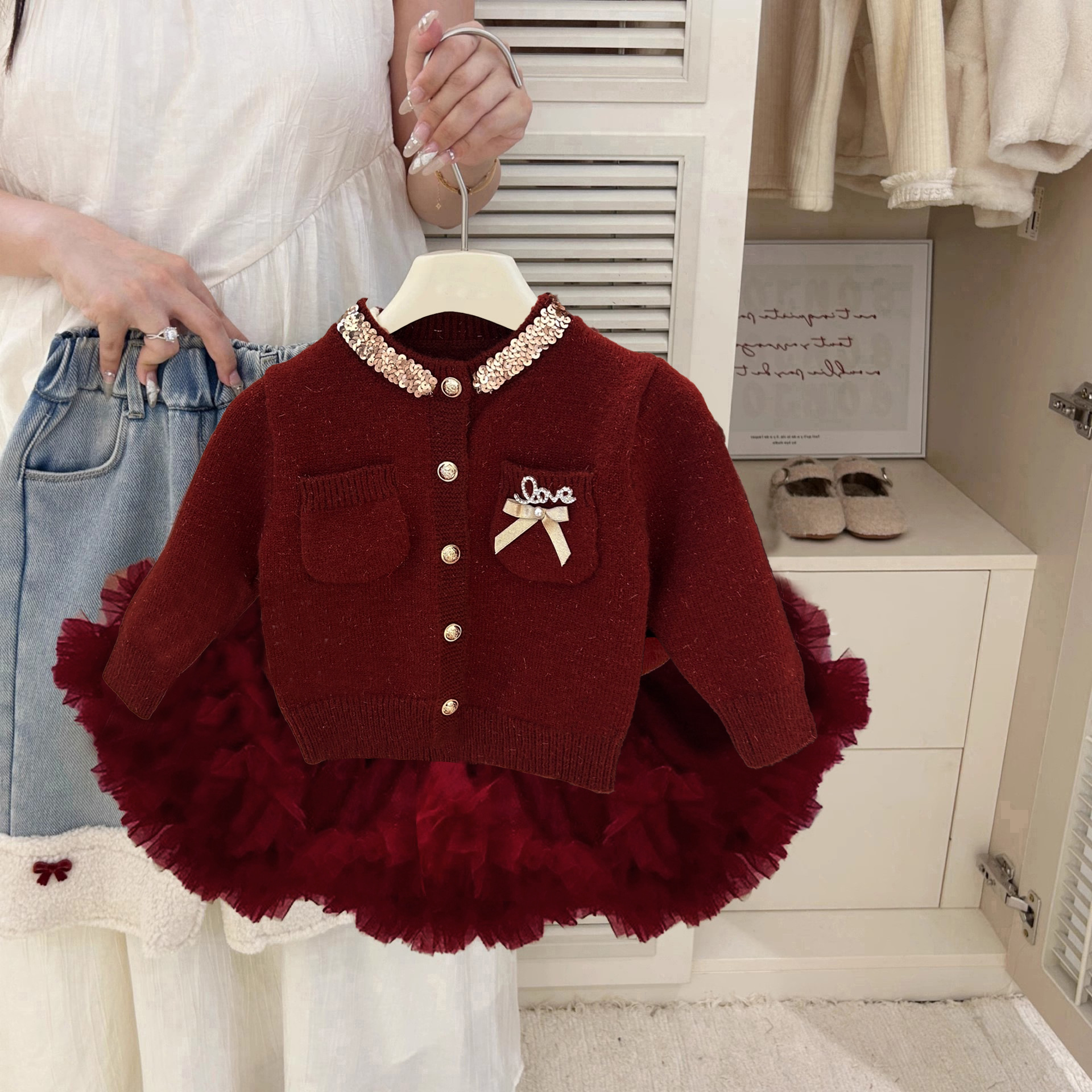 가을과 겨울 아동복 새로운 여아 레드 스웨터 니트 작은 체리 니트 셔츠 아기 투투 스커트스토어 가기