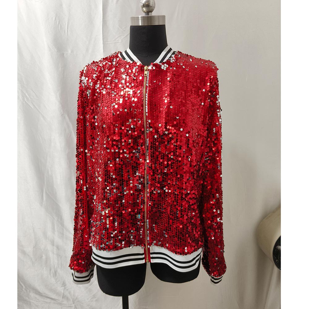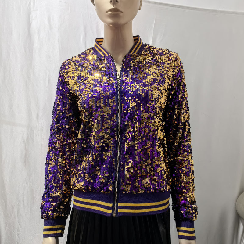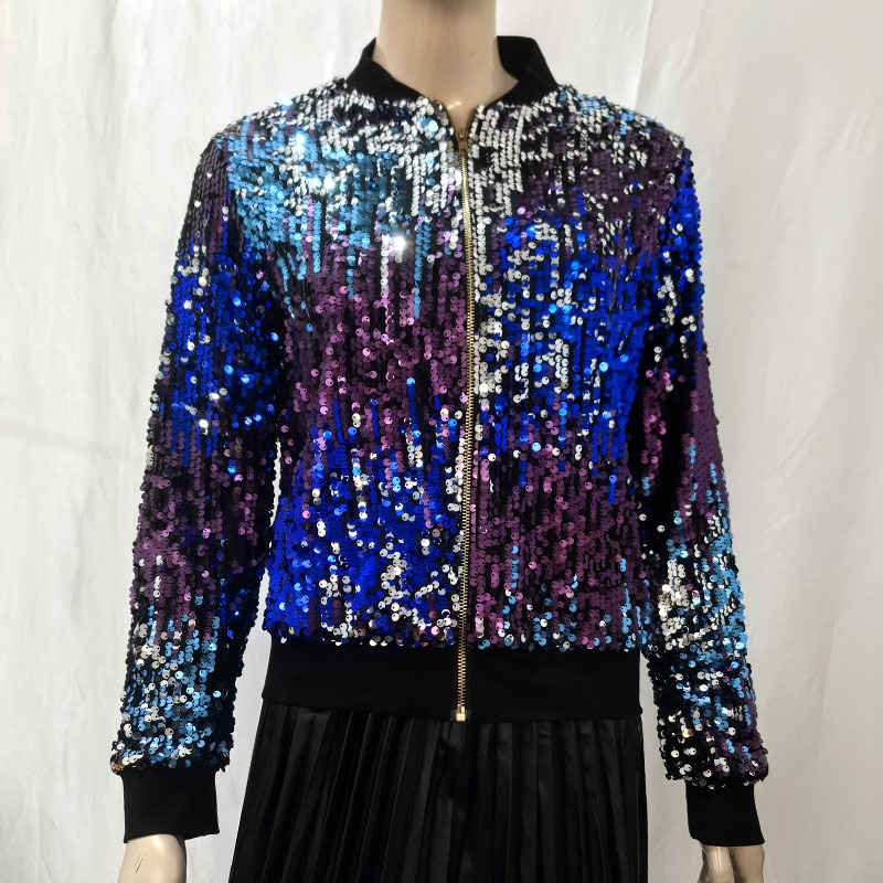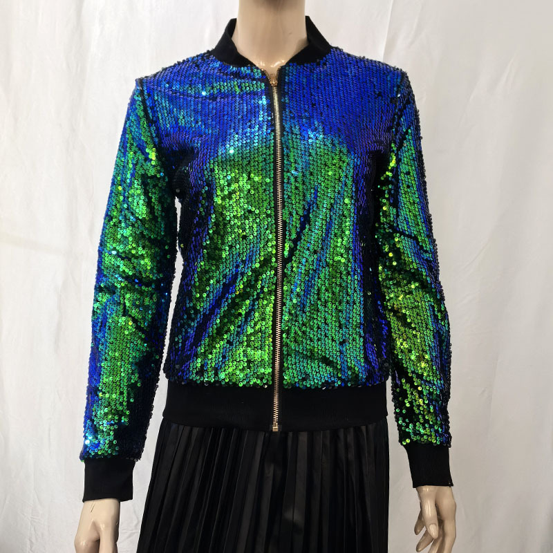 유럽과 미국의 대외 무역 새로운 여성의 최고 아마존 패션 골든 스팽글 여성을위한 독특한 짧은 지퍼 재킷스토어 가기