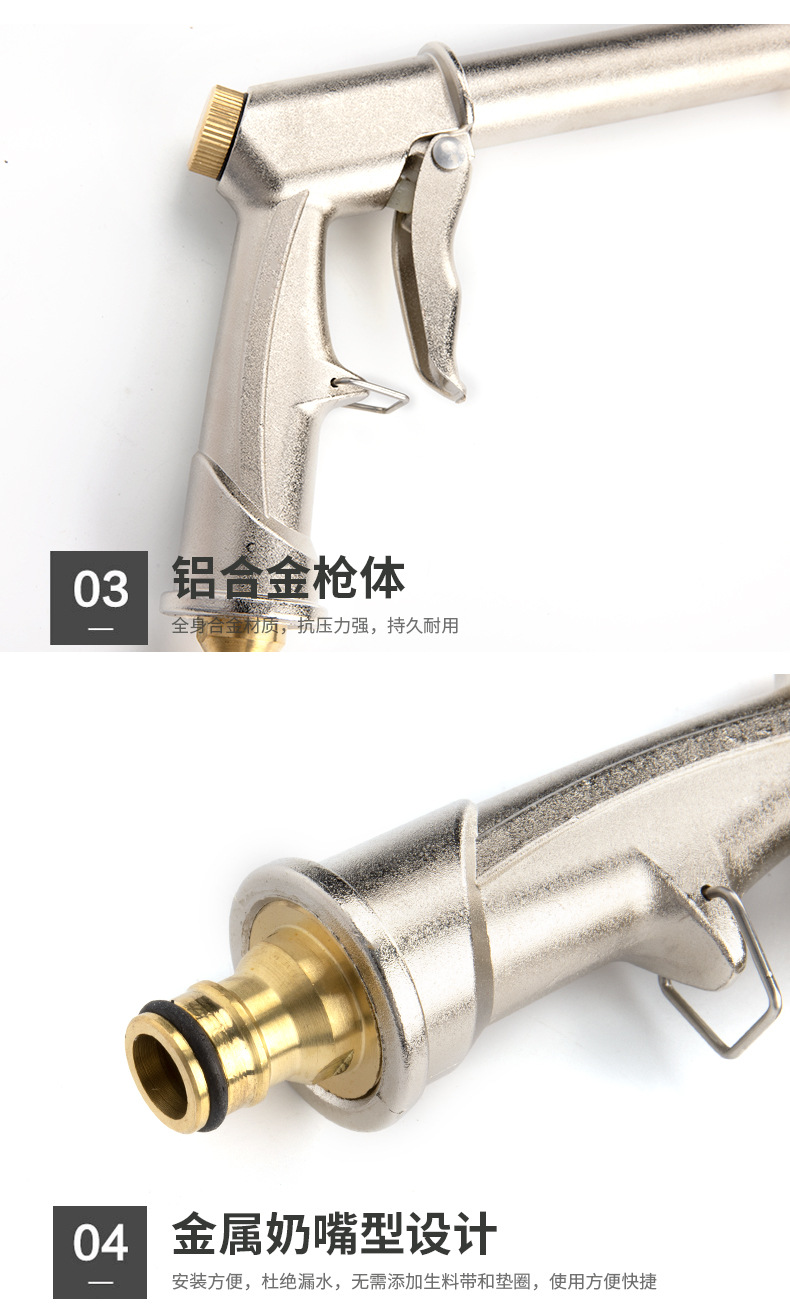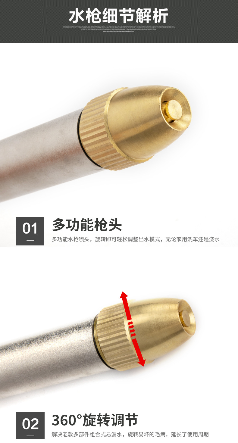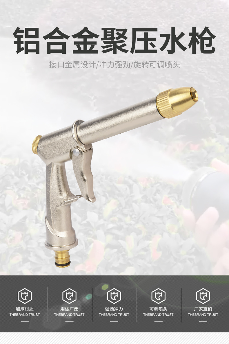 모든 금속 전기 도금 길어진 폴리 압력 물총 머리 가정용 수돗물 세차 브러시 자동차 샤워 헤드 야채 정원 스프레이 잡기