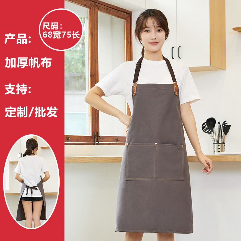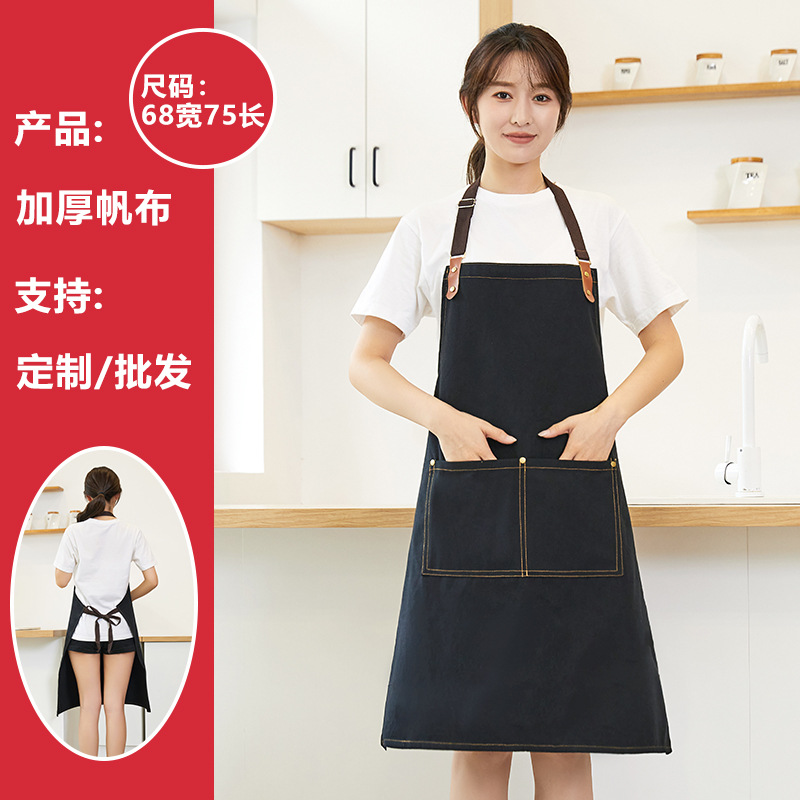 .【围裙特点】防污防尘可以穿着炒菜、做饭、做家务等用心保护衣服不被弄脏。【耐用优质厨 师围裙】围裙采用柔软棉质和帆布材质制作。 它具有防水、防臭、透气、良好的面料牢固度 和较强的耐磨性。 挂脖处采用金属铆钉加固,经久耐用。
