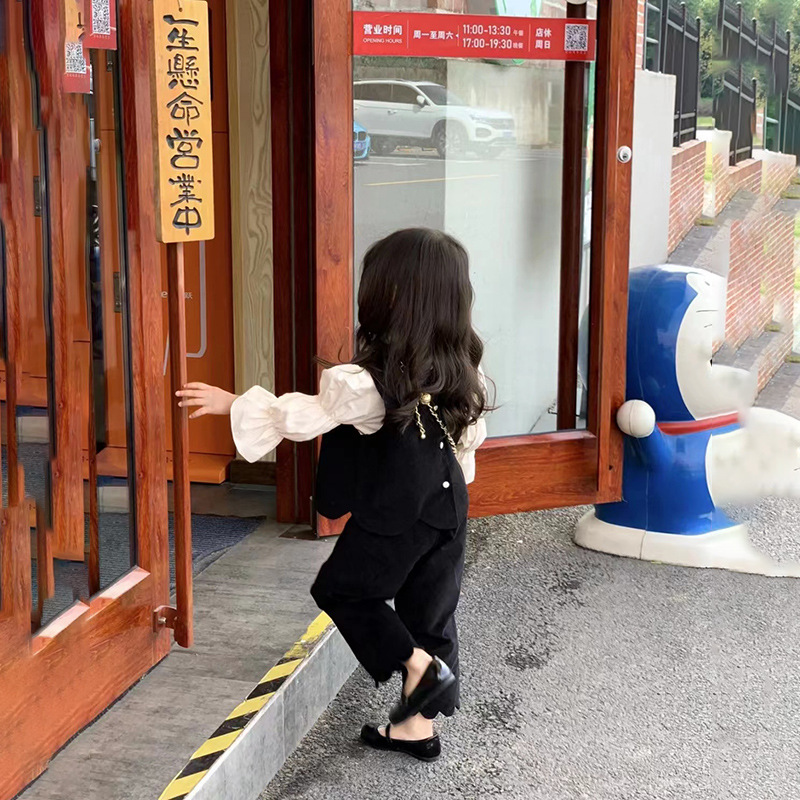봄과 가을 새로운 여자 서양 스타일 조끼 세트 한국 스타일 우아한 퍼프 슬리브 셔츠 레이스 바지 쓰리 피스 세트스토어 가기
