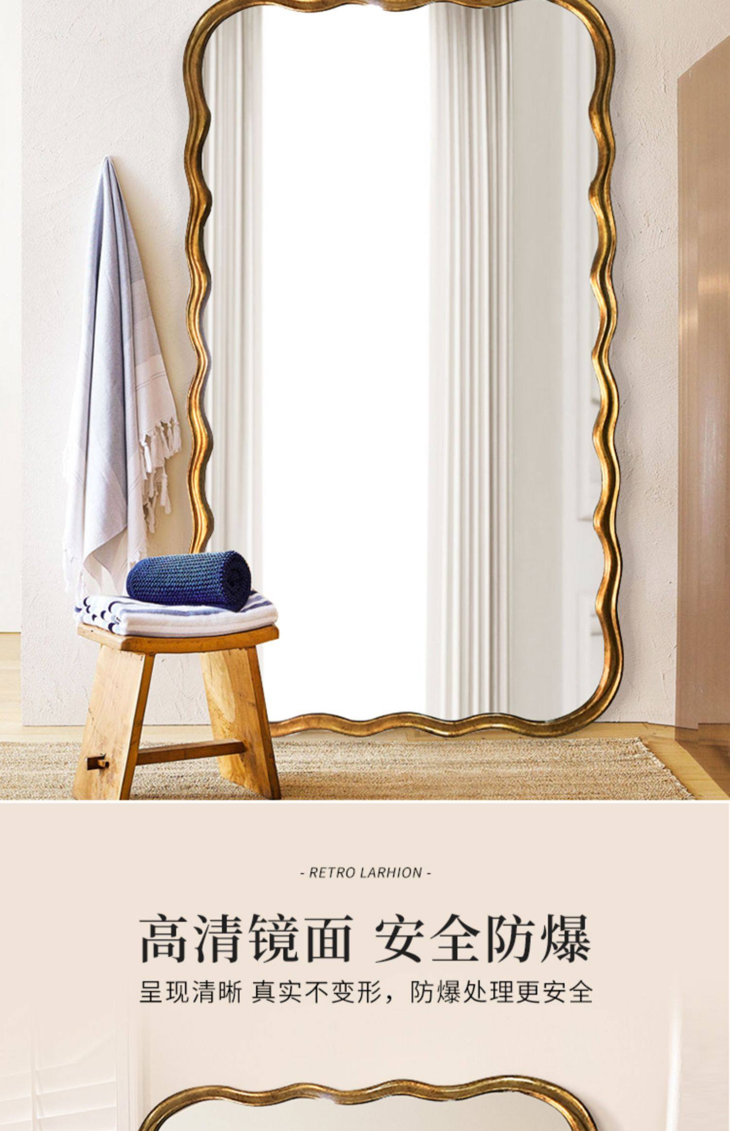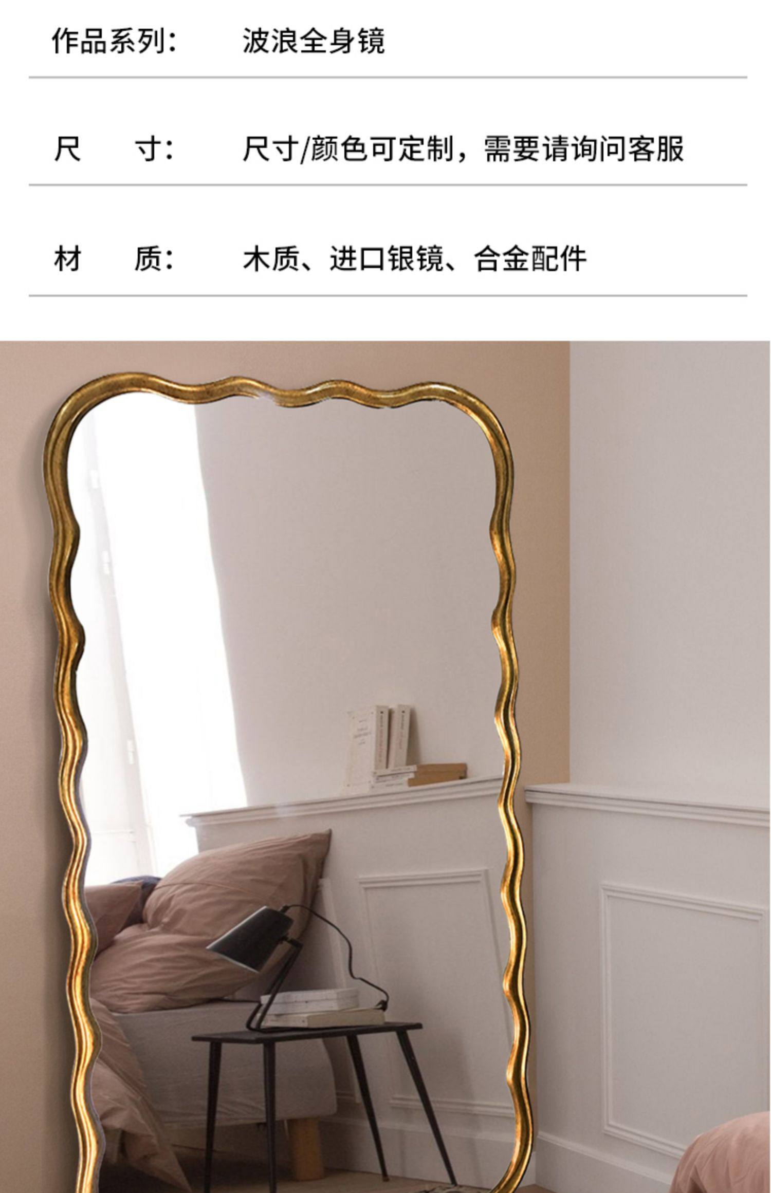 도매 프랑스 복고풍 전체 길이 거울 벽걸이 형 바닥 거울 빛 럭셔리 벽걸이 형 유럽 스타일 피팅 거울 미국 웨이브 드레싱 거울