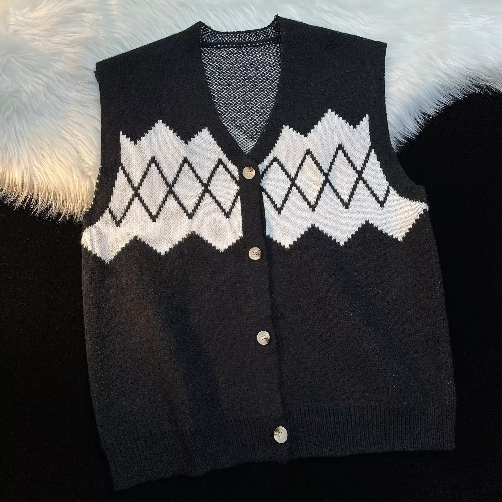 트렌디 한 패션 조끼 남자의 모든 경기 기하학적 패턴 새로운 청소년 인기 심플 하라주쿠 우아한 V-넥 트렌드스토어 가기