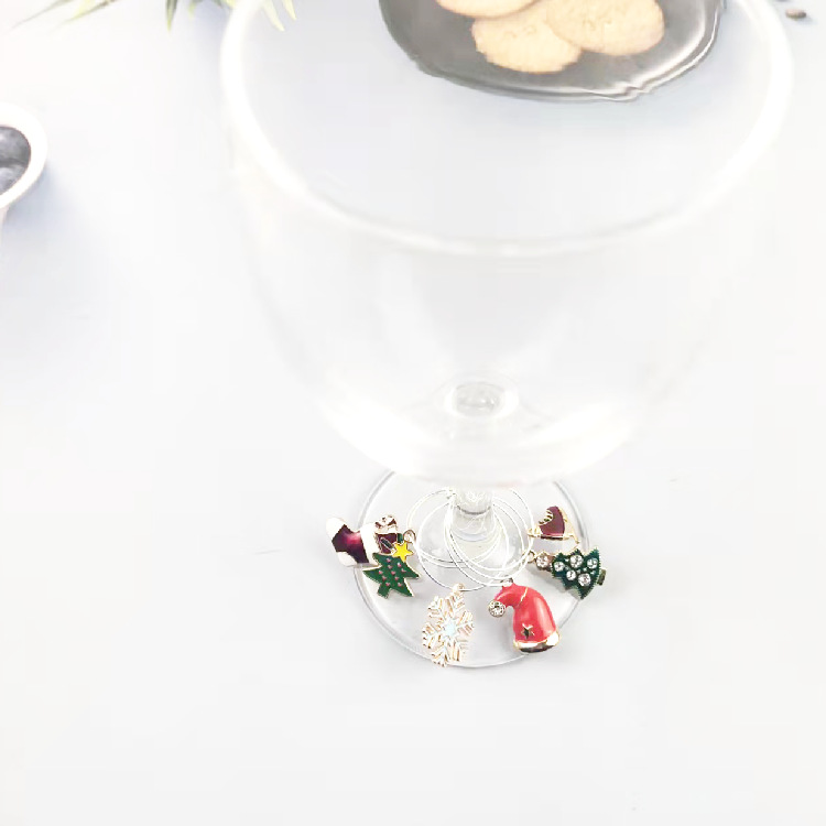 크리스마스 파티 크리스마스 트리 와인 글라스 링 금속 와인 글라스 교수형 버클 링 크리스마스 와인 글라스 링 쥬얼리 키트 도매스토어 가기