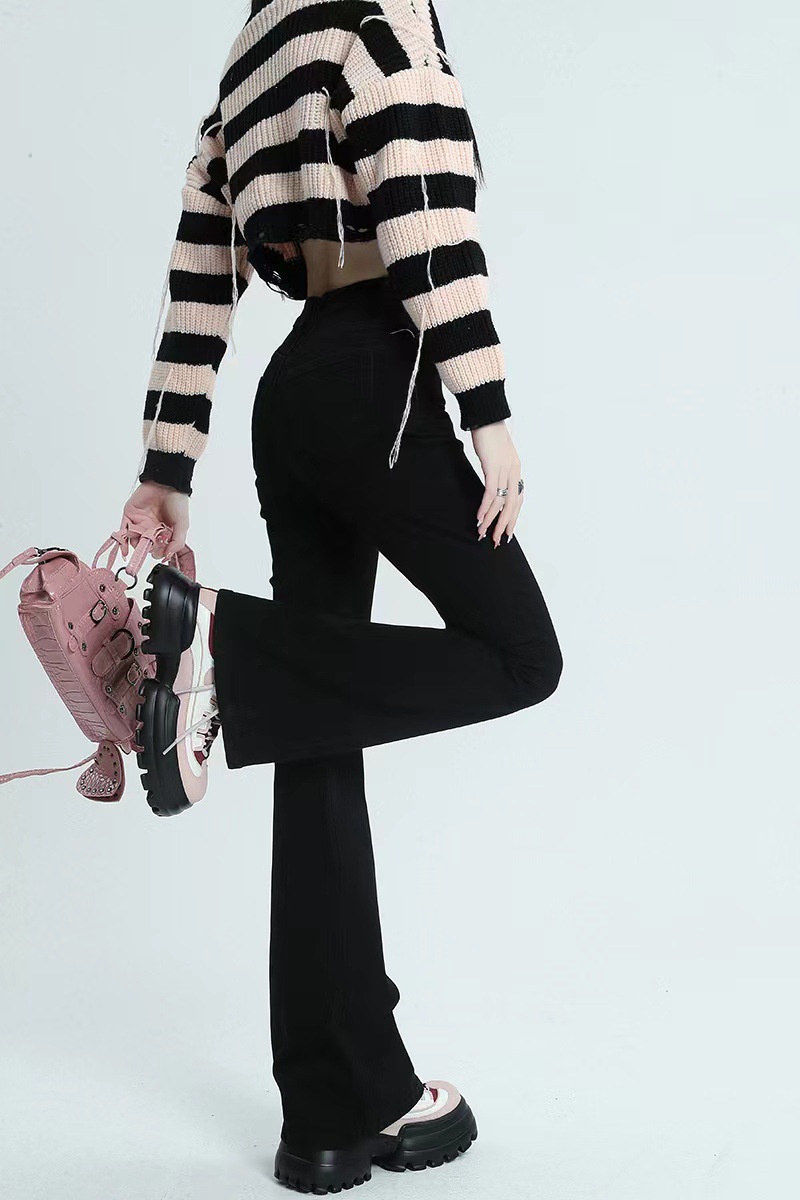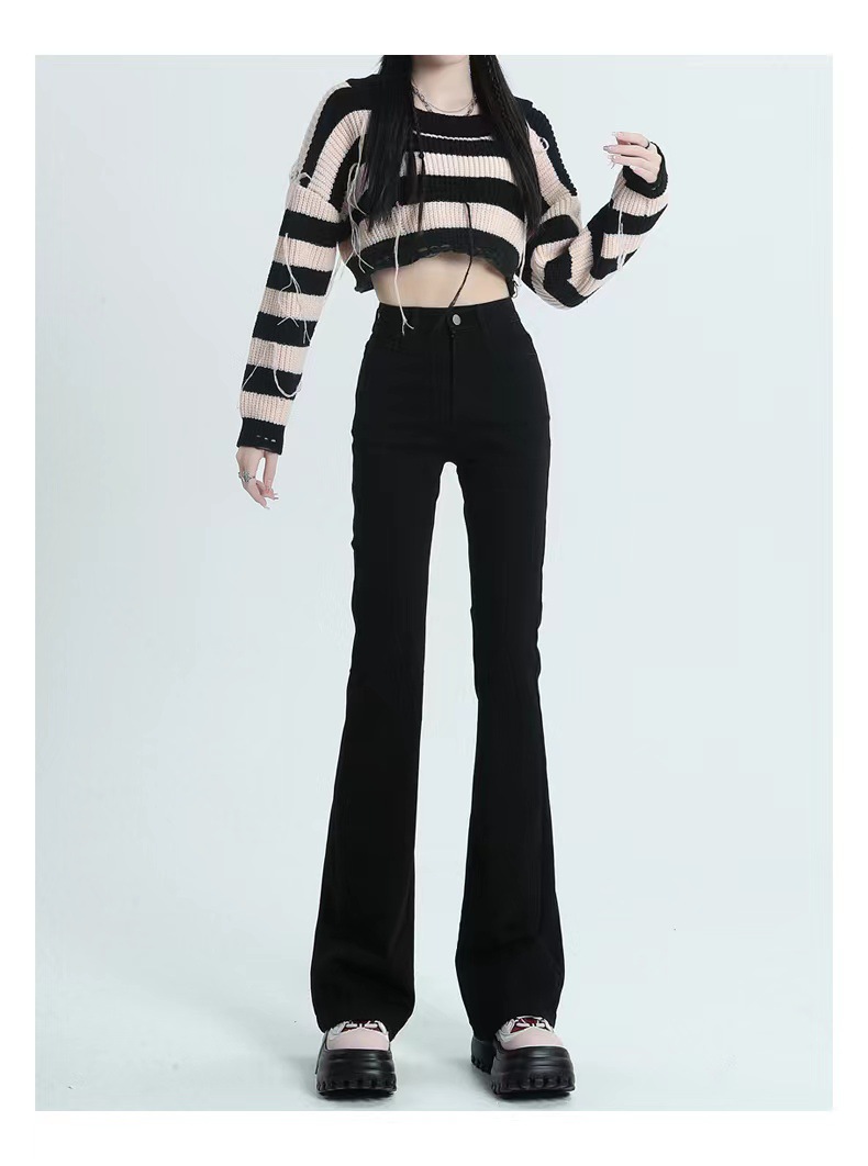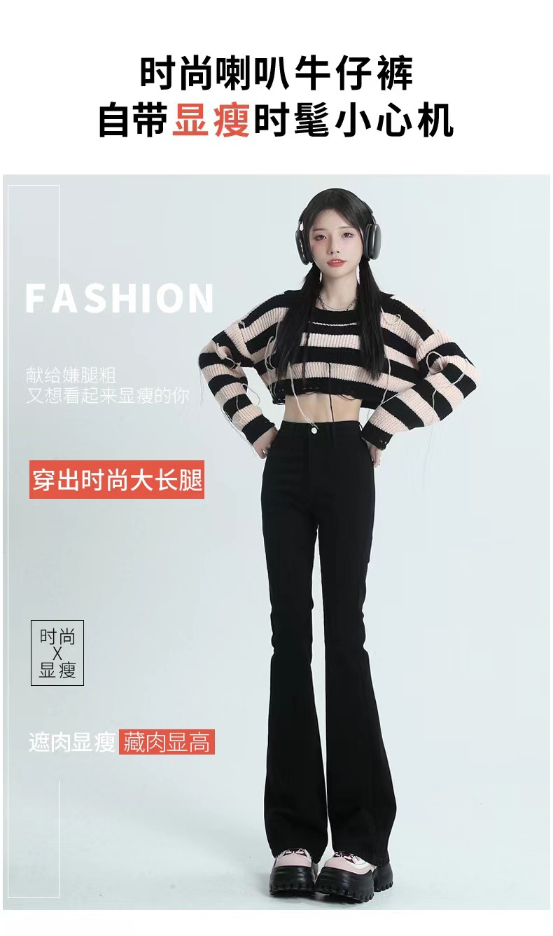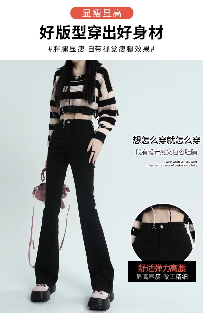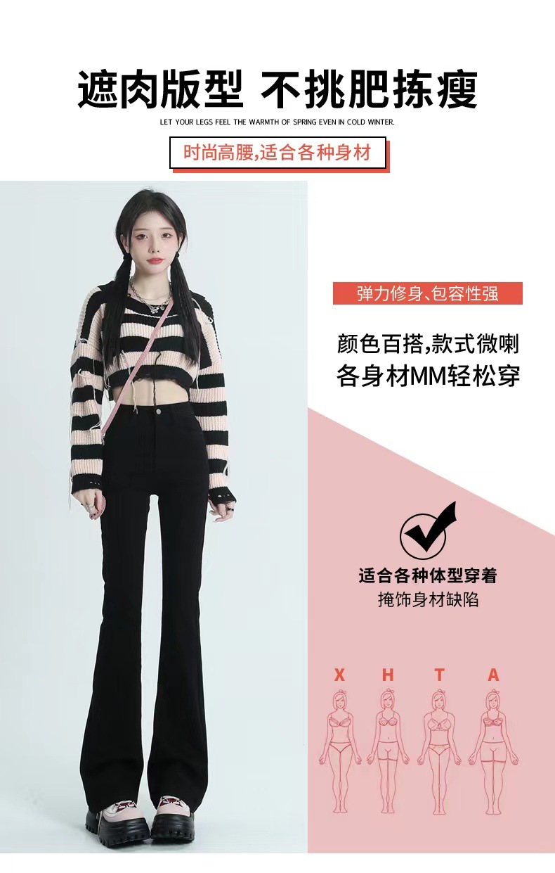 블랙 마이크로 플레어 진 여성용 2025 가을 겨울 신상 하이웨이스트 신축성 키높이 슬림핏 소녀용 말굽 바지스토어 가기