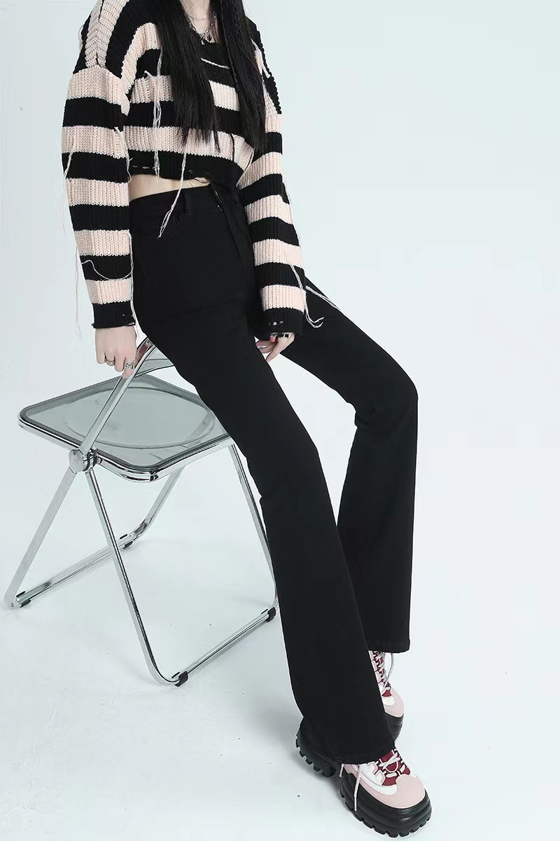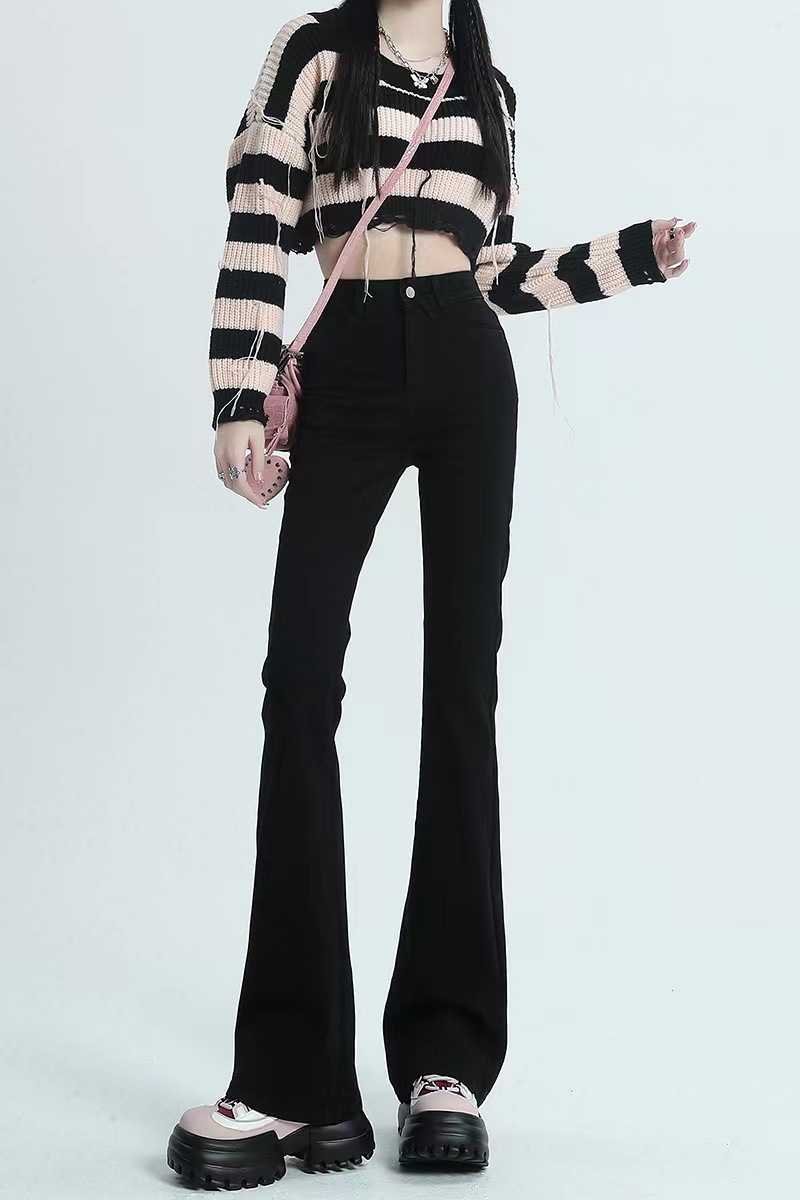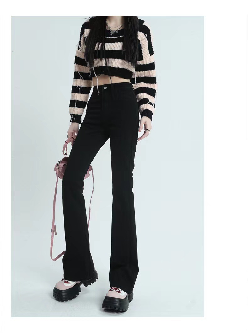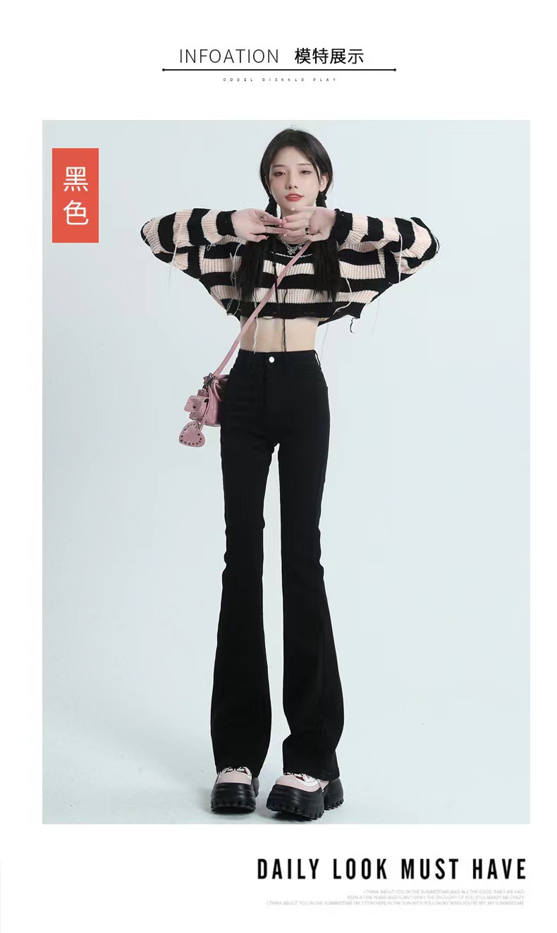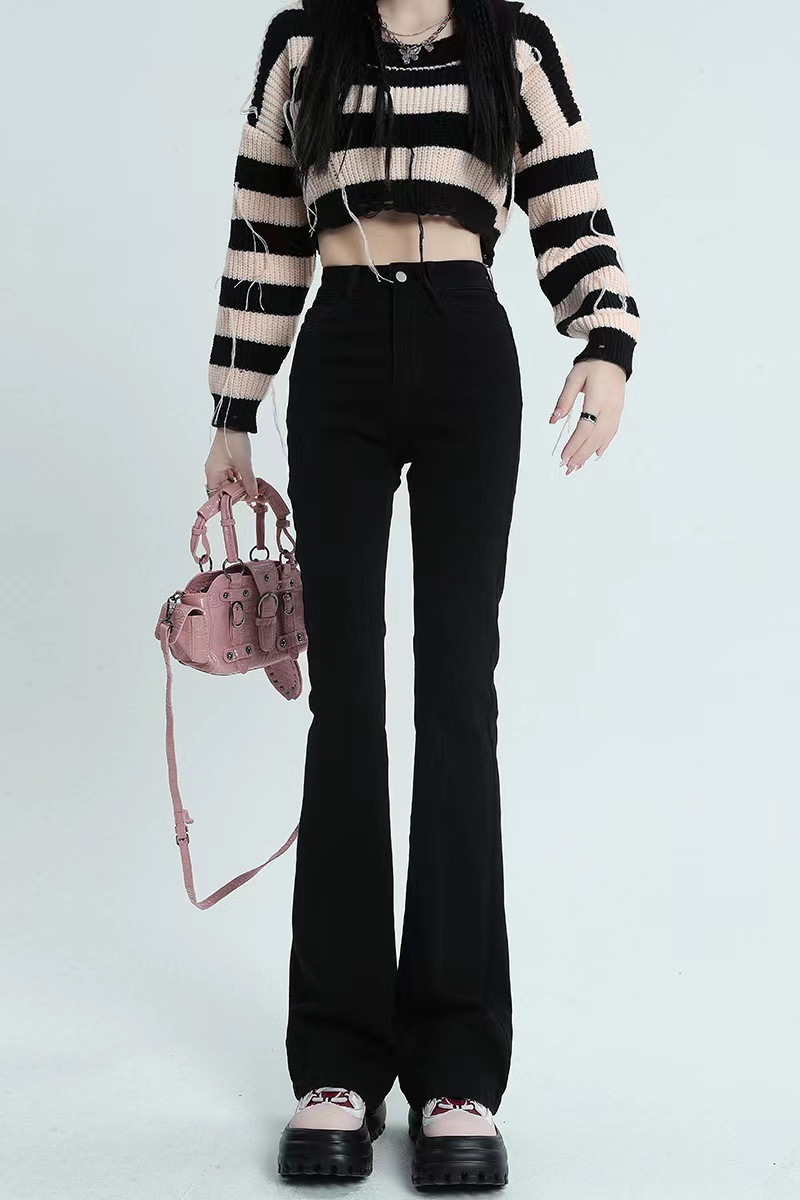 블랙 마이크로 플레어 진 여성용 2025 가을 겨울 신상 하이웨이스트 신축성 키높이 슬림핏 소녀용 말굽 바지스토어 가기