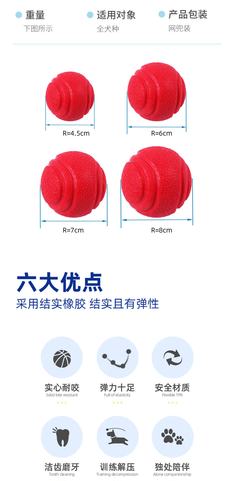 애완 동물 용품 TPR 솔리드 탄성 공 개 장난감 물림 방지 및 어금니 애완견 장난감 공 개 훈련 공