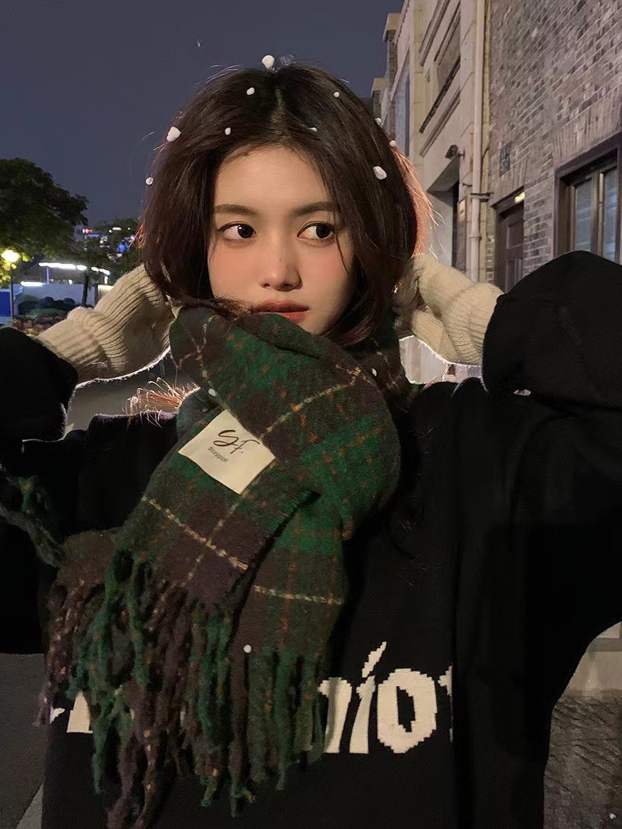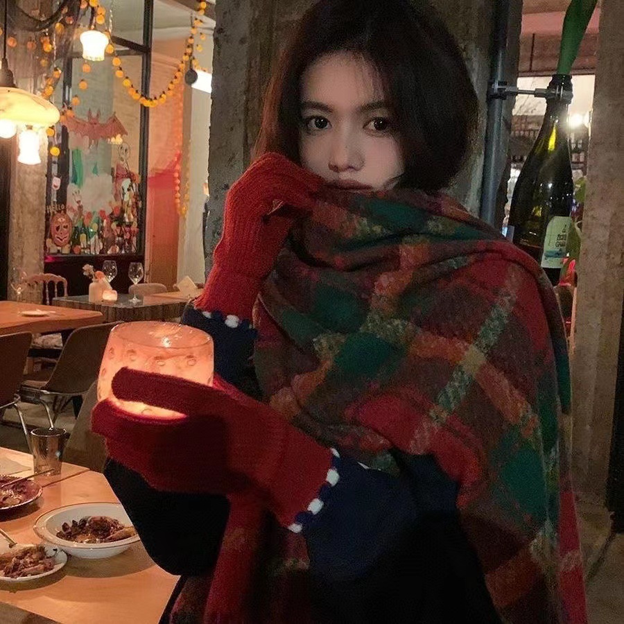 크리스마스 스카프 모조 캐시미어 모든 매치 빅 레드 격자 무늬 숄 레인보우 겨울 스카프 모든 매치 유행 새해 선물스토어 가기