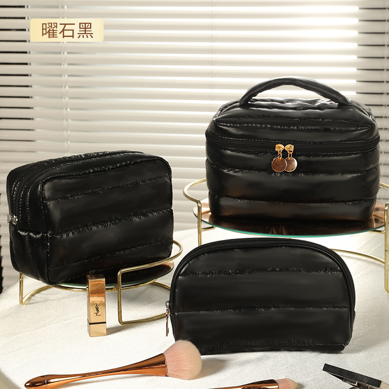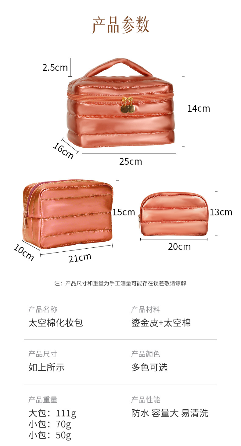 새로운 골드 가죽 화장품 가방 경량 부드러운 피부 친화적 인 방수 메이크업 보관 가방 여성 휴대용 화장품 가방