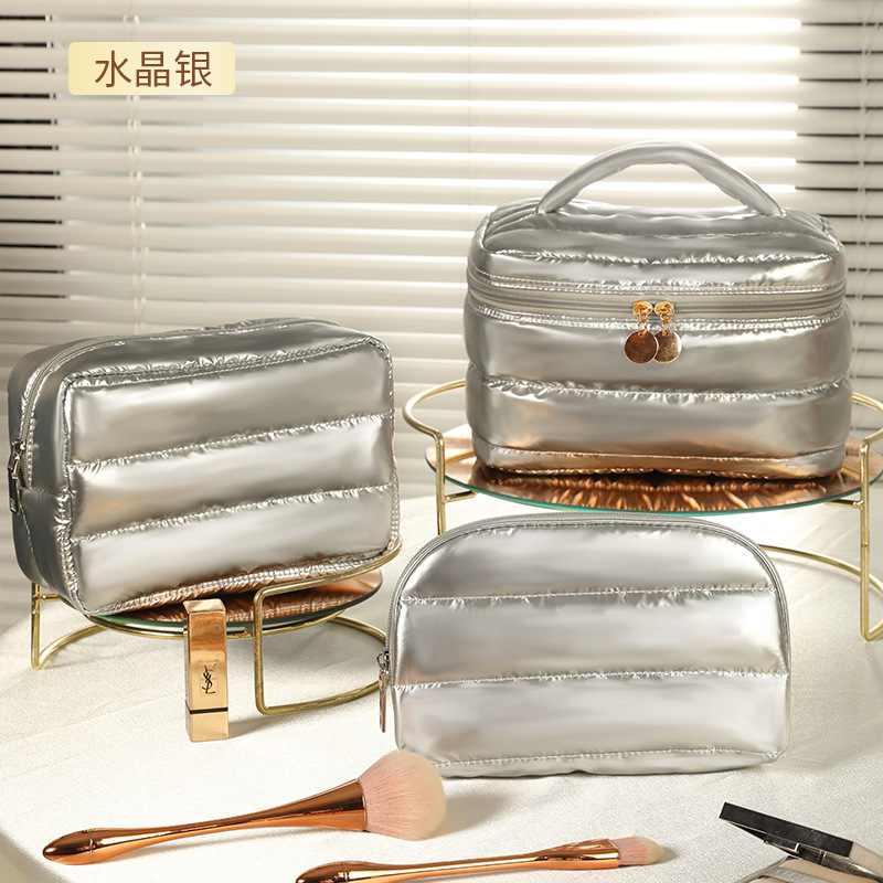 새로운 골드 가죽 화장품 가방 경량 부드러운 피부 친화적 인 방수 메이크업 보관 가방 여성 휴대용 화장품 가방스토어 가기