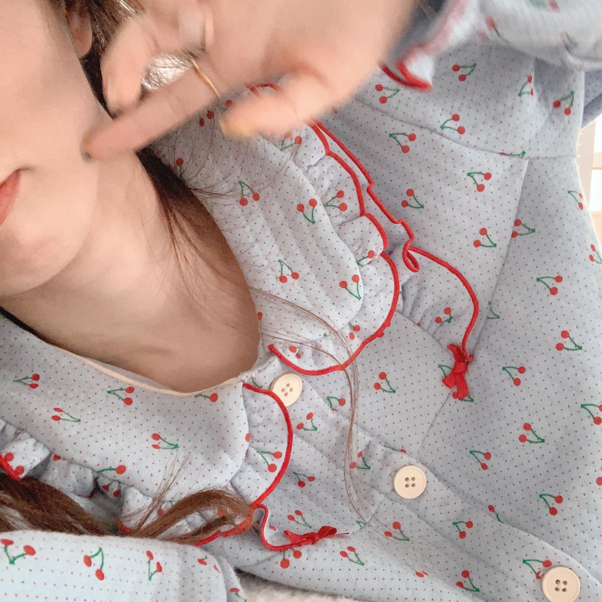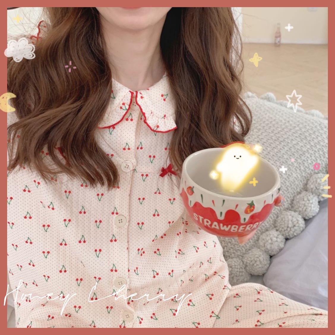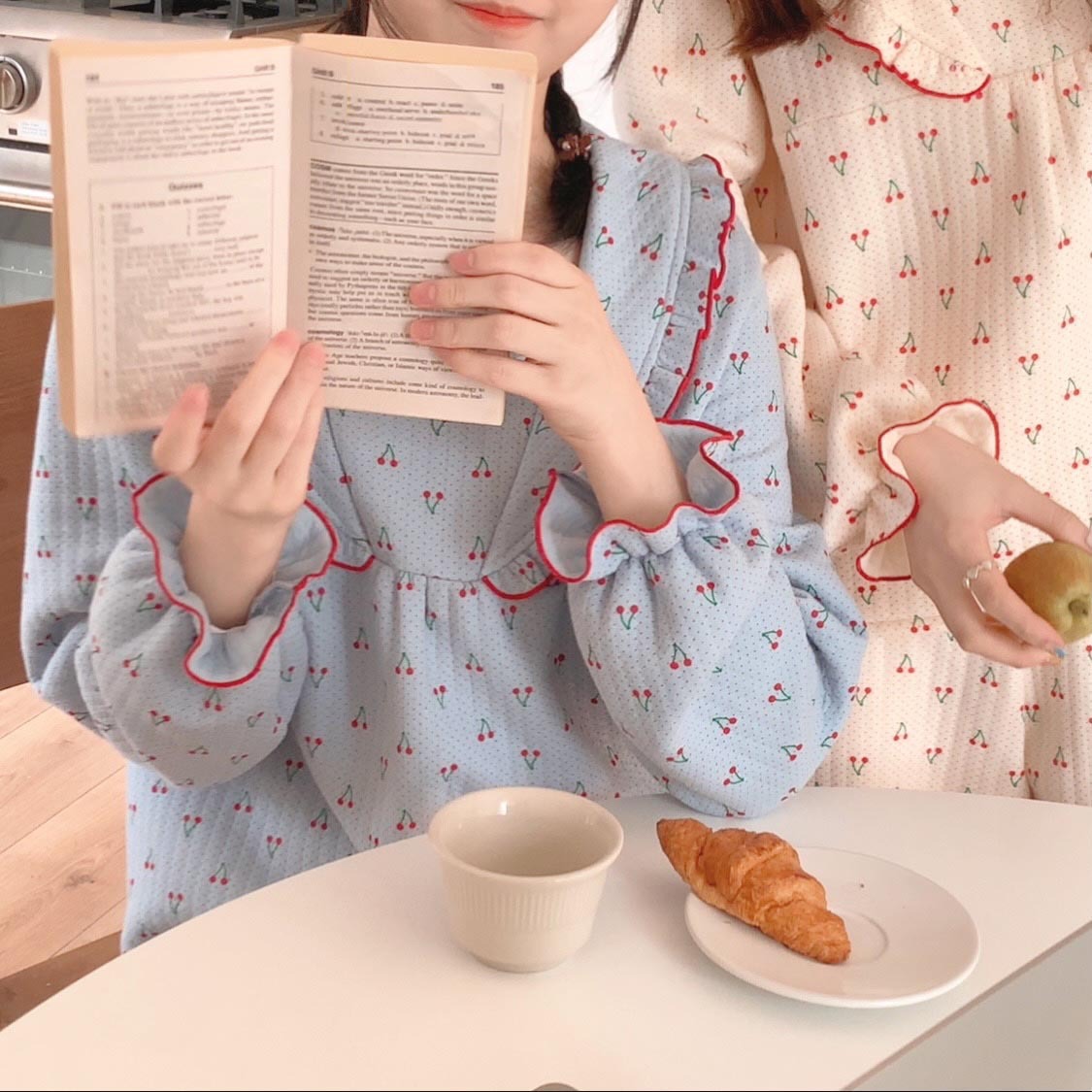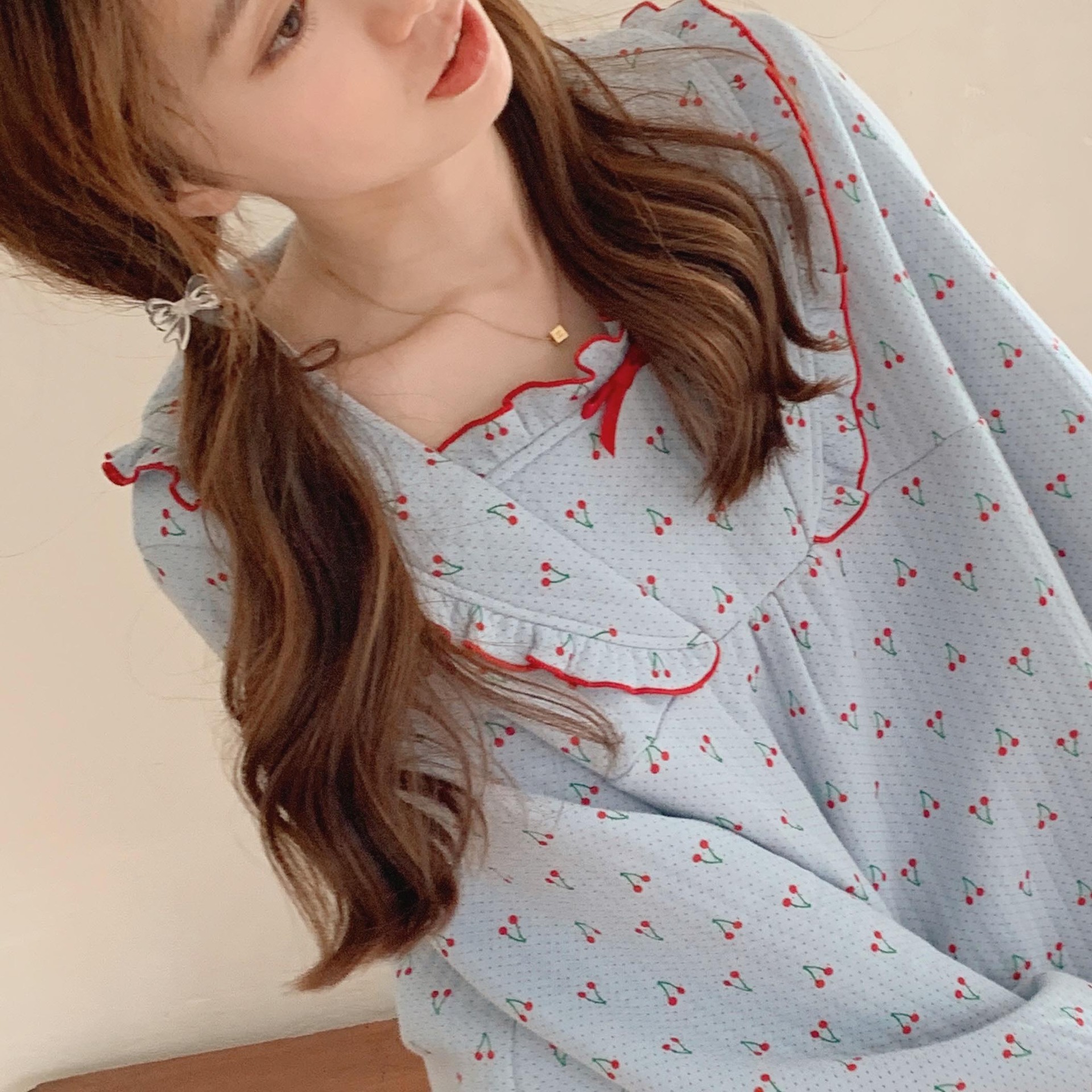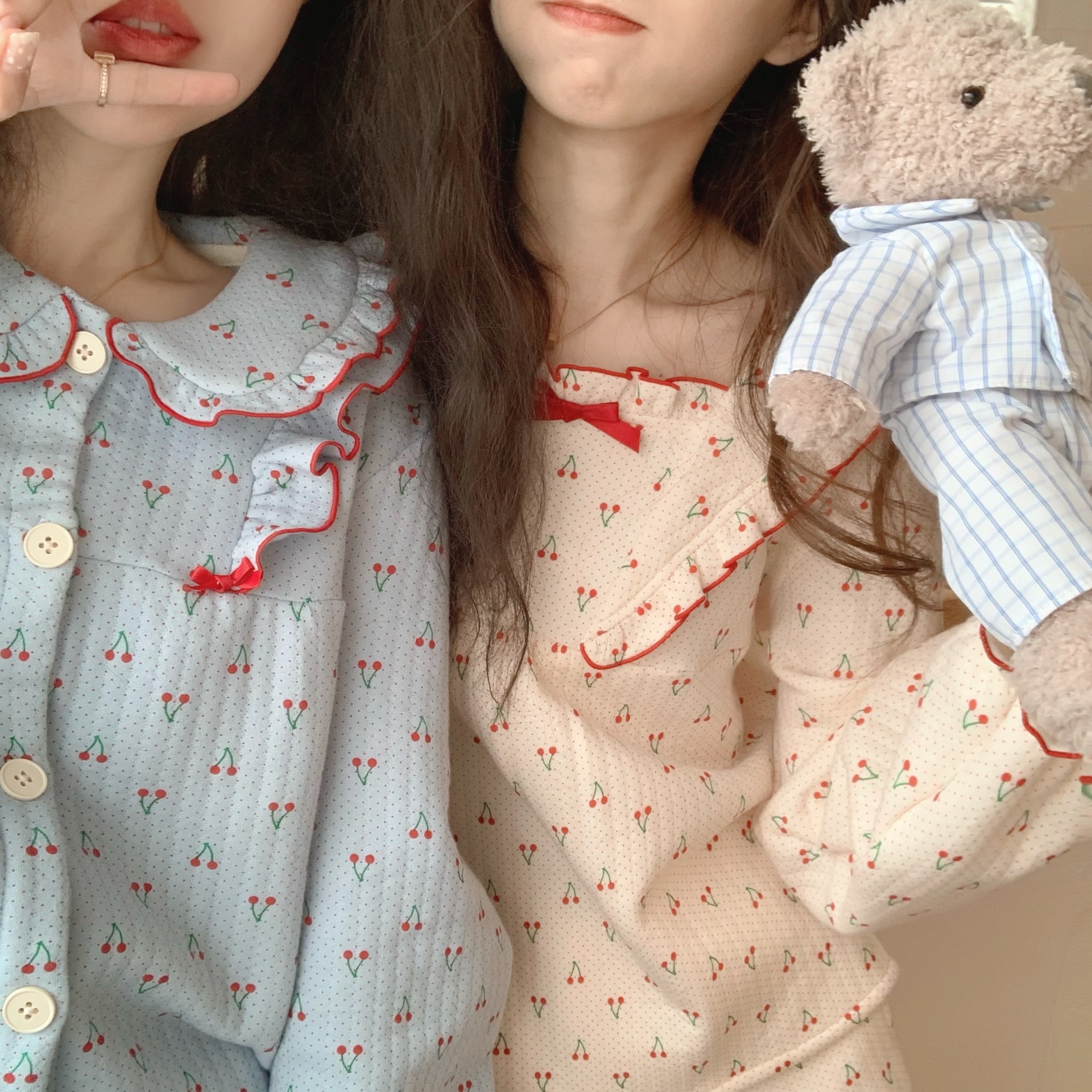 가을 잠옷 여성 가을과 겨울 긴팔 느슨한 봄과 가을 일본식 면 패딩 두꺼운 에어 코튼 홈 의류 투피스 세트