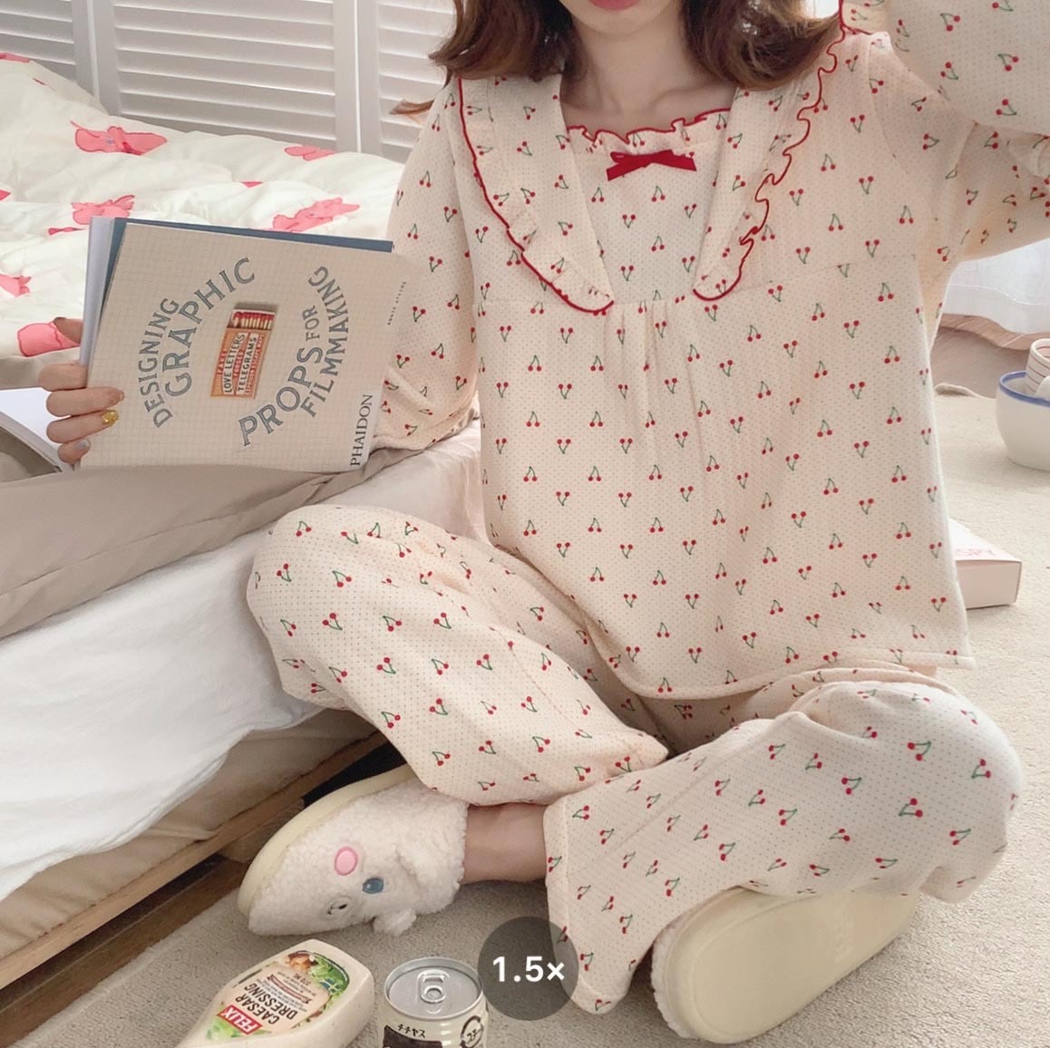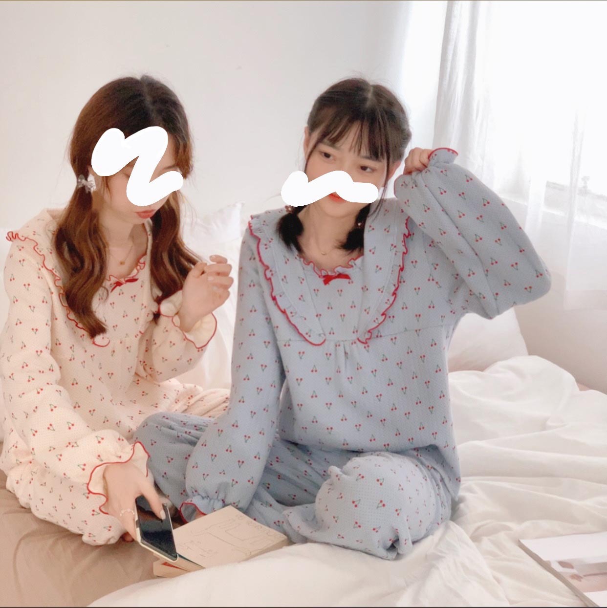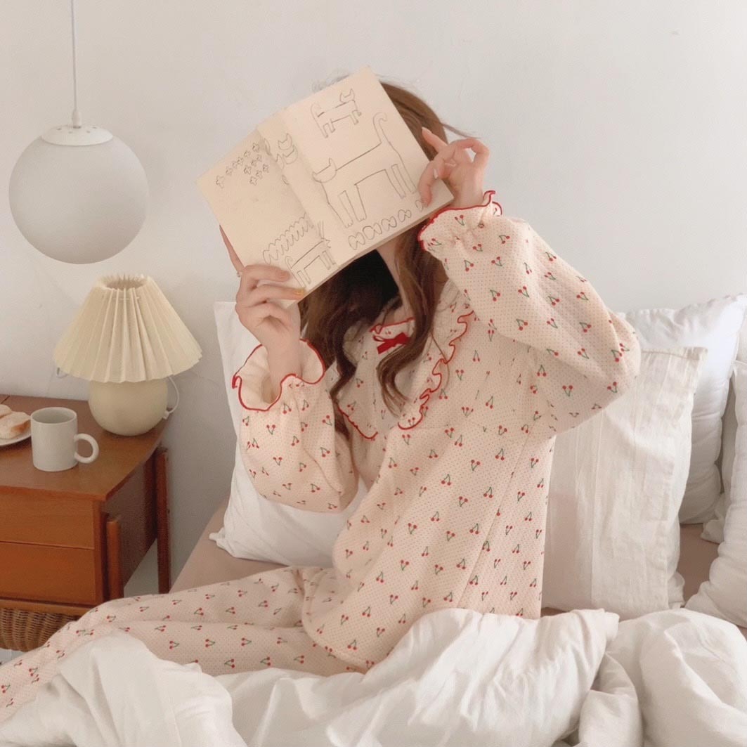 가을 잠옷 여성 가을과 겨울 긴팔 느슨한 봄과 가을 일본식 면 패딩 두꺼운 에어 코튼 홈 의류 투피스 세트스토어 가기