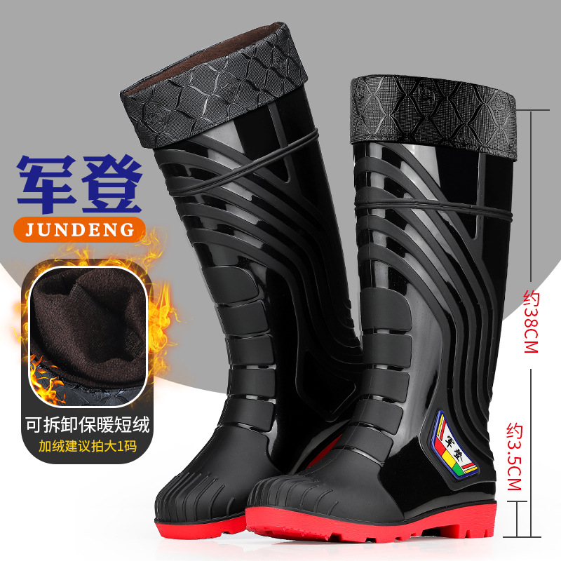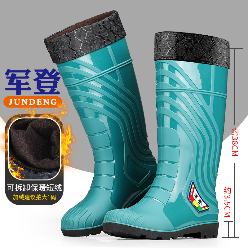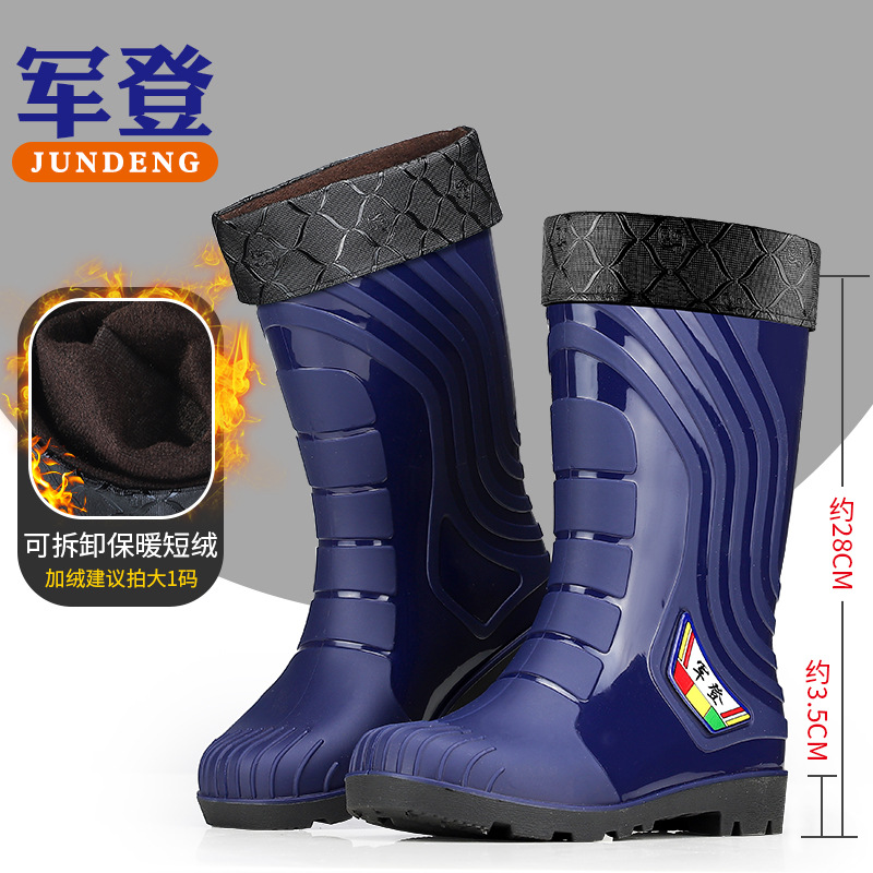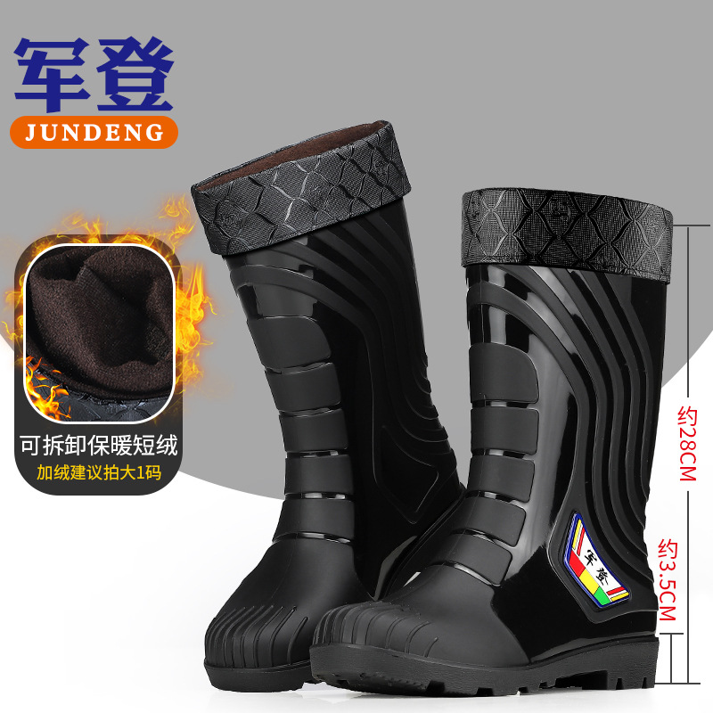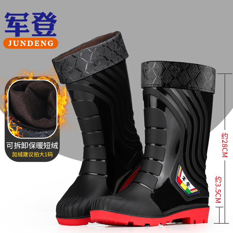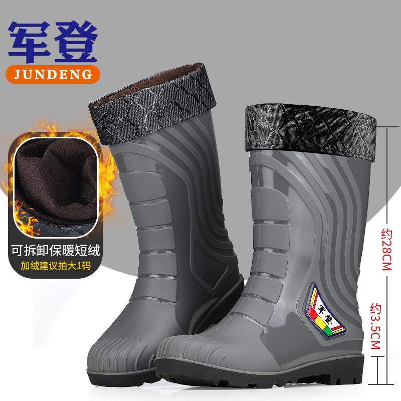 중간 배럴 고무 패션 레인 부츠 남자의 이탈리아 스타일 야외 기모 따뜻한 방수 내마모성 산 및 알칼리 방지 남성 레인 부츠