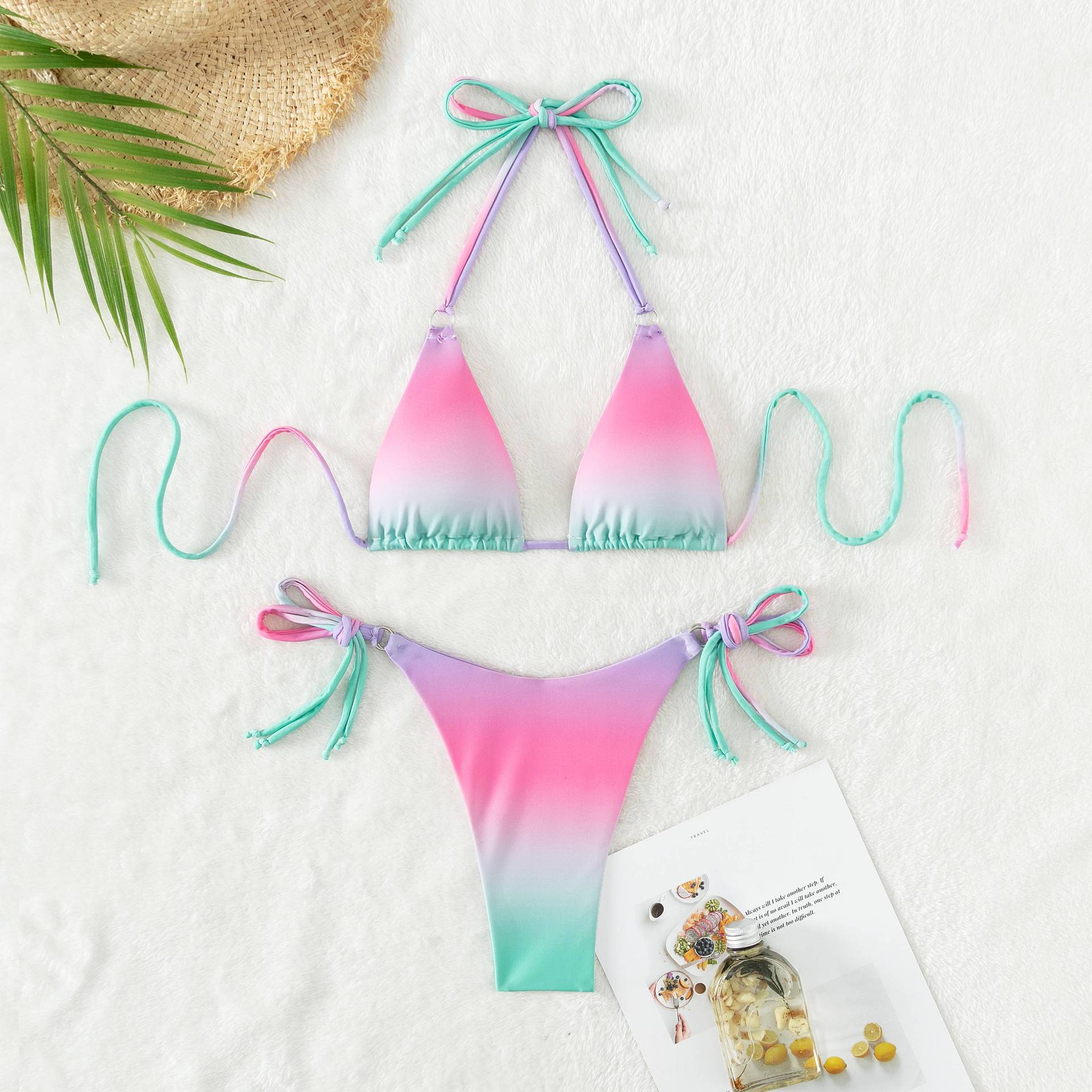 새로운 유럽과 미국의 국경 간 그라디언트 비키니 섹시 넥 백리스 미니 수영복 대외 무역 도매 수영복 3068스토어 가기