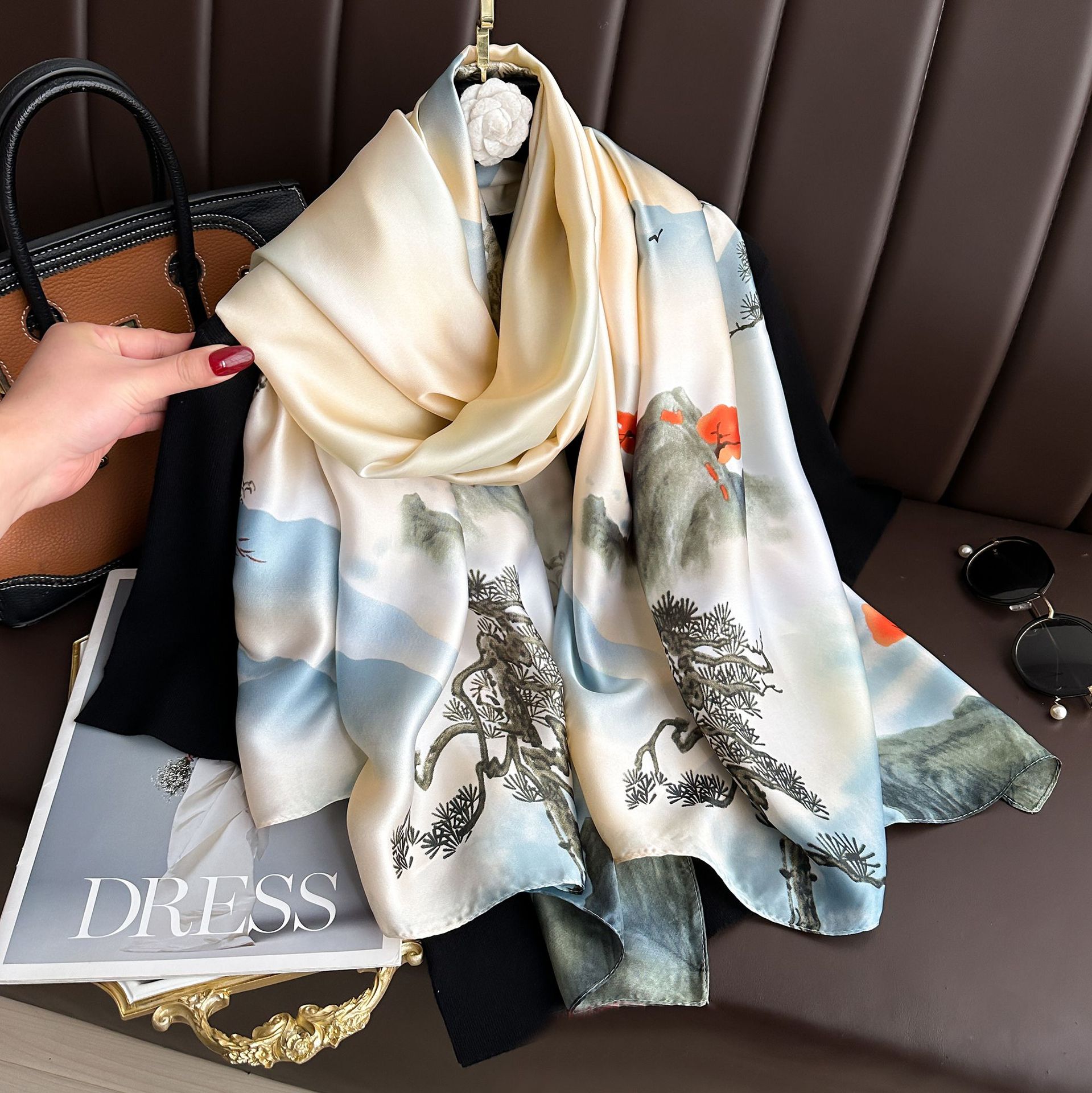 새로운 리진 단조 스카프 은행나무 잎 인쇄 새틴 스카프 여성의 우아한 실크 목도리 국경 스카프스토어 가기