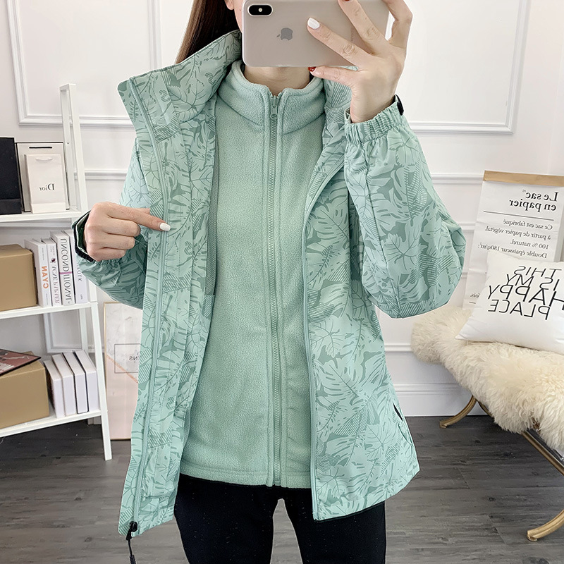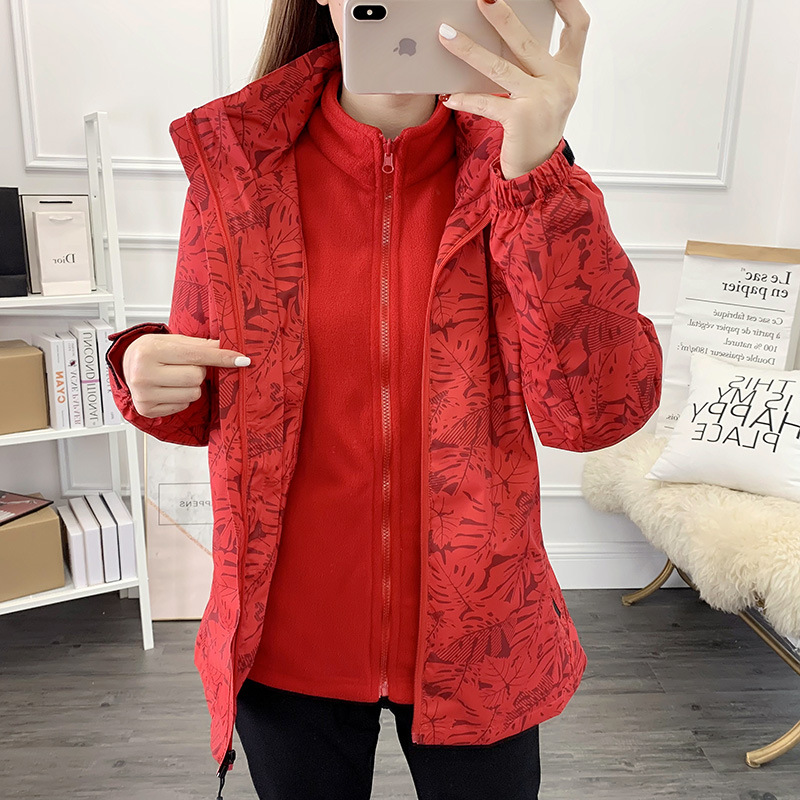 단풍잎 위장 재킷 남녀공용 3-in-1 탈부착 가능 투피스 재킷 방풍 플러스 벨벳 등산복 아웃도어