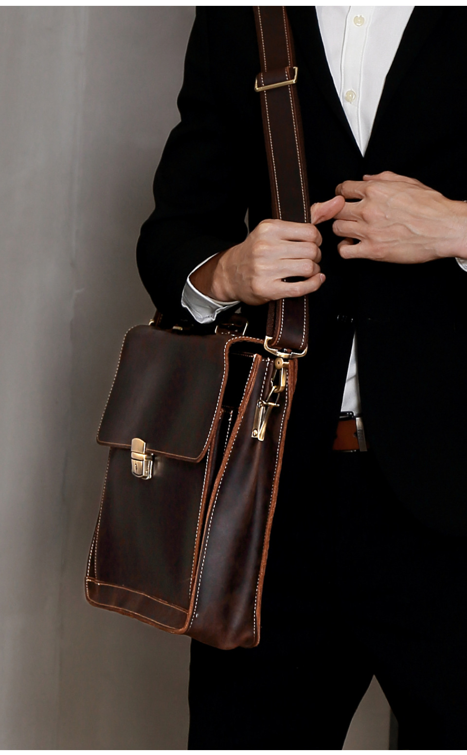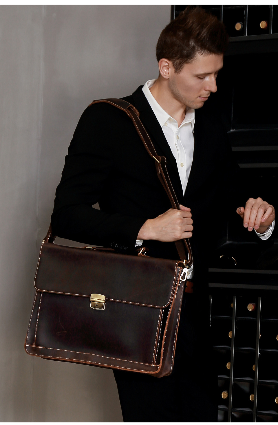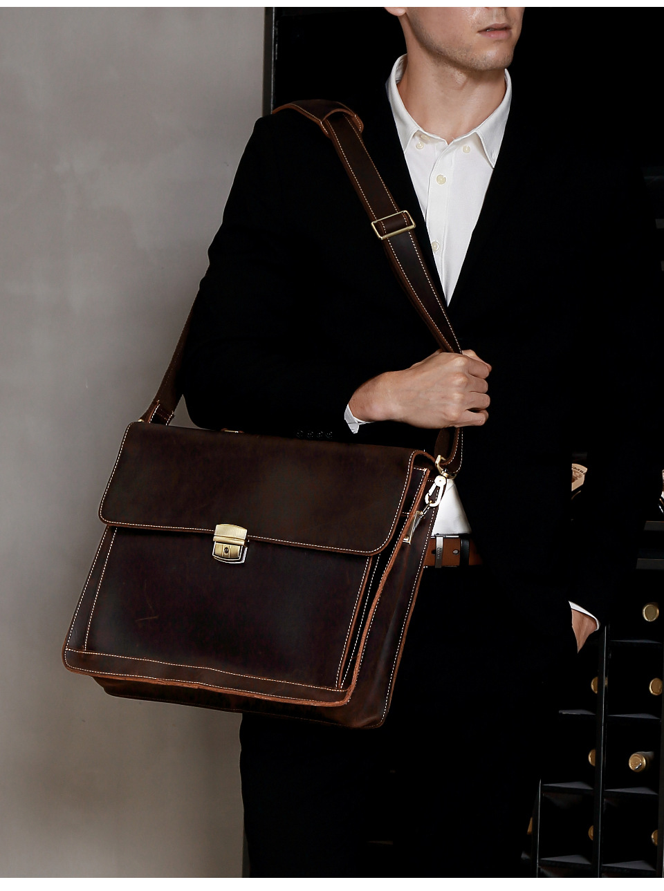 비즈니스 통근용 크로스백 서류가방 남성용 가방 크레이지호스 가죽 고급 남성용 핸드백 15.6inch 컴퓨터 가방스토어 가기