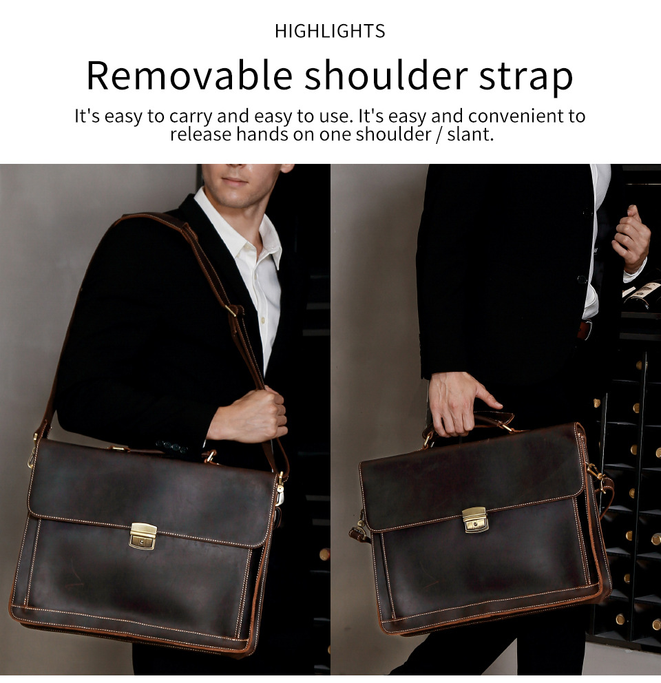 비즈니스 통근용 크로스백 서류가방 남성용 가방 크레이지호스 가죽 고급 남성용 핸드백 15.6inch 컴퓨터 가방