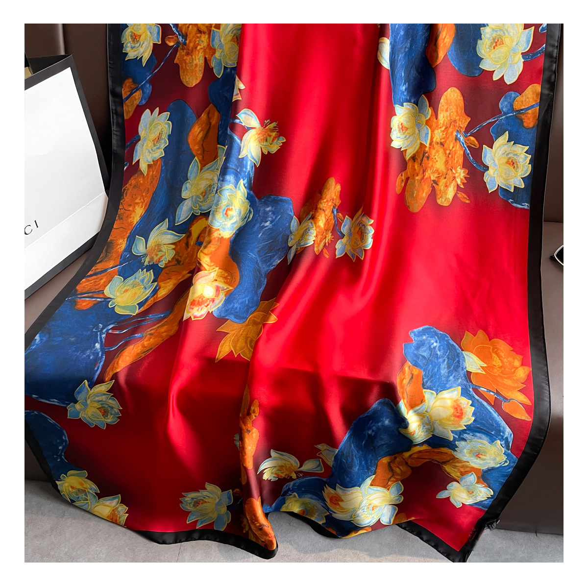 문학 복고풍 국가 스타일 연꽃 패턴 긴 실크 스카프 간단한 우아한 기질 여성의 사무실 숄 휴가 스카프