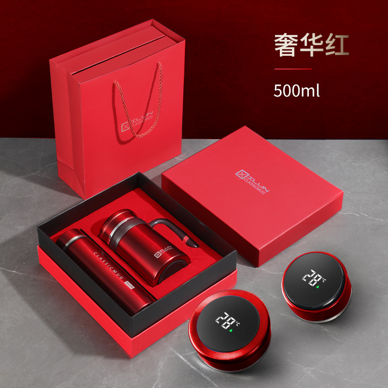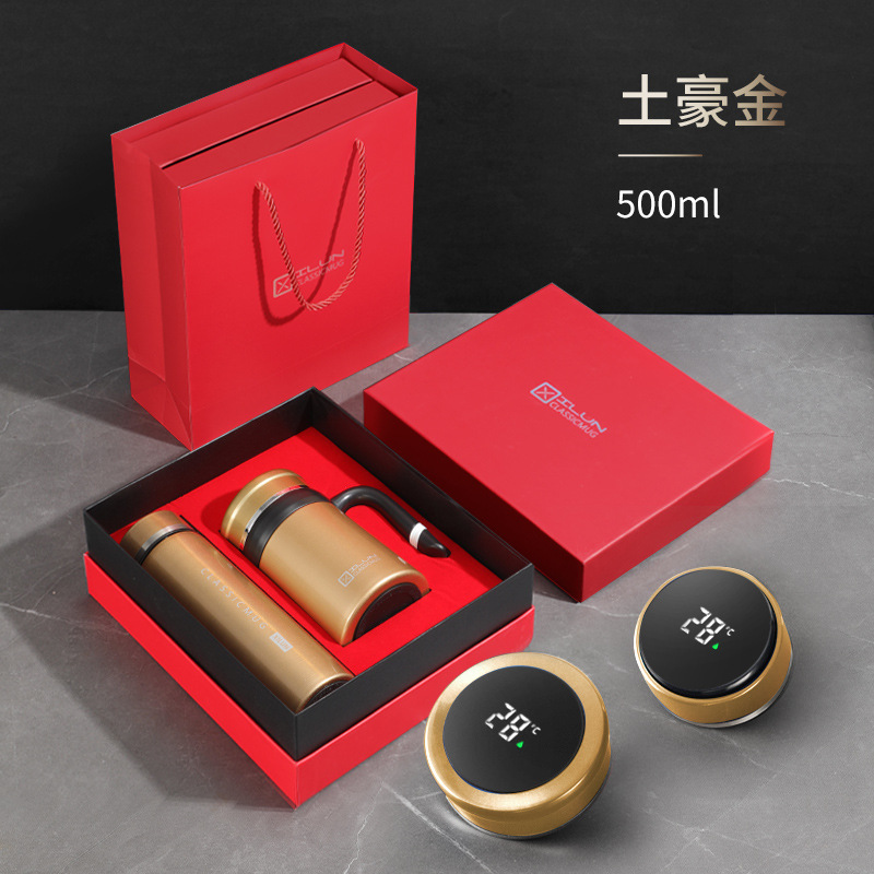 보온병 컵 사무실 컵 비즈니스 선물 상자 세트 손잡이가있는 고급 선물 316 스마트 물 컵 조각 인쇄 광고스토어 가기