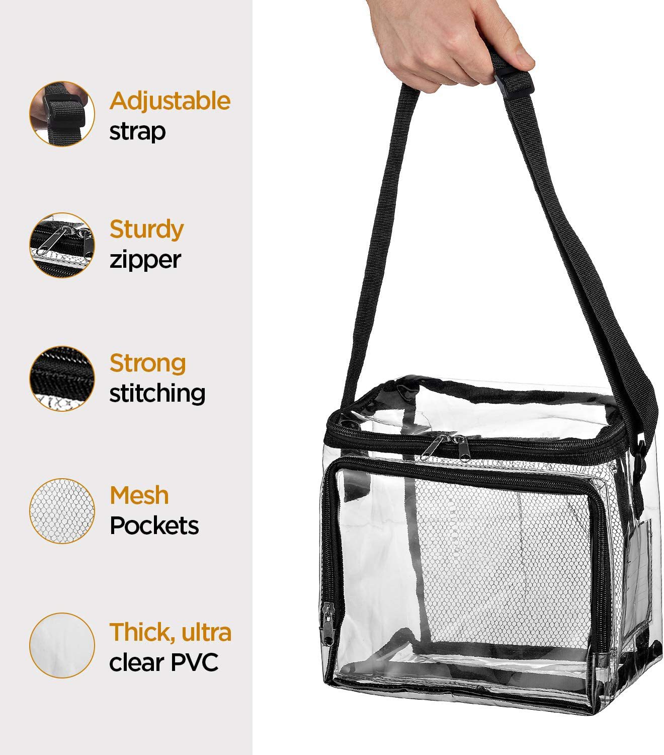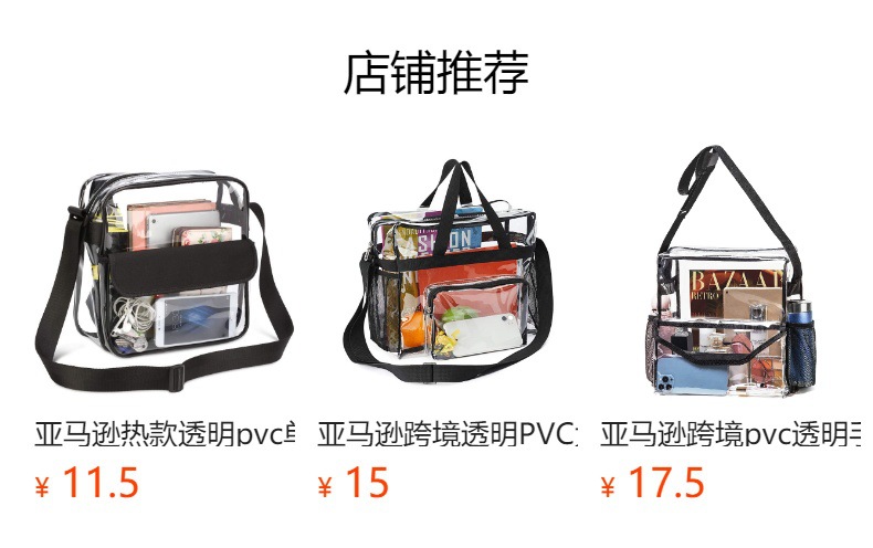 아마존 크로스 보더 PVC 투명 점심 가방 조정 가능한 스트랩 전면 보관함 메쉬 포켓 야외 점심 가방스토어 가기