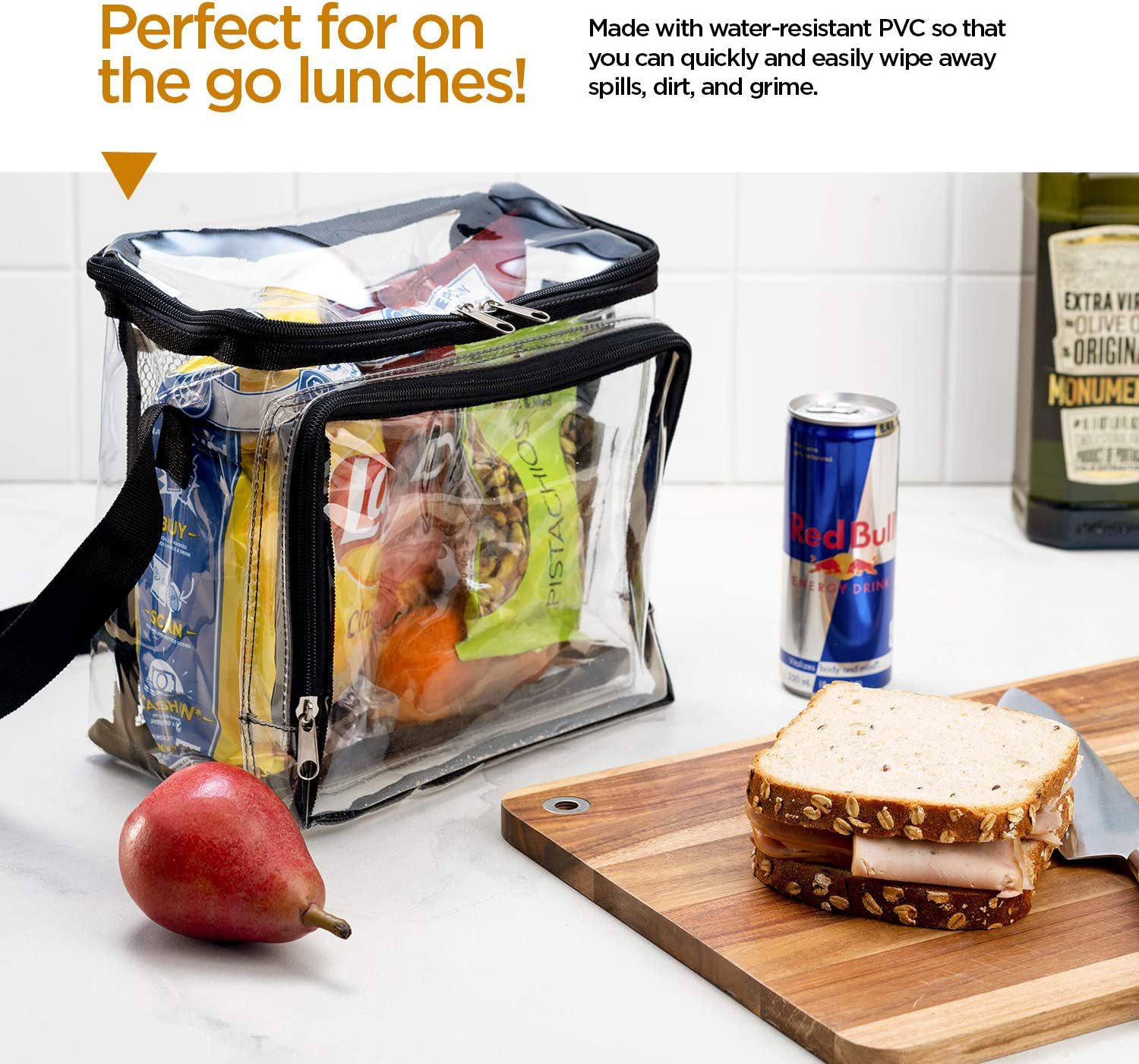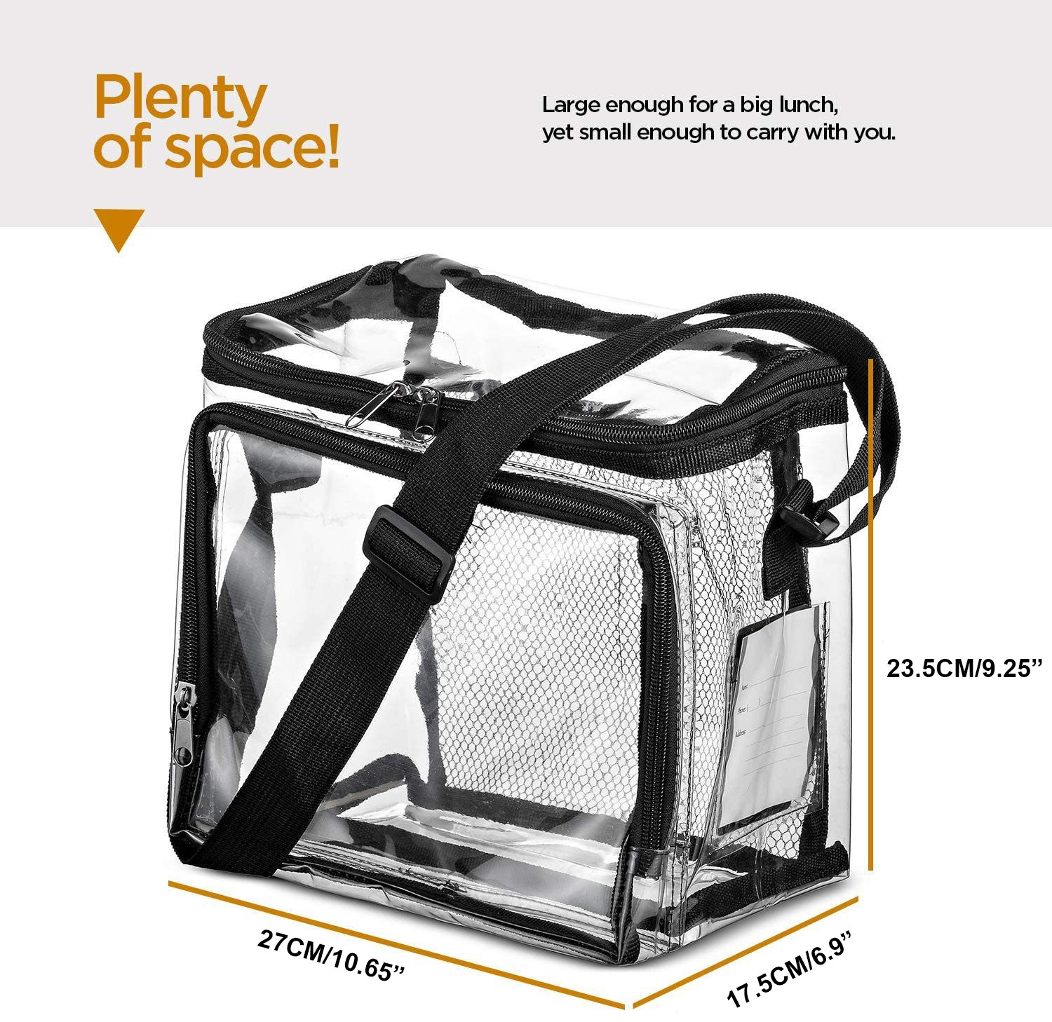 아마존 크로스 보더 PVC 투명 점심 가방 조정 가능한 스트랩 전면 보관함 메쉬 포켓 야외 점심 가방