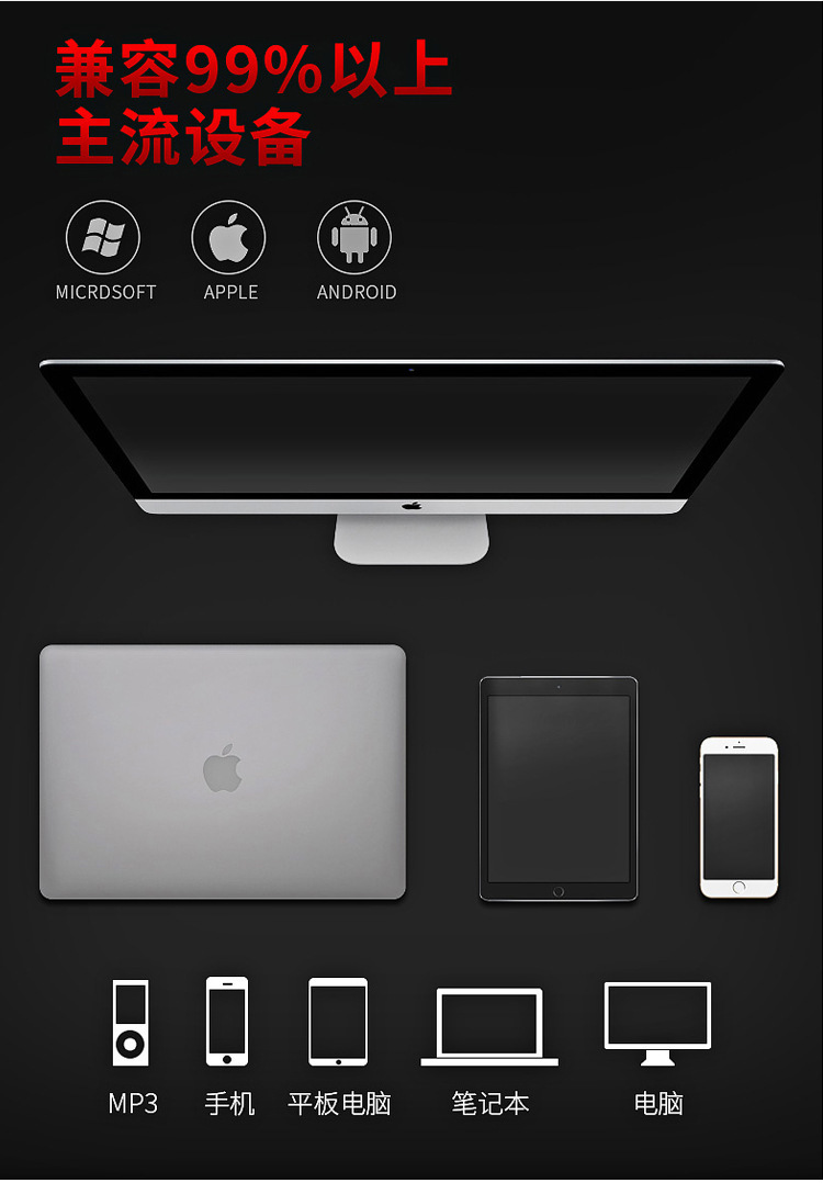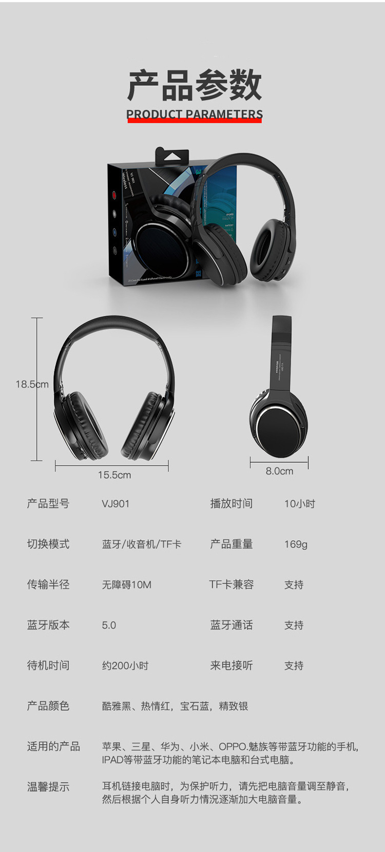 功能介绍:支持立体声蓝牙听音乐、接听拒听电话、TF/AUX/FM
