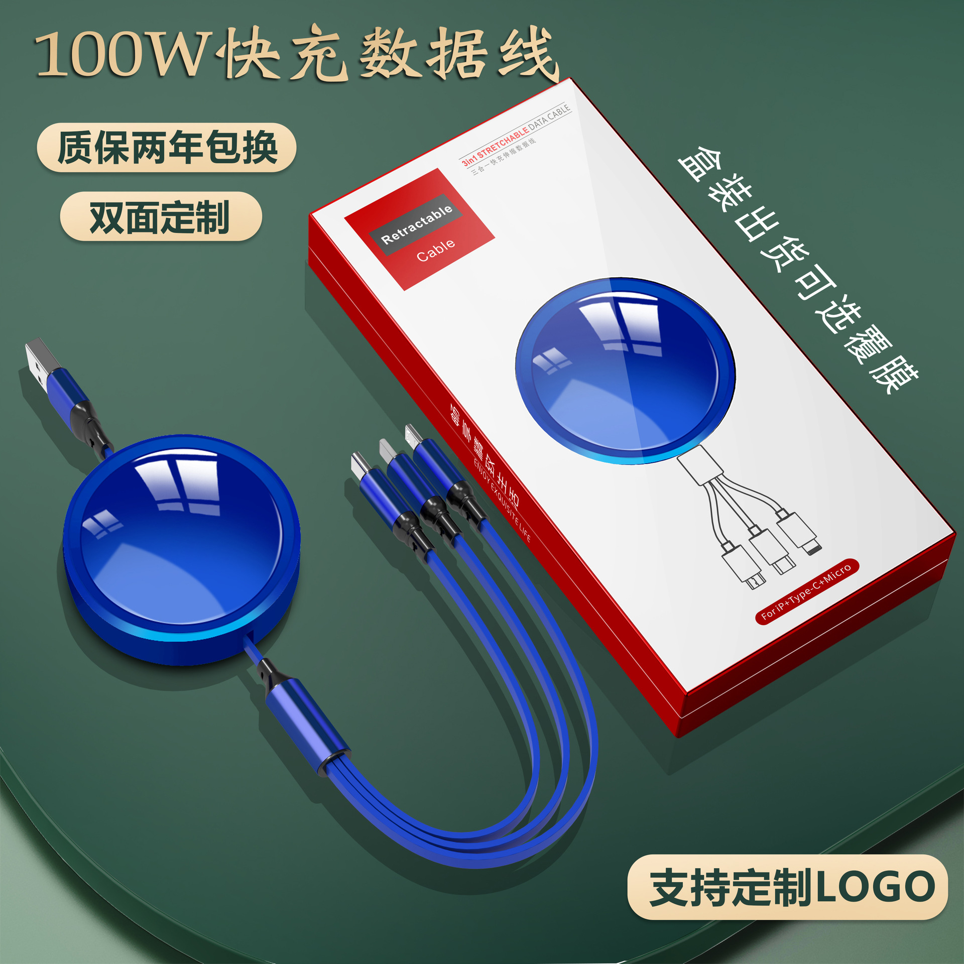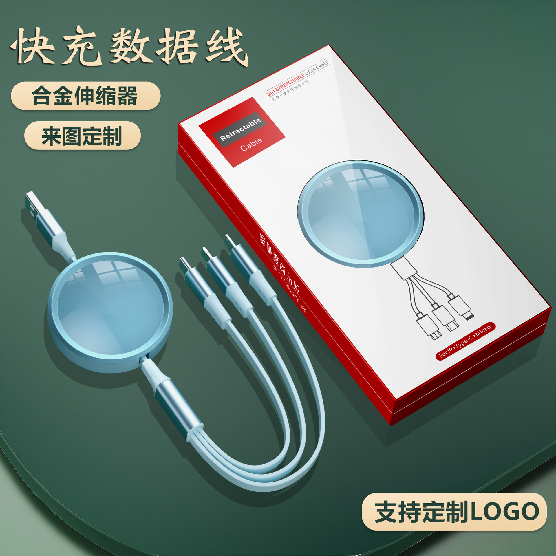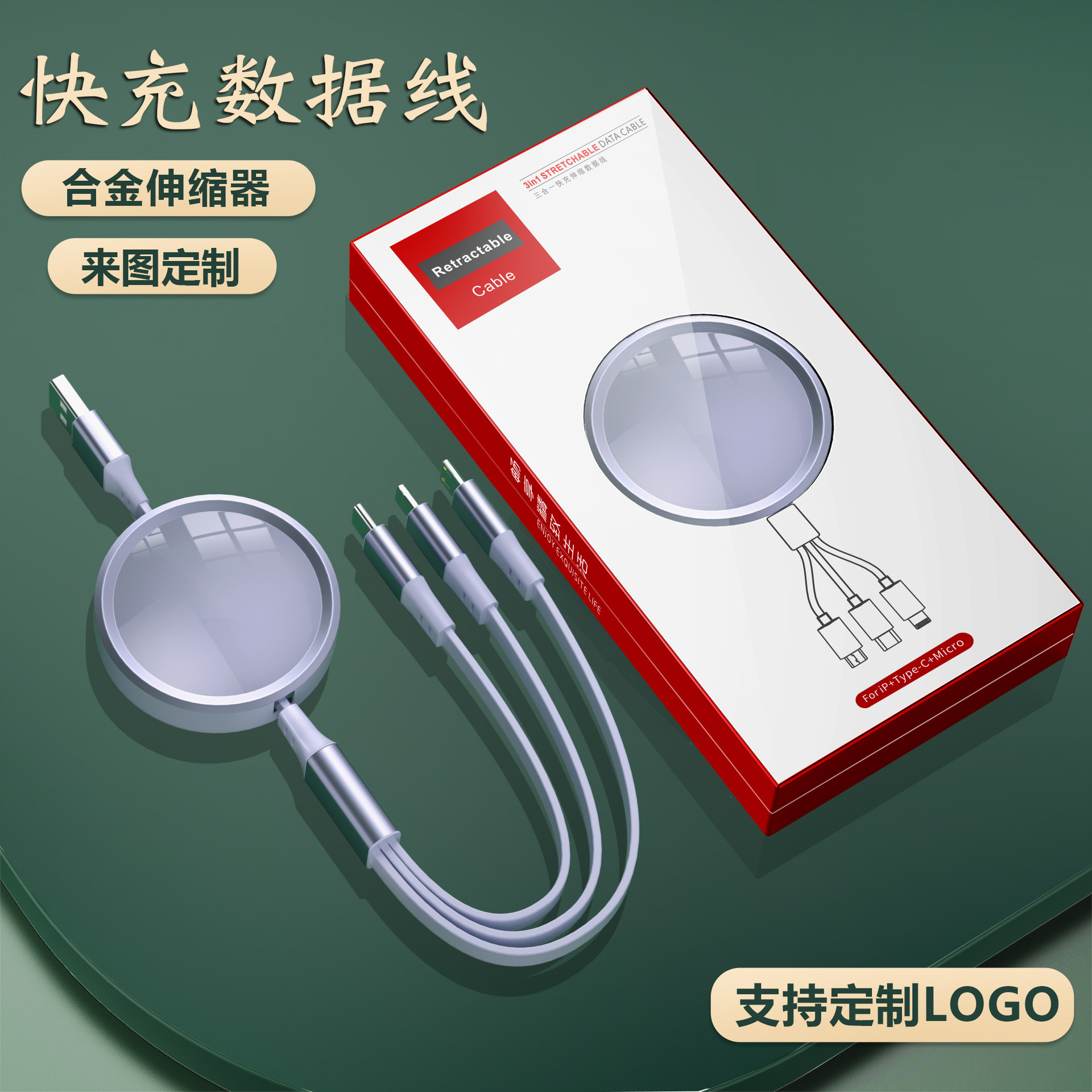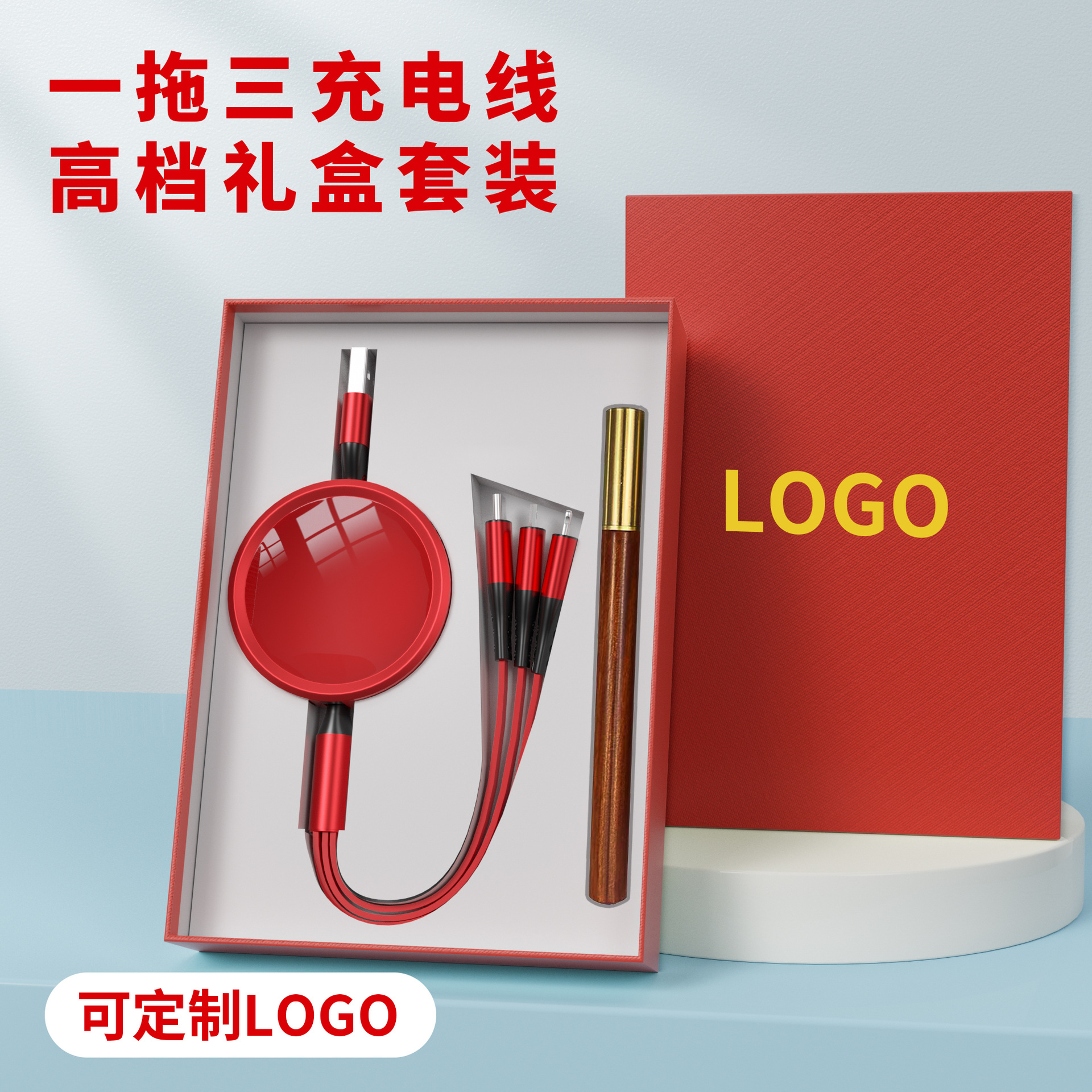 기업 맞춤형 로고 3-in-1 고속 충전 데이터 케이블, 독창적인 기념품, 뷰티업계 비즈니스 소형 선물 세트