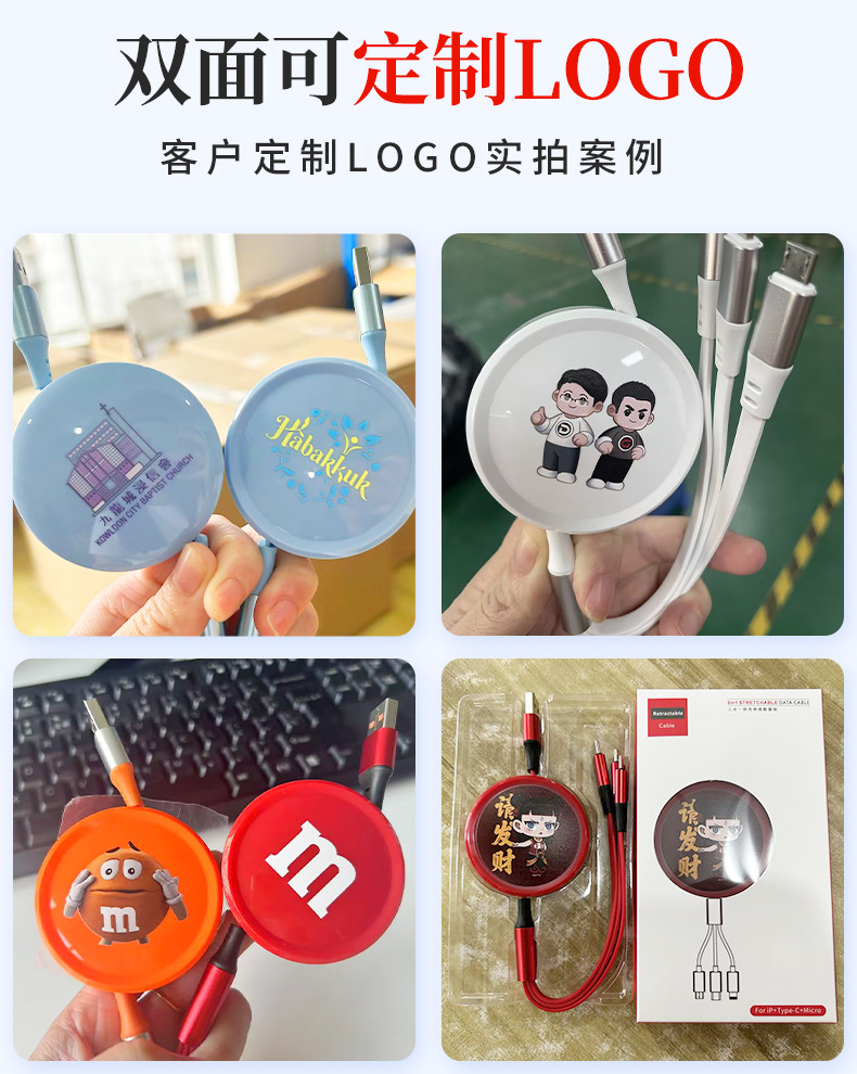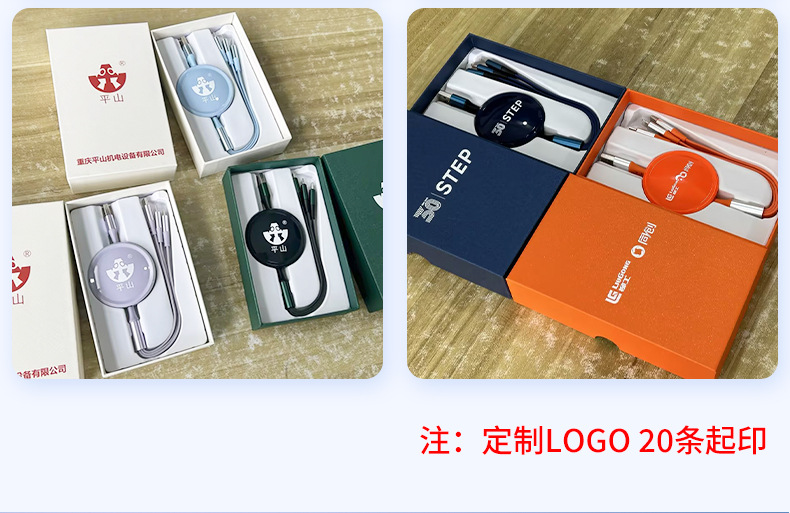 기업 맞춤형 로고 3-in-1 고속 충전 데이터 케이블, 독창적인 기념품, 뷰티업계 비즈니스 소형 선물 세트스토어 가기