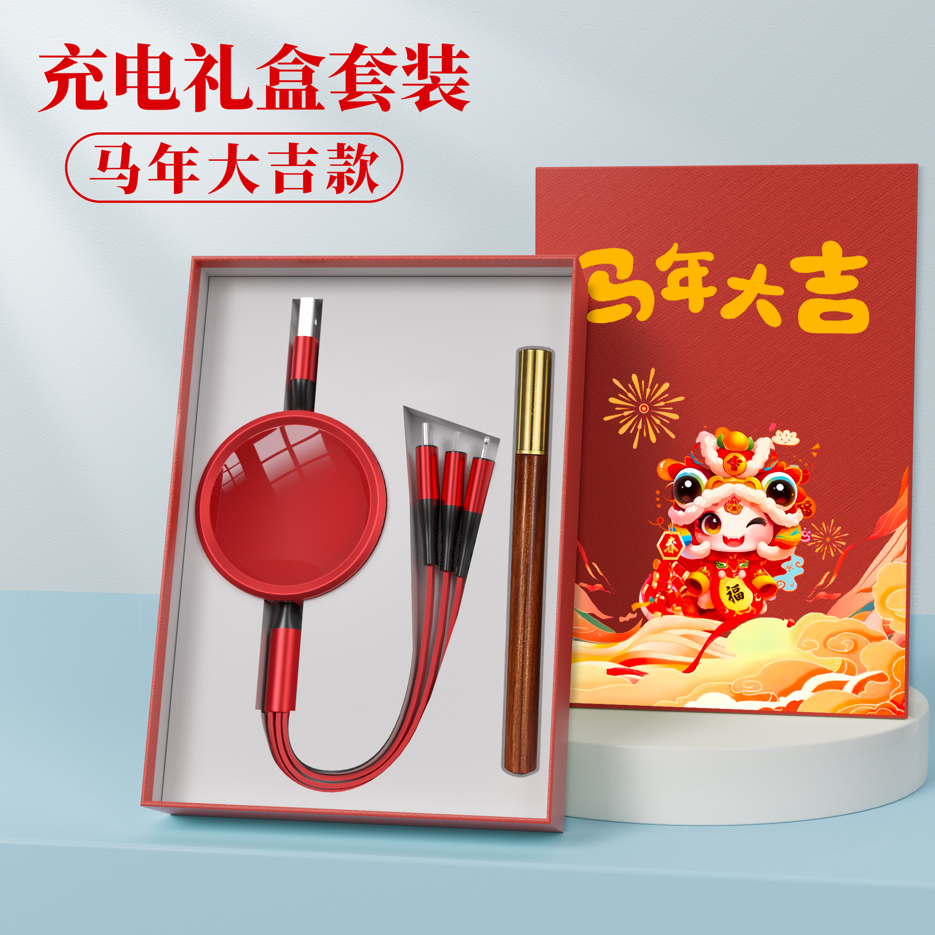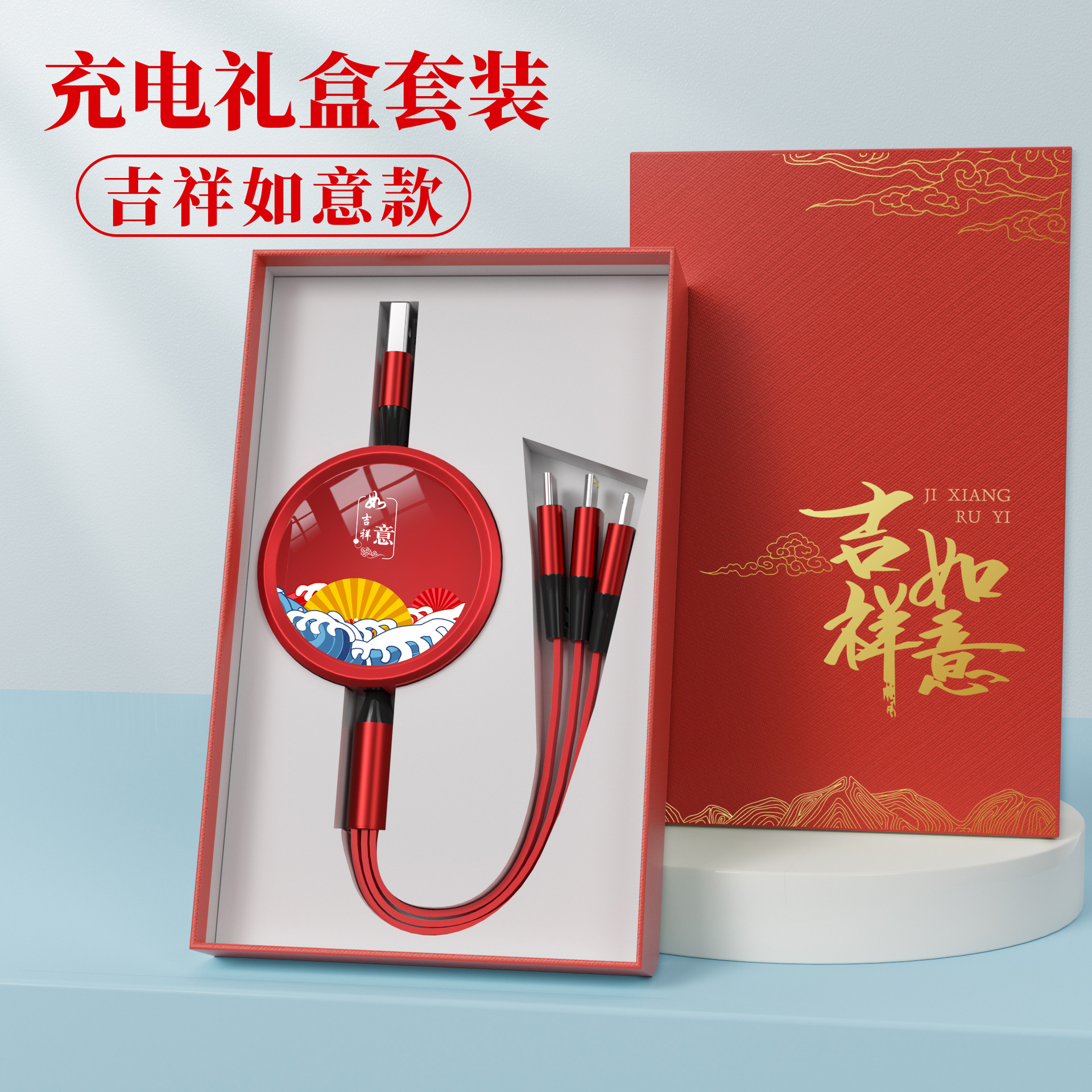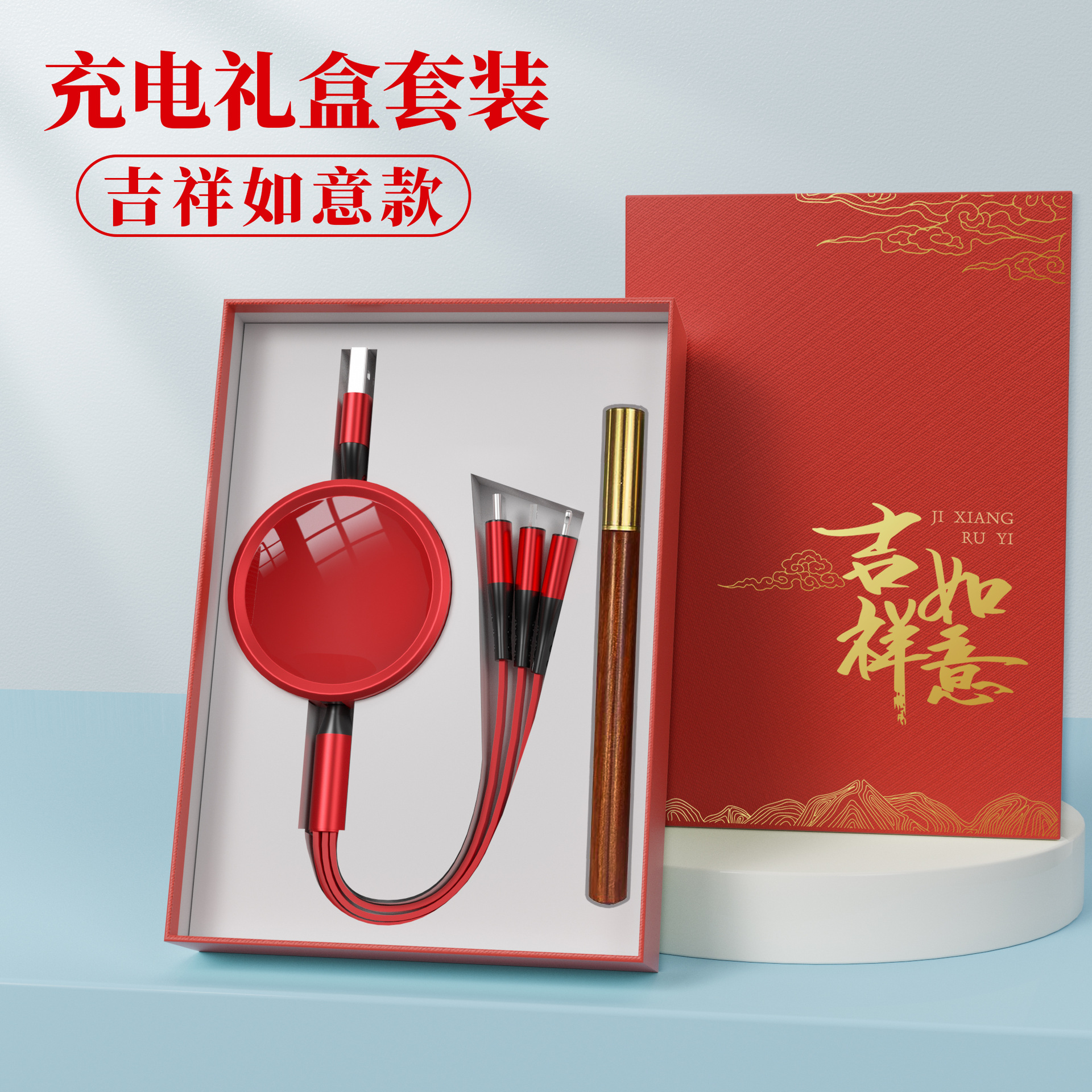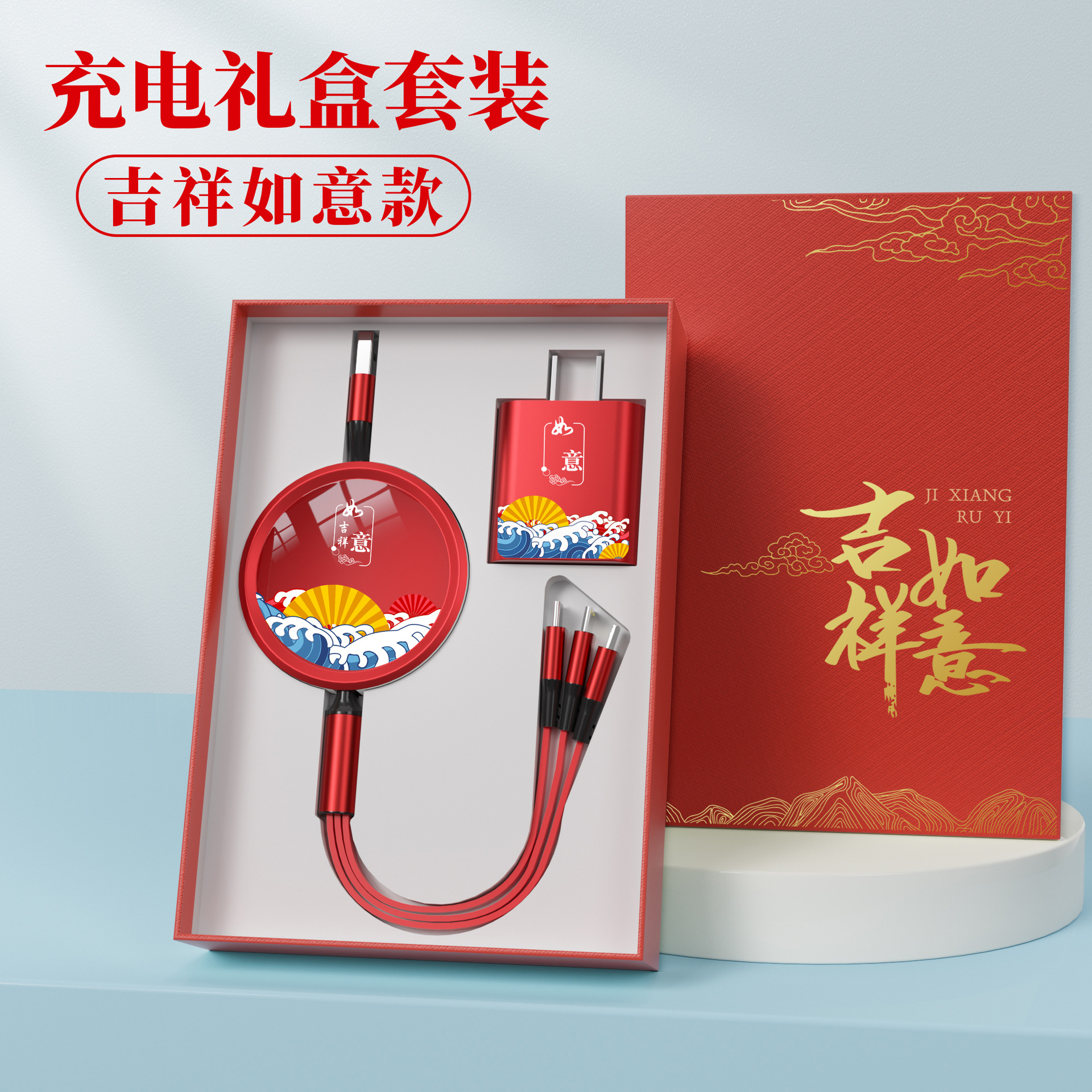 • [빨간색 충전 케이블 + 충전 헤드] 상서로운 루이 선물 상자★인쇄 가능한 패턴 로고