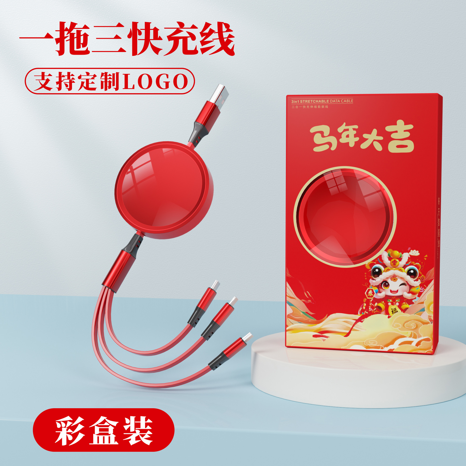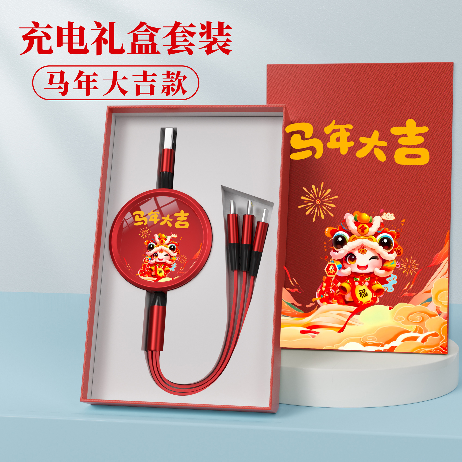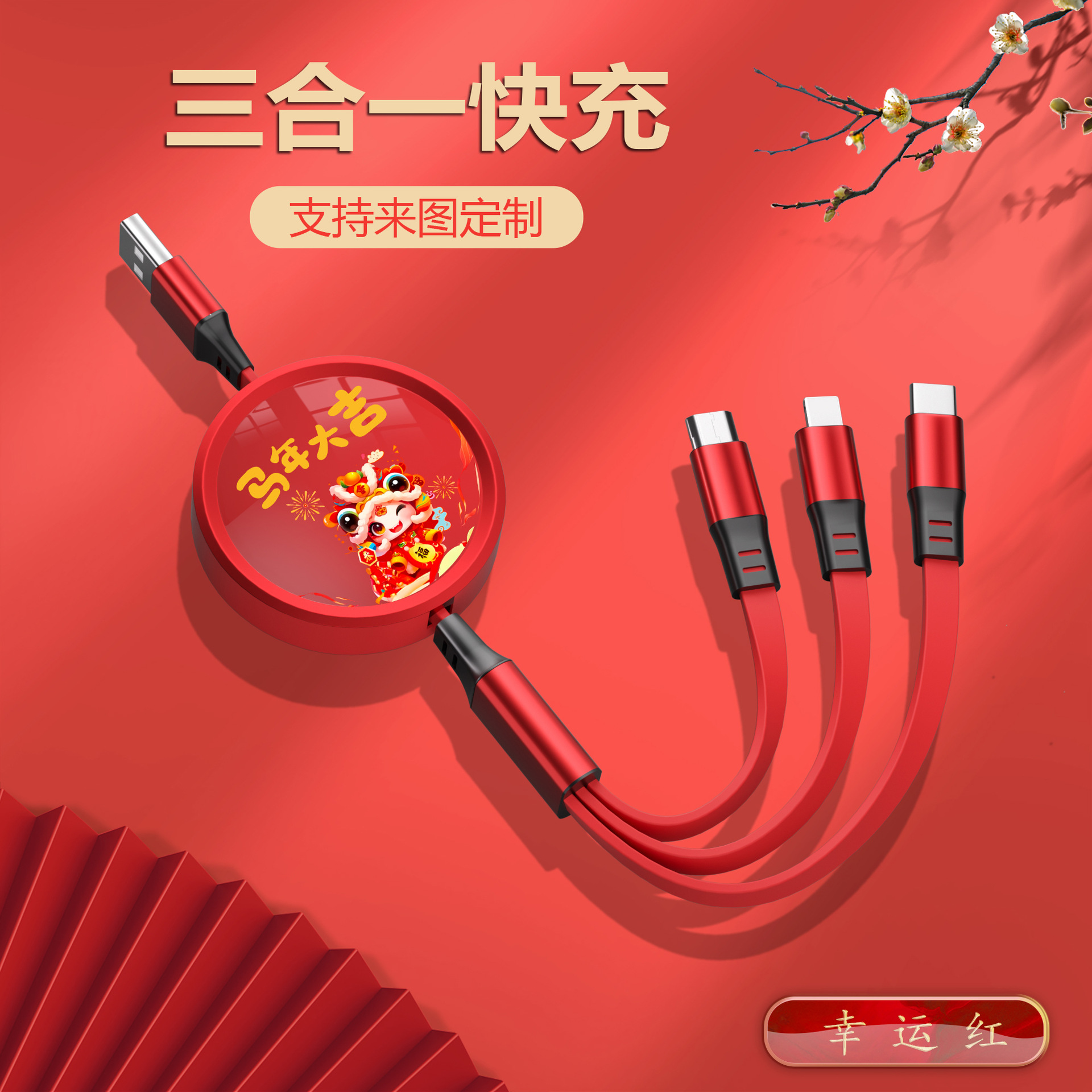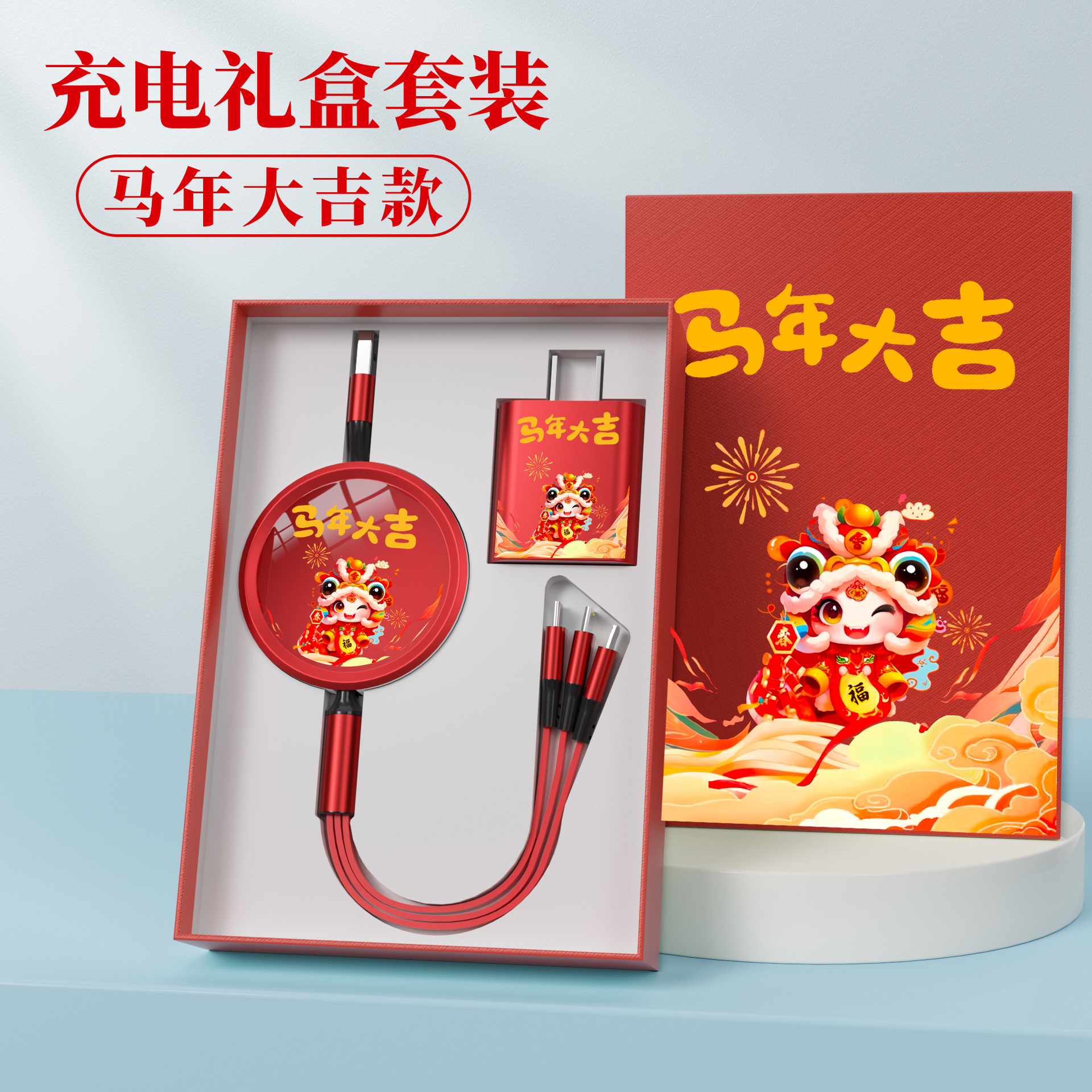 • [빨간색 충전 케이블 + 충전 헤드] 상서로운 루이 선물 상자★인쇄 가능한 패턴 로고