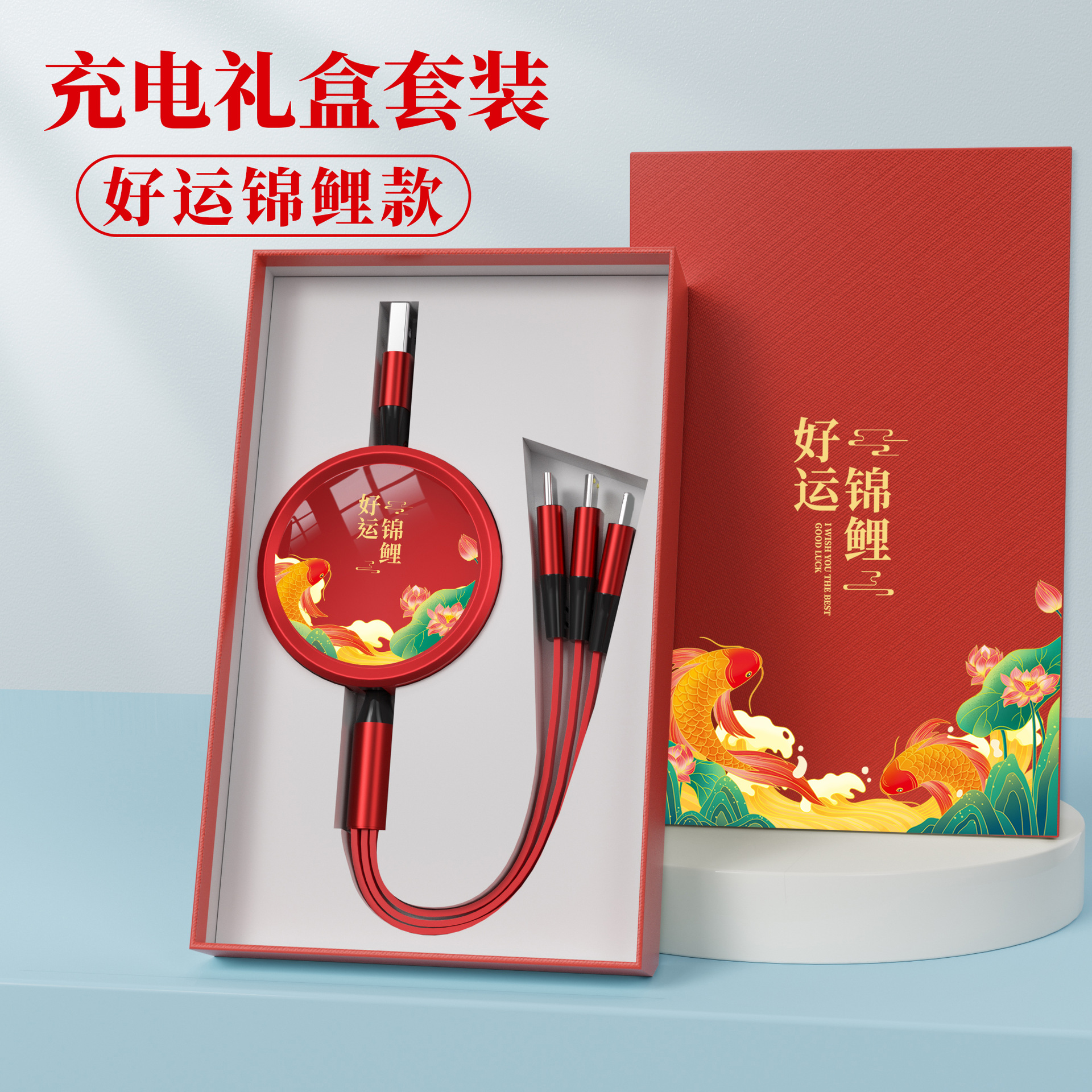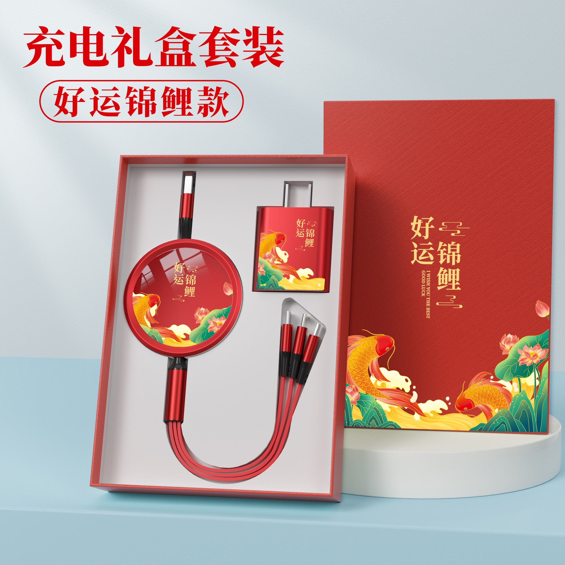 • [빨간색 충전케이블 + 충전헤드] 행운을 빌어요 잉어 선물상자★인쇄 가능한 패턴 로고