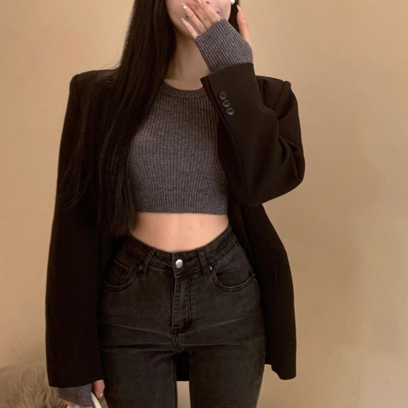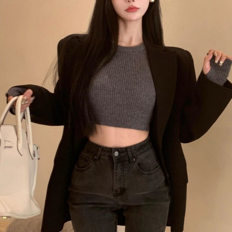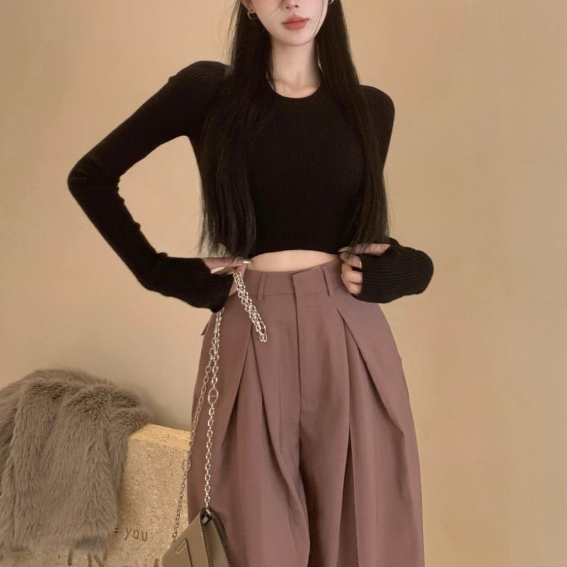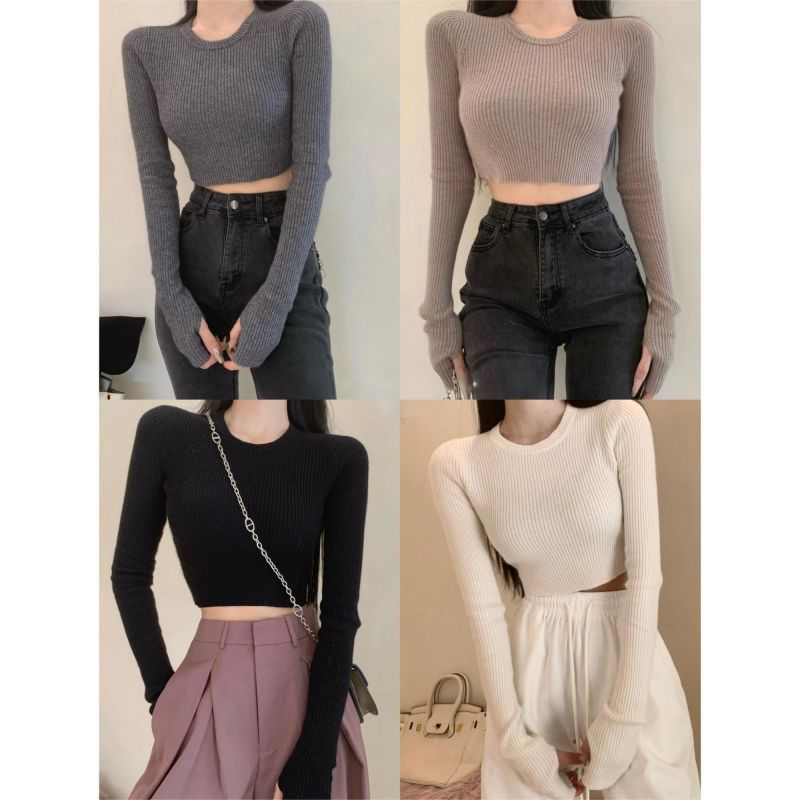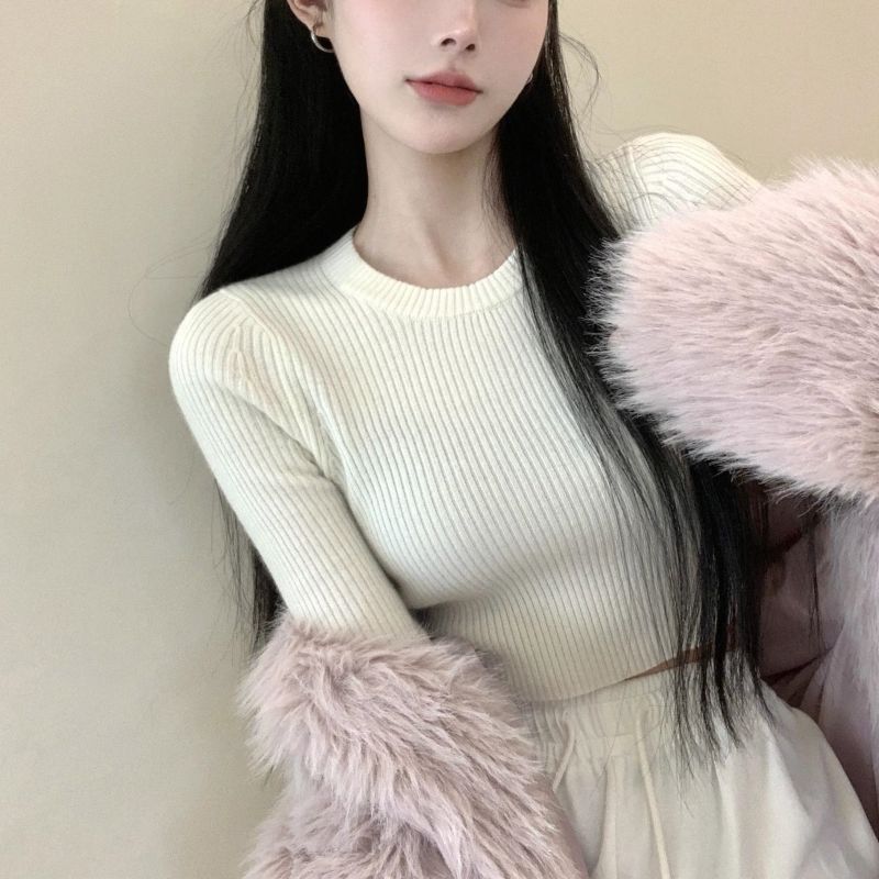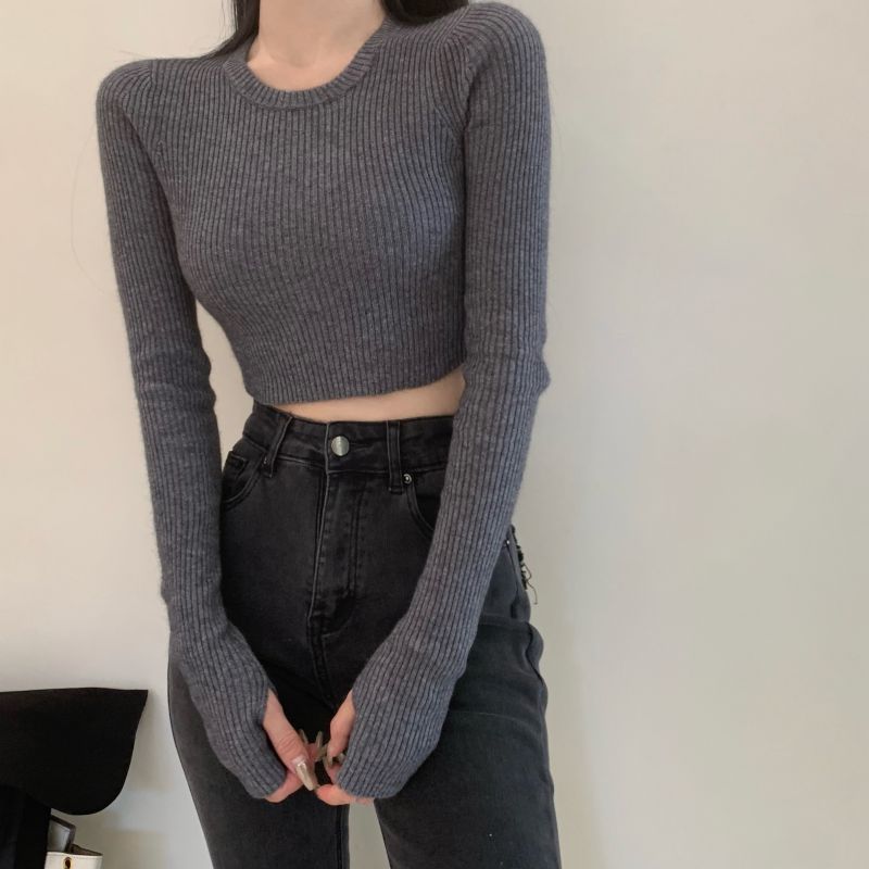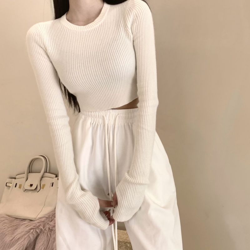 베이스 셔츠 여성용 스웨터 캐주얼 모든 매치 라운드 넥 여성용 스웨터 슬림핏 솔리드 컬러 쇼트 탑 여성 의류스토어 가기