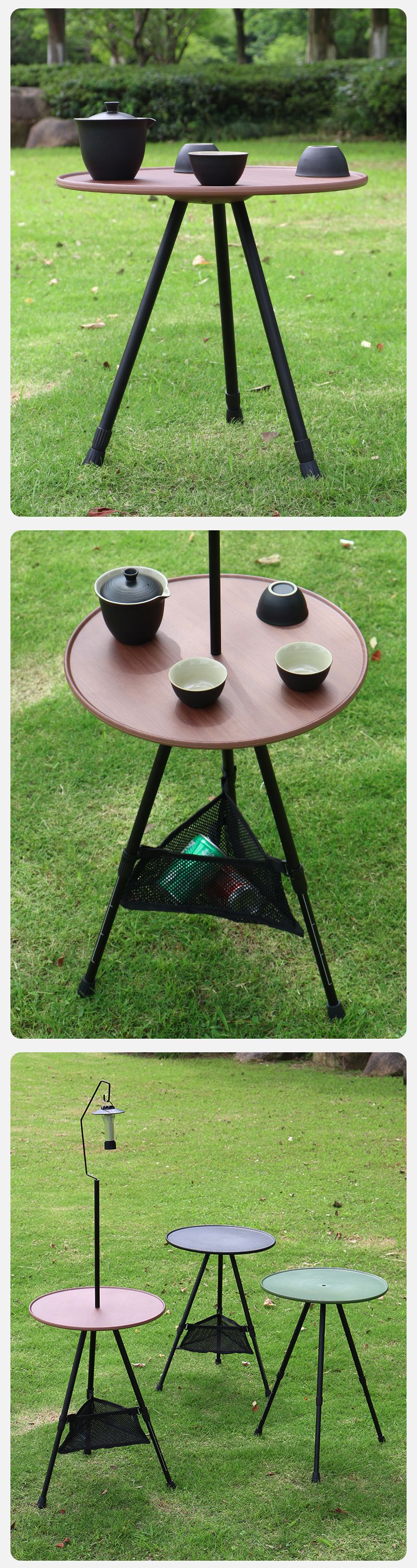 야외 다기능 알루미늄 합금 삼각형 작은 라운드 테이블 휴대용 캠핑 저장 테이블 캠핑 접이식 테이블과 의자 세트 도매스토어 가기