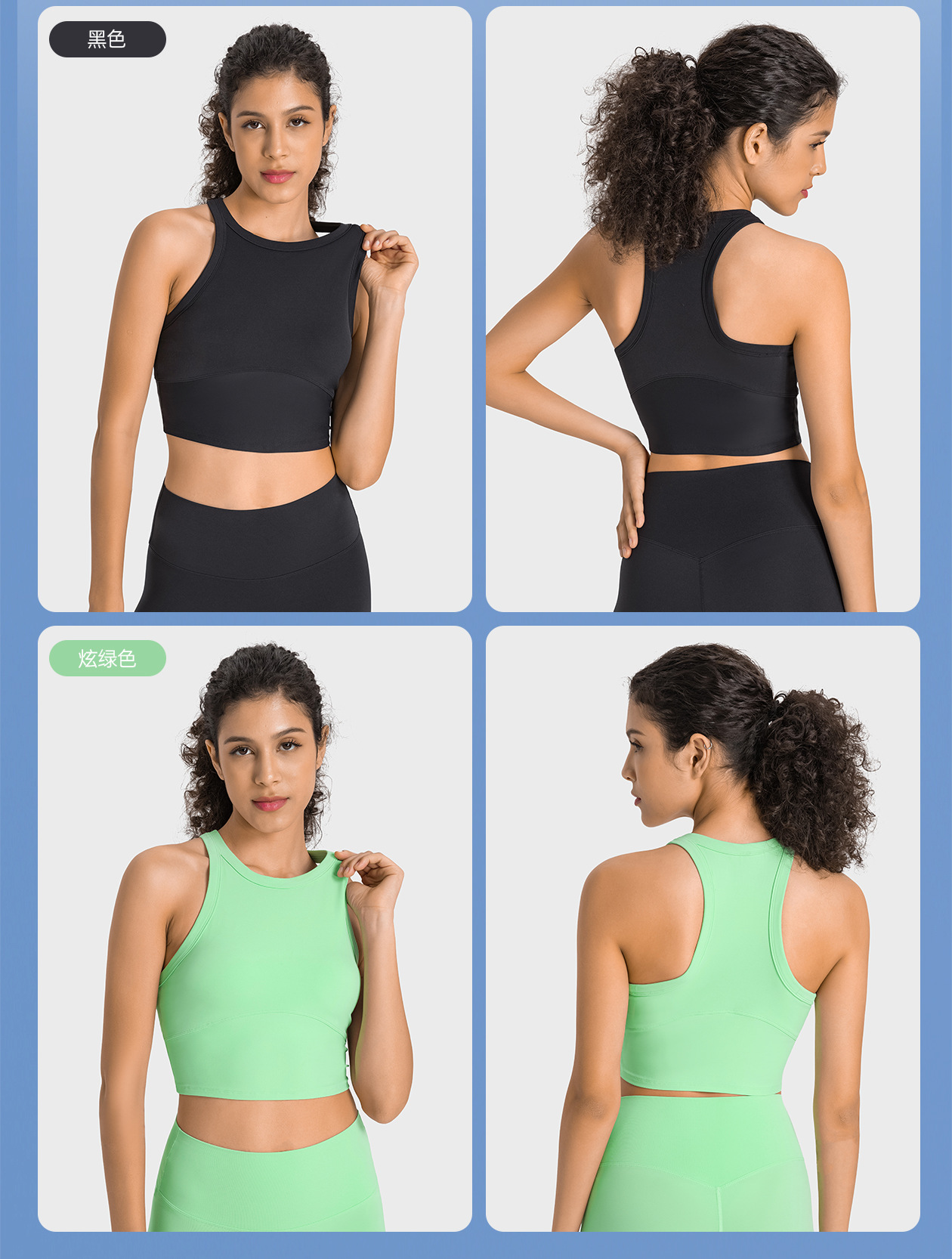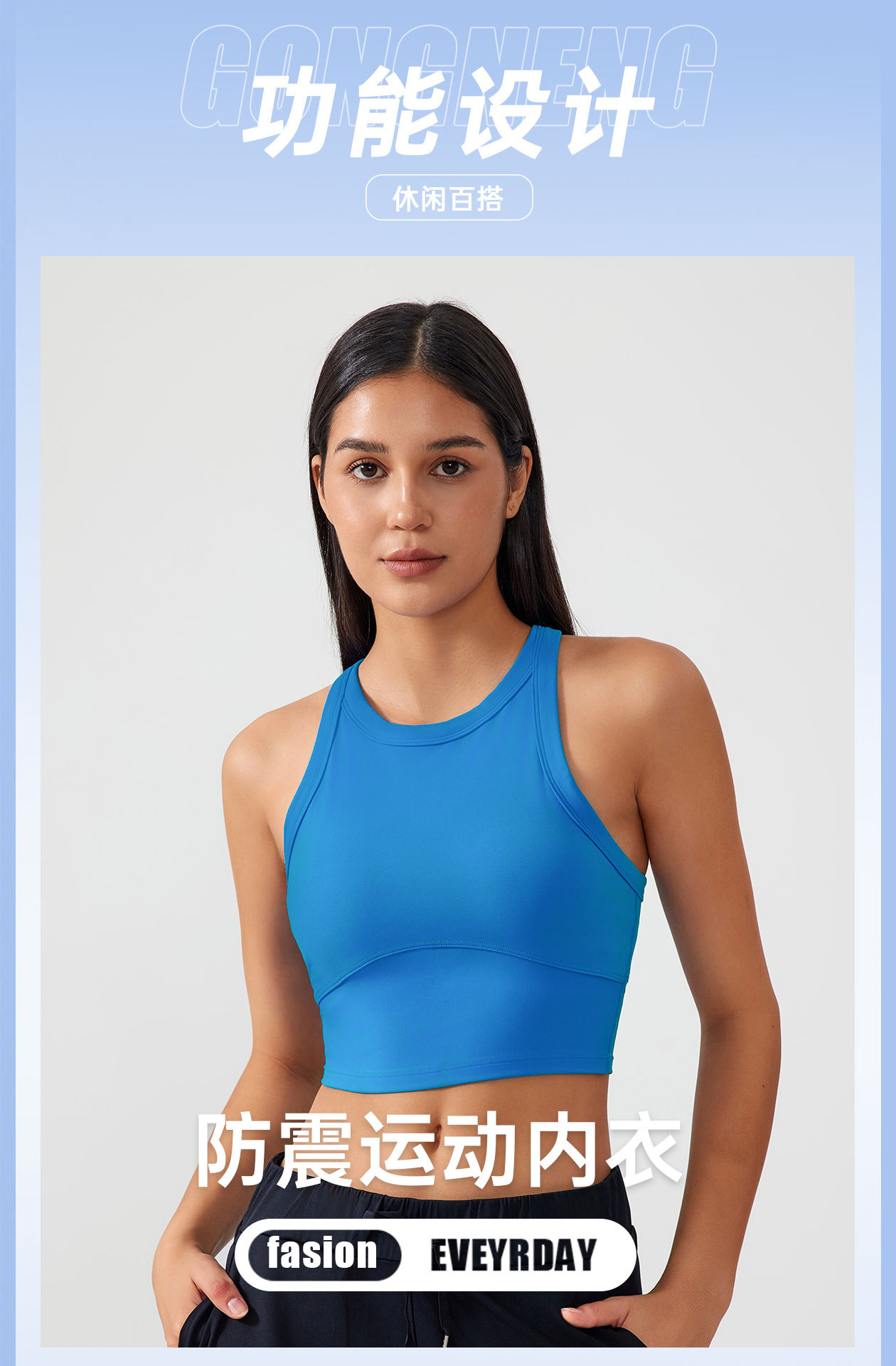 여성용 고탄력 요가탑, 가슴 패드 내장, 흔들림 방지 스포츠 브라, 하이넥, 옆가슴 보정 탑, ET001스토어 가기