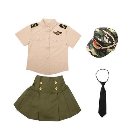 • 반팔 셔츠 + 녹색 치마 + 넥타이 + 모자