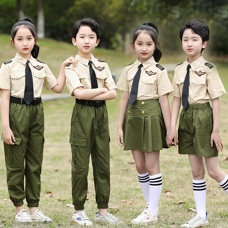 초등학생을 세트 어린이 군복 유치원 교복 소년 소녀 합창 의상 여름 캠프 군사 훈련