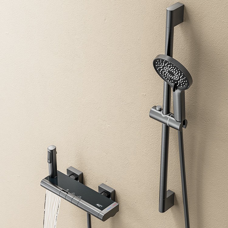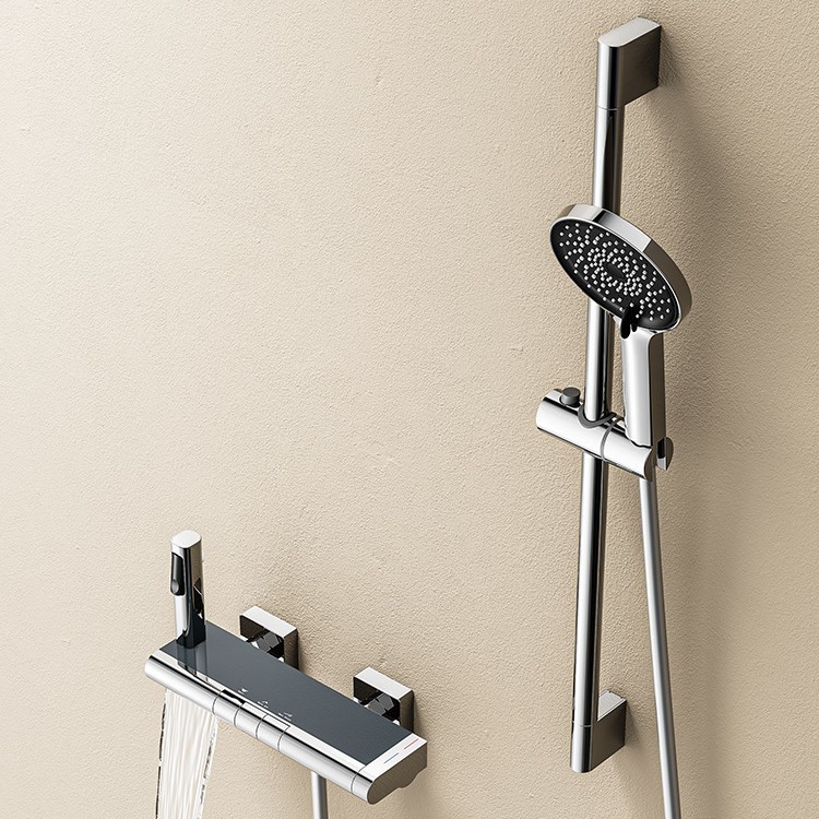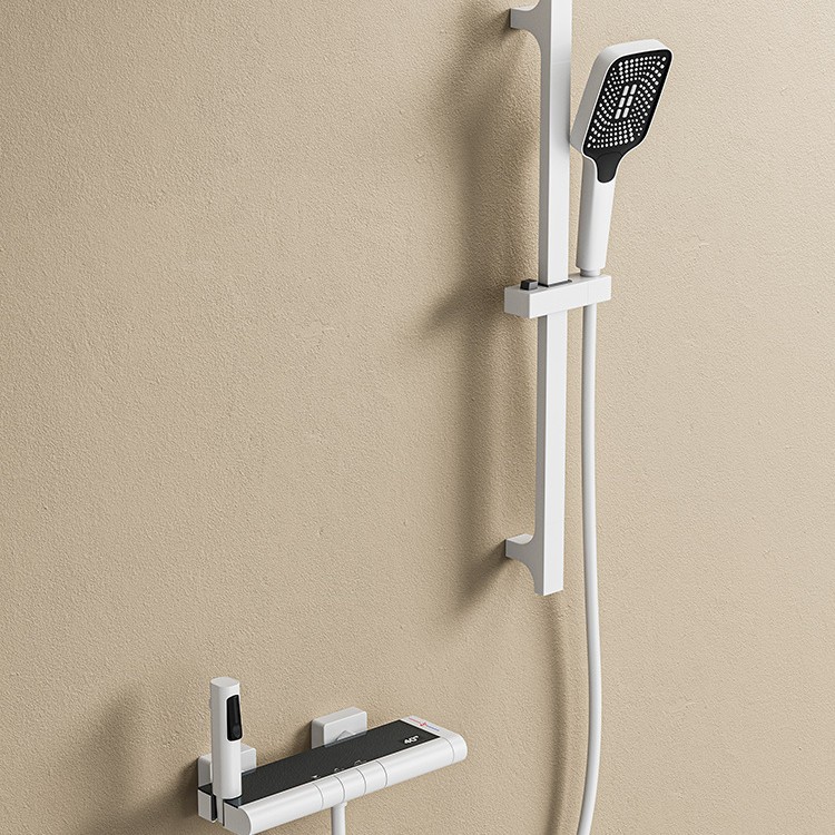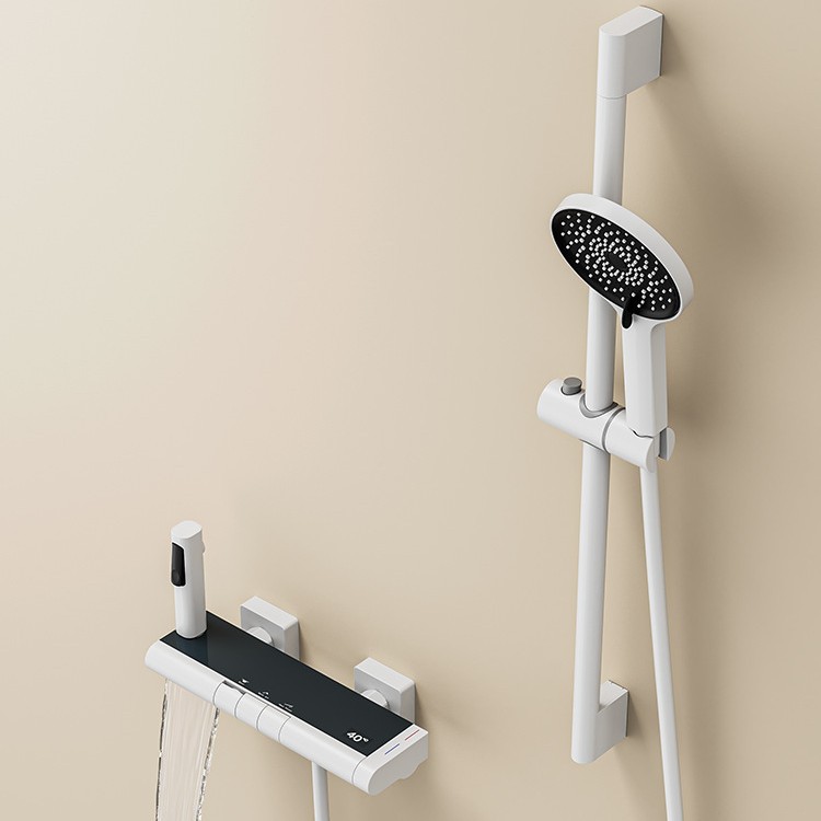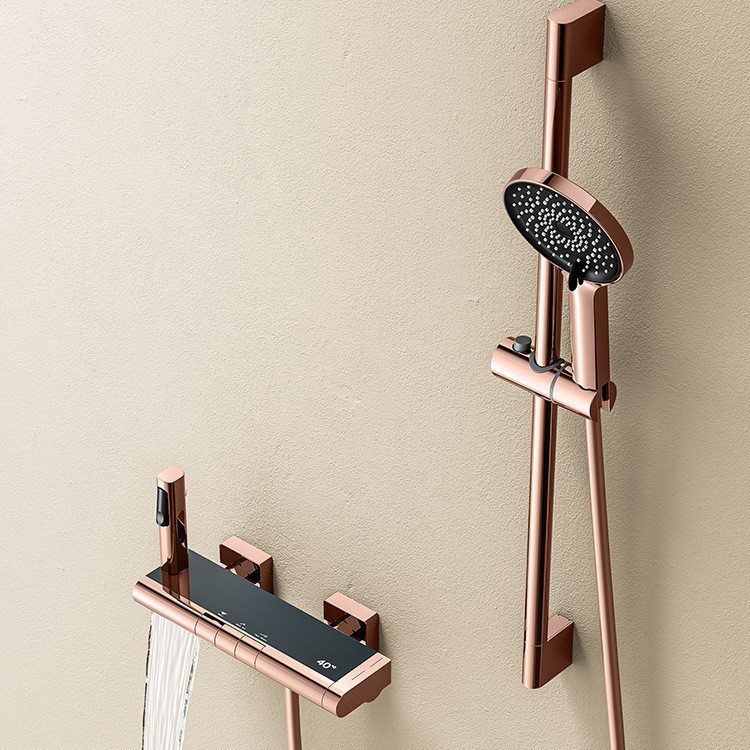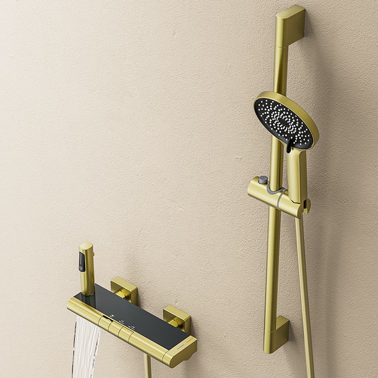 모든 구리 욕조 일정 온도 디지털 디스플레이 샤워 세트 욕실 벽걸이 온수 및 냉수 샤워 수도꼭지 버튼 간단한 샤워