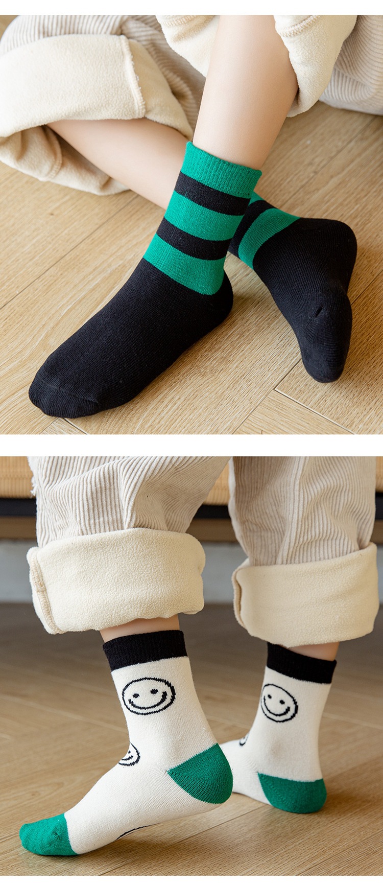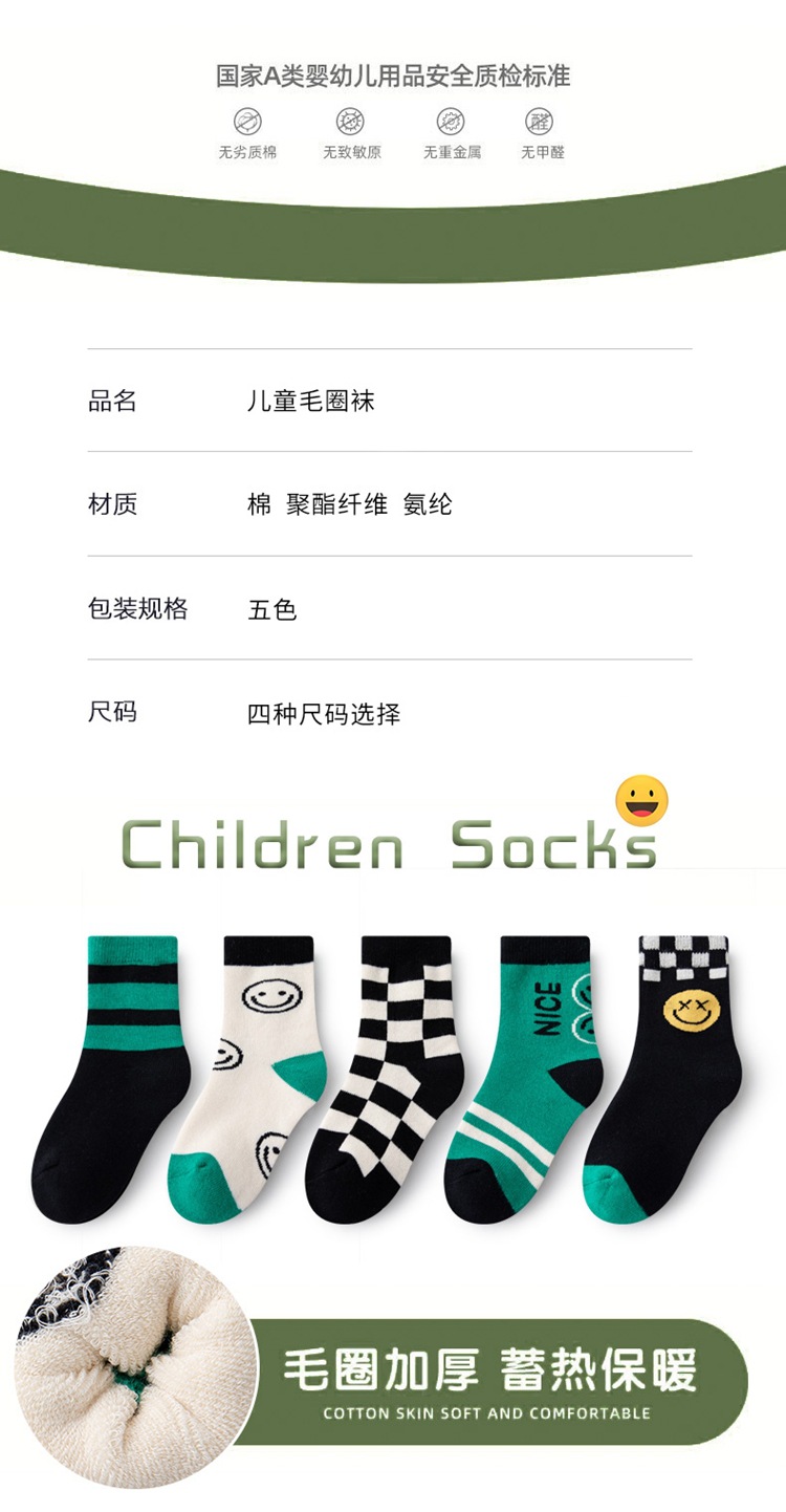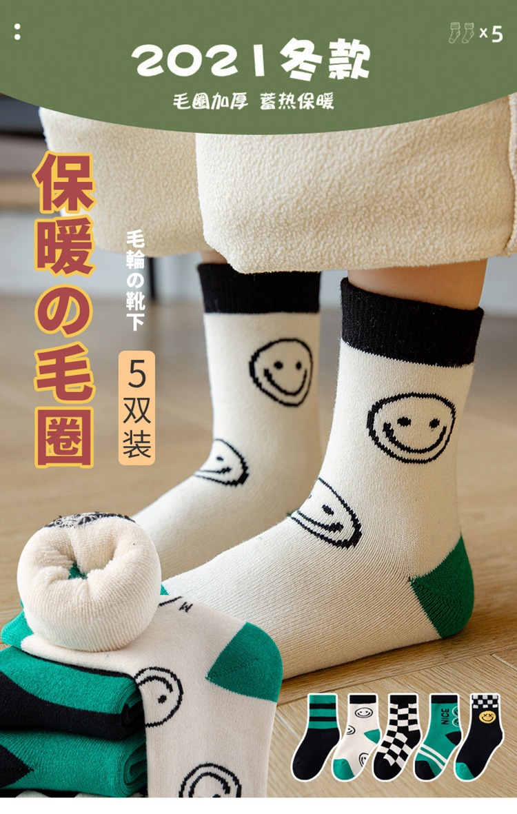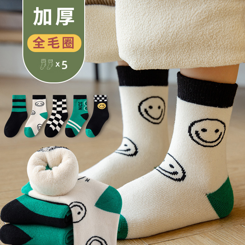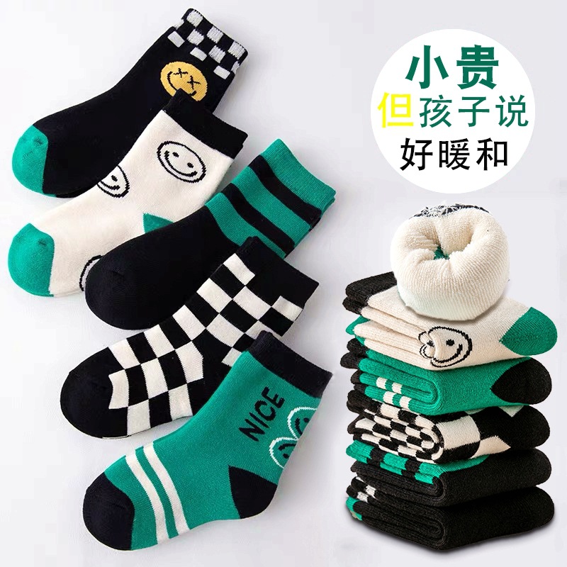 어린이 테리 양말 면 양말 두꺼운 기모 따뜻한 도매 여성 대학생 소년 양말 가을과 겨울스토어 가기