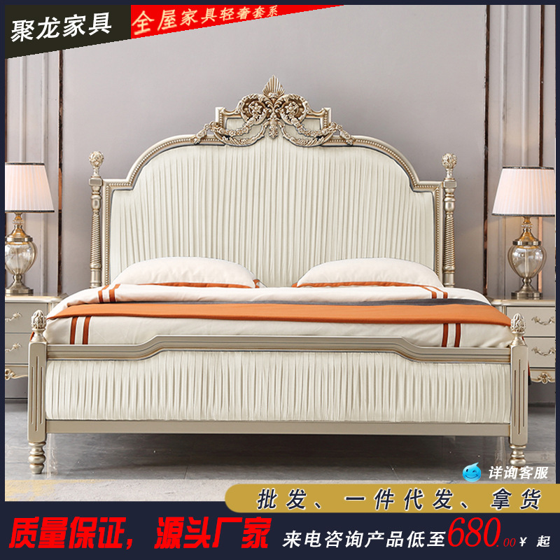 프랑스 스타일 가벼운 고급 단단한 나무 침대 미국 스타일 현대 간단한 마스터 침실 더블 침대 유럽 스타일 원단 공주 1.8 m 웨딩 침대