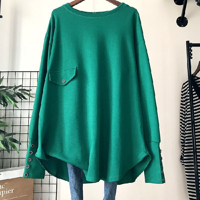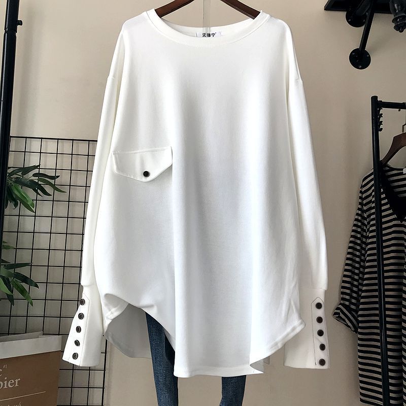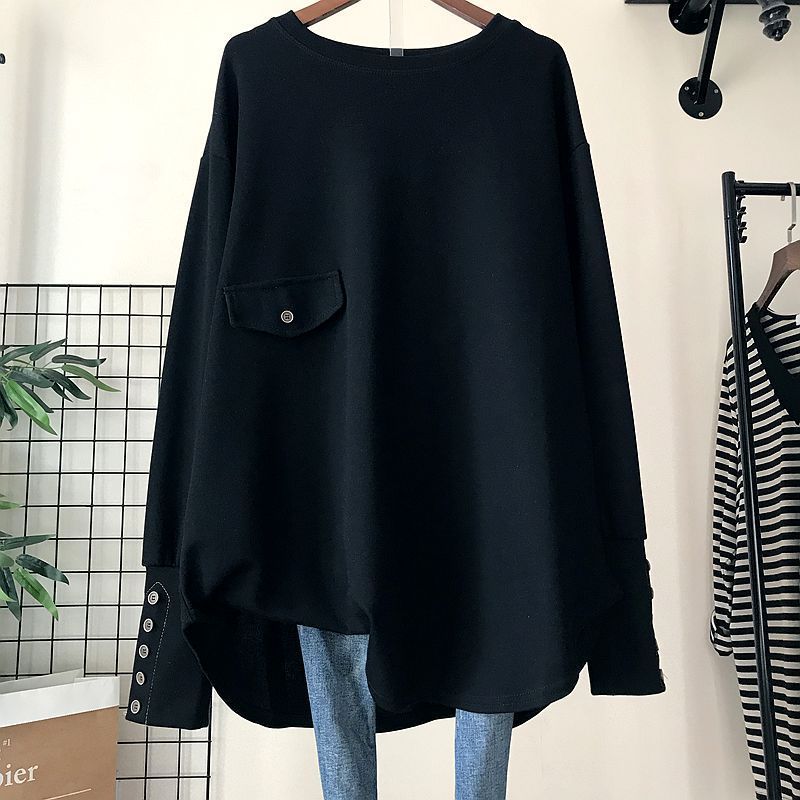 AL110 # 가을과 겨울 불규칙한 긴 탑 여성 서양식 버튼베이스 셔츠 대형 느슨한 긴 소매 티셔츠